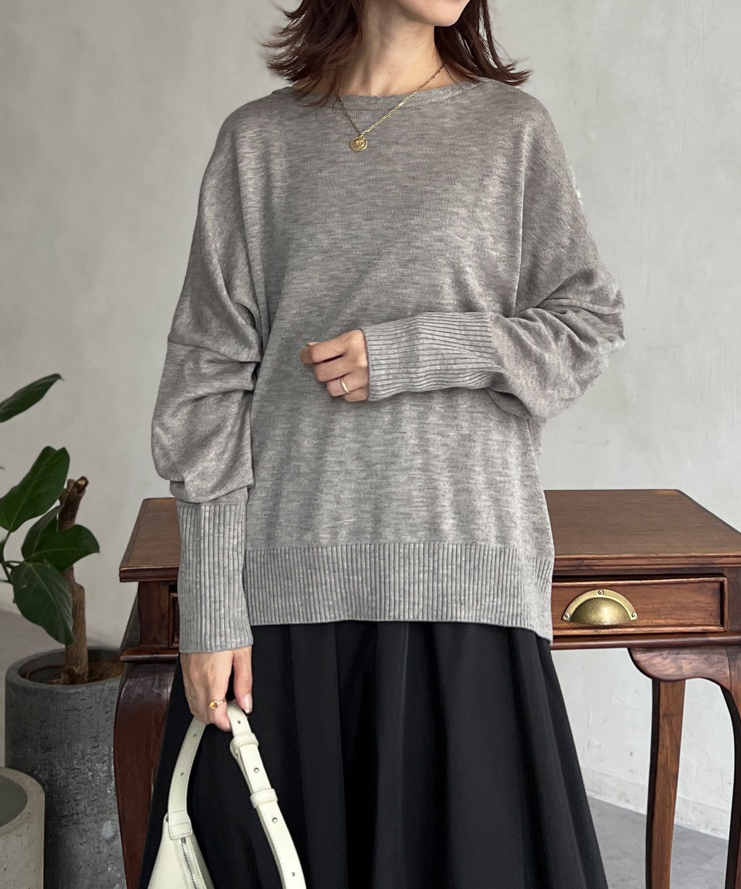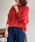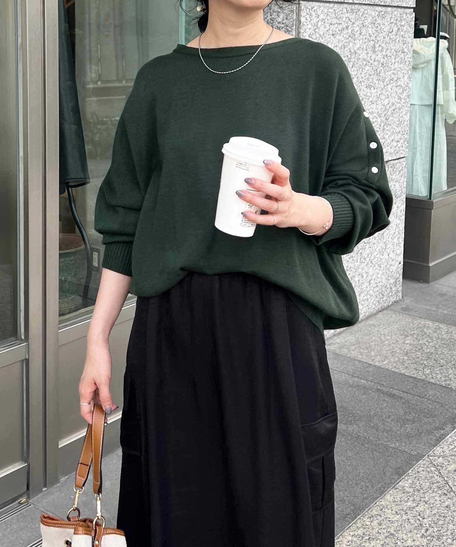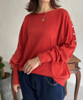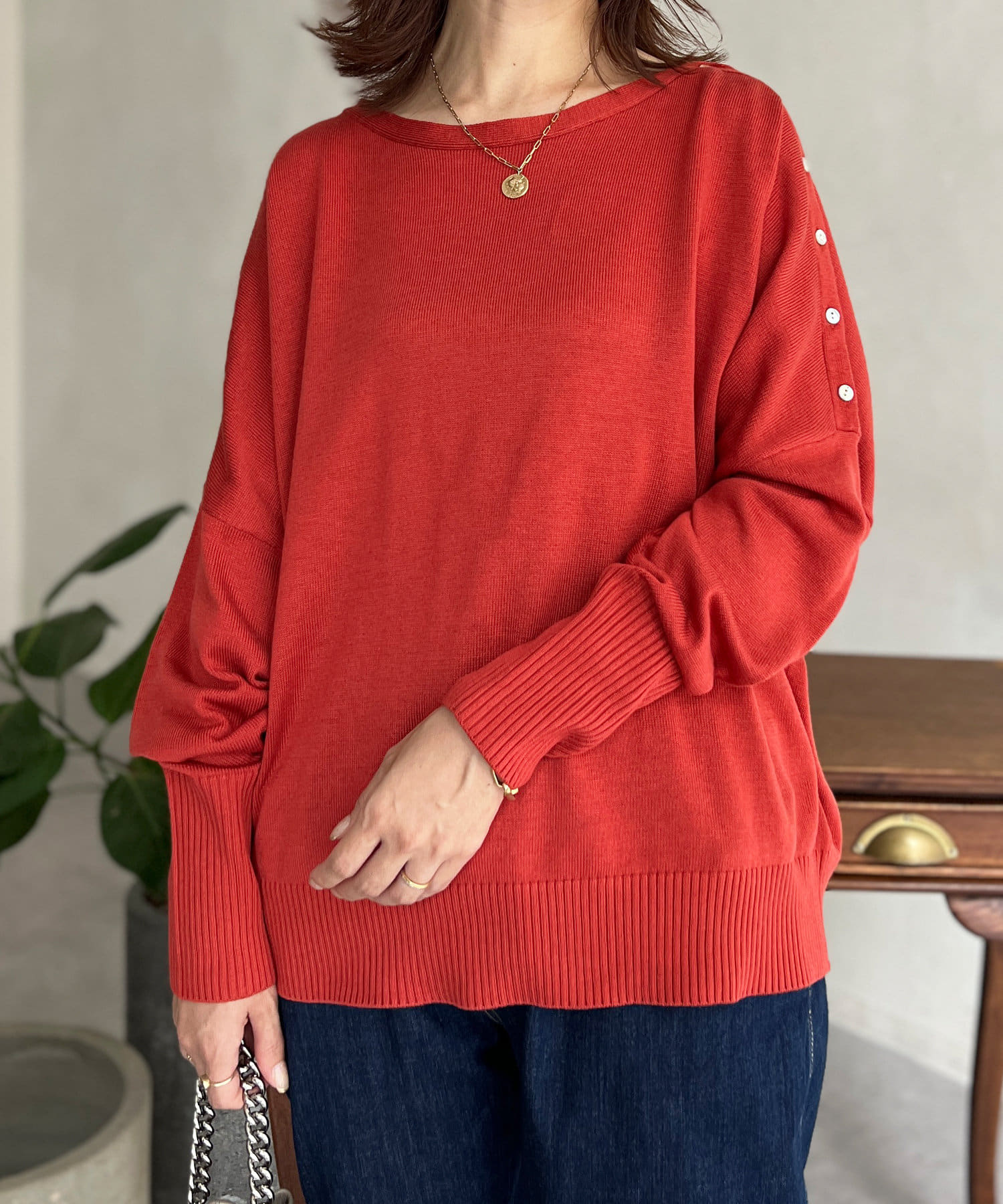 【ゆったりなのに細見え!】肩ボタンニットプルオーバー