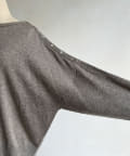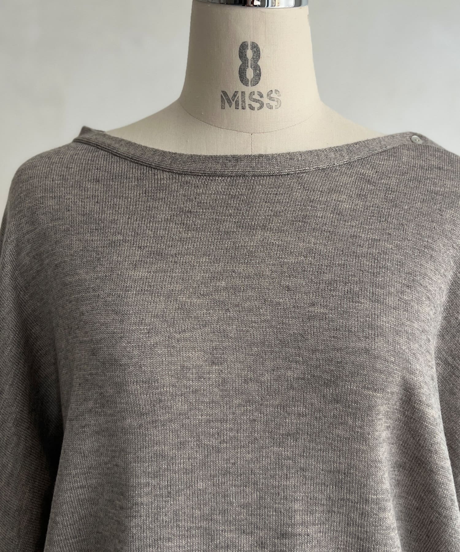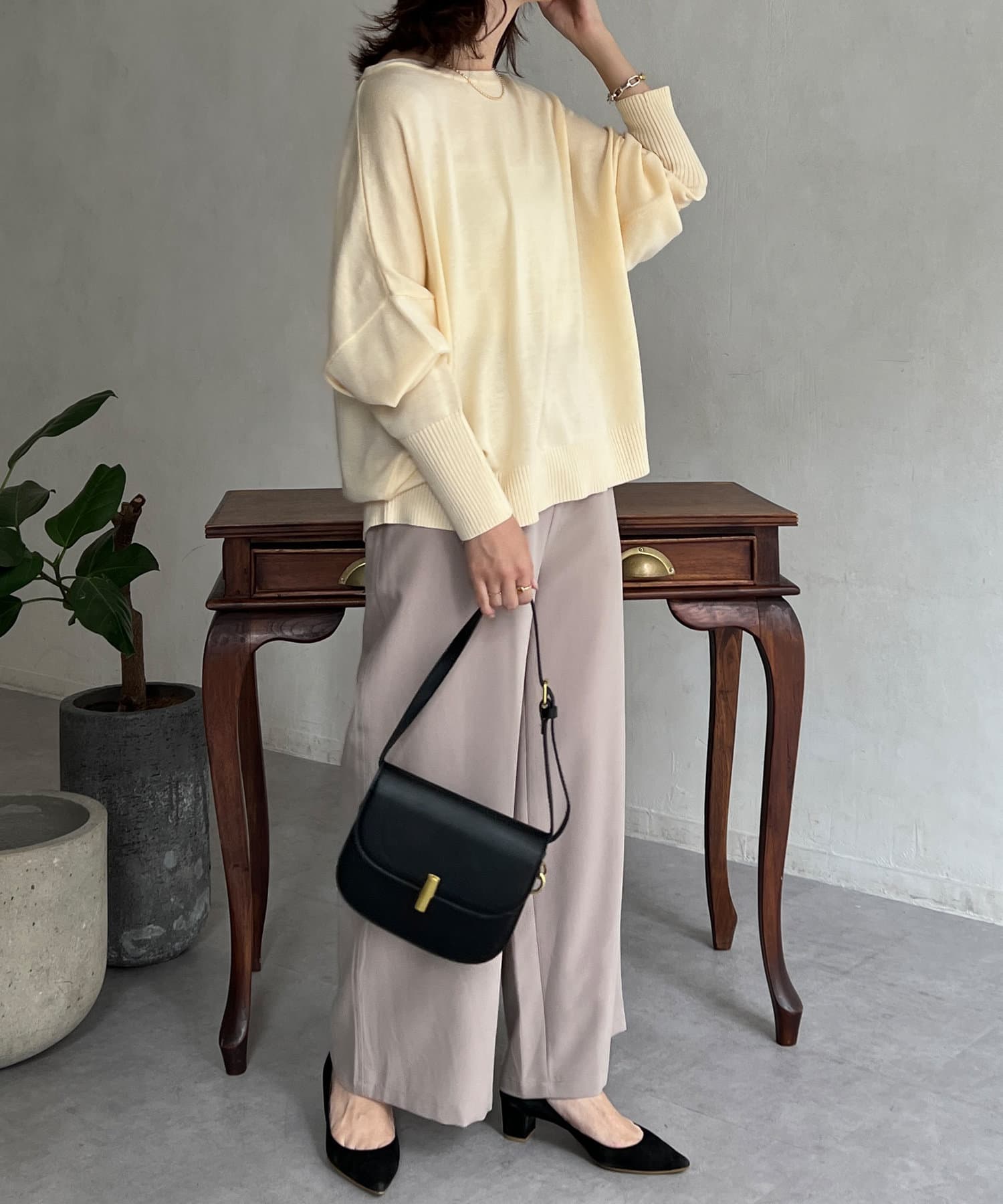 ゆったりとしたドルマンシルエットとやや長めの着丈がバランスよく着られるポイント。