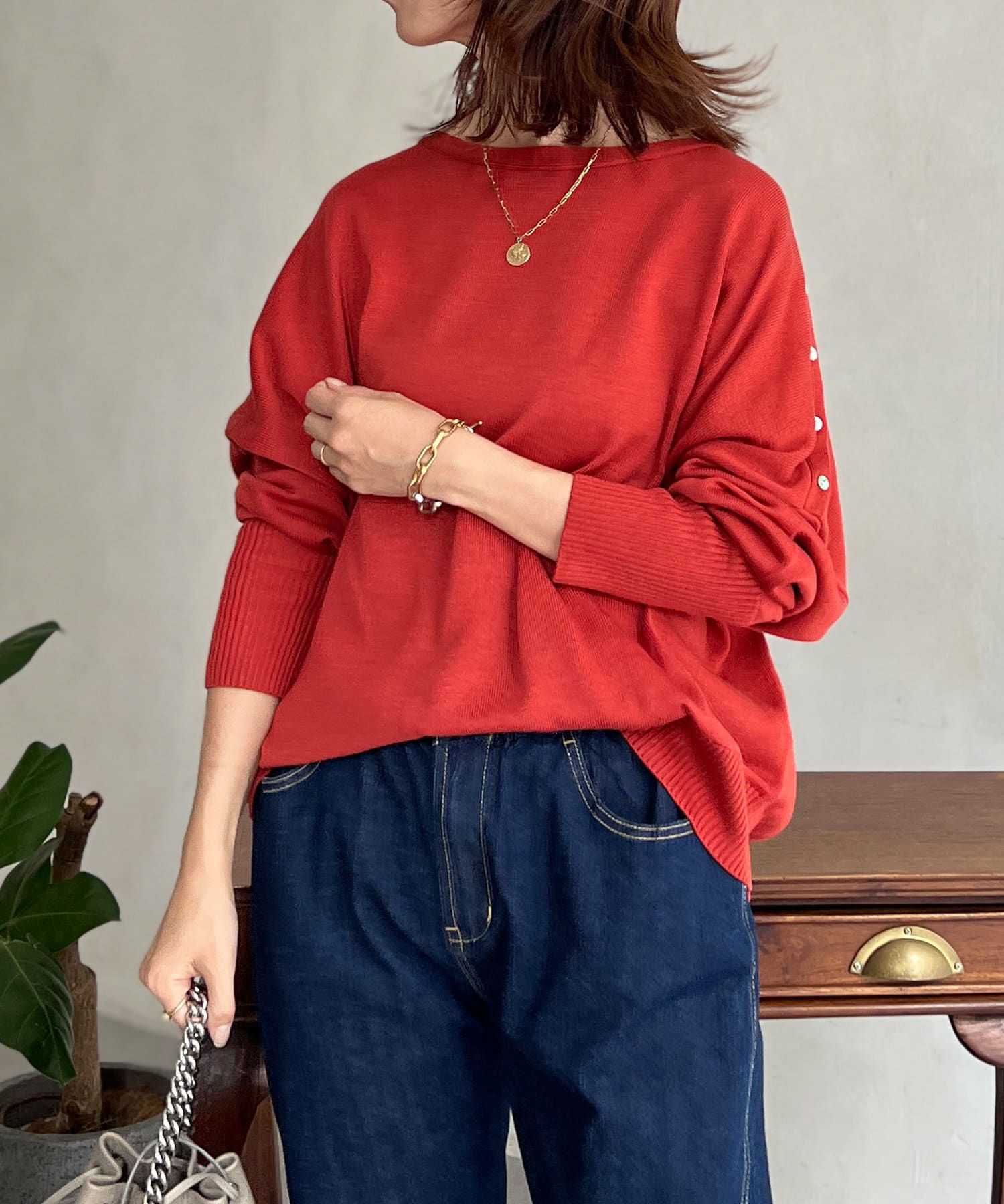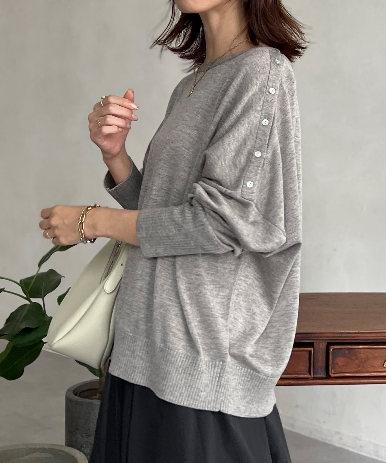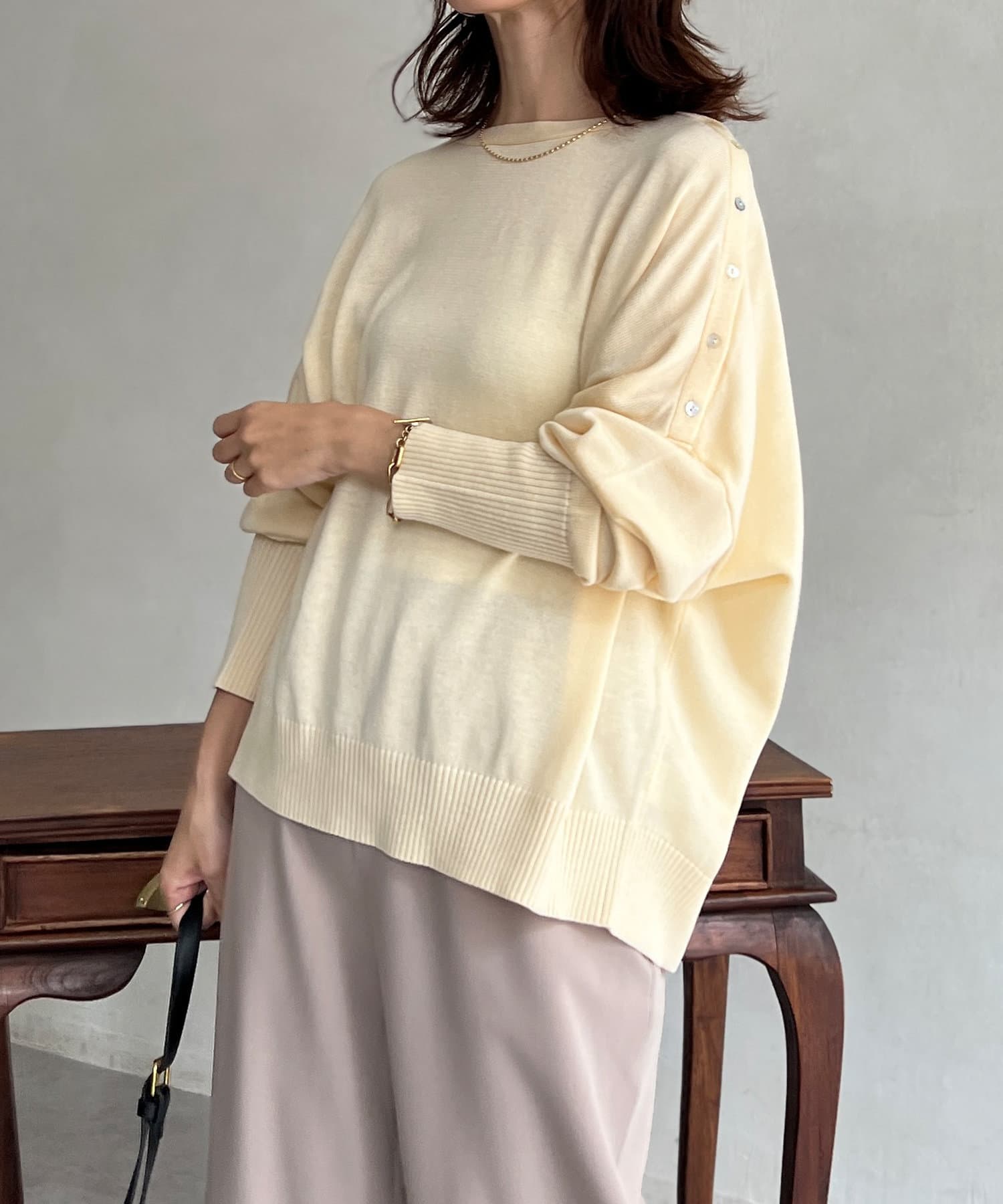 ゆったりシルエットで着心地柔らか デイリーに着たい肩ボタンニット