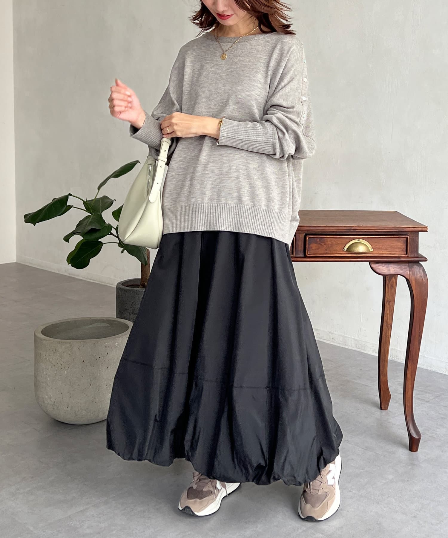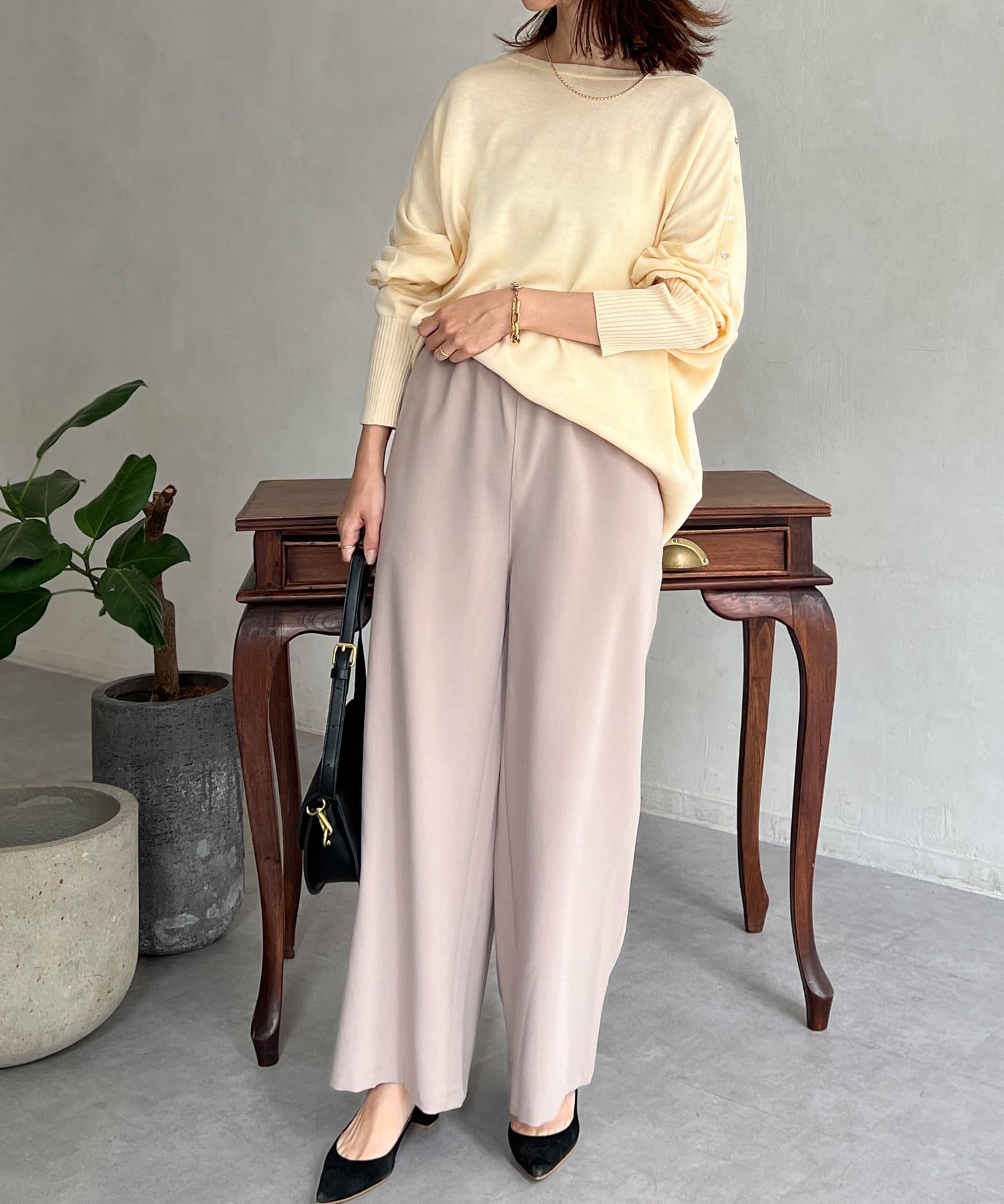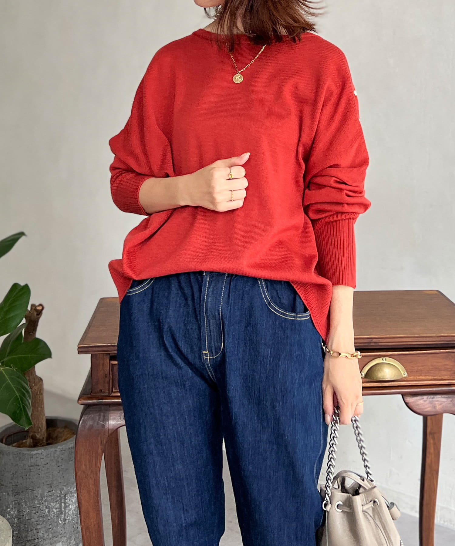 ゆったりシルエットで着心地柔らか デイリーに着たい肩ボタンニット