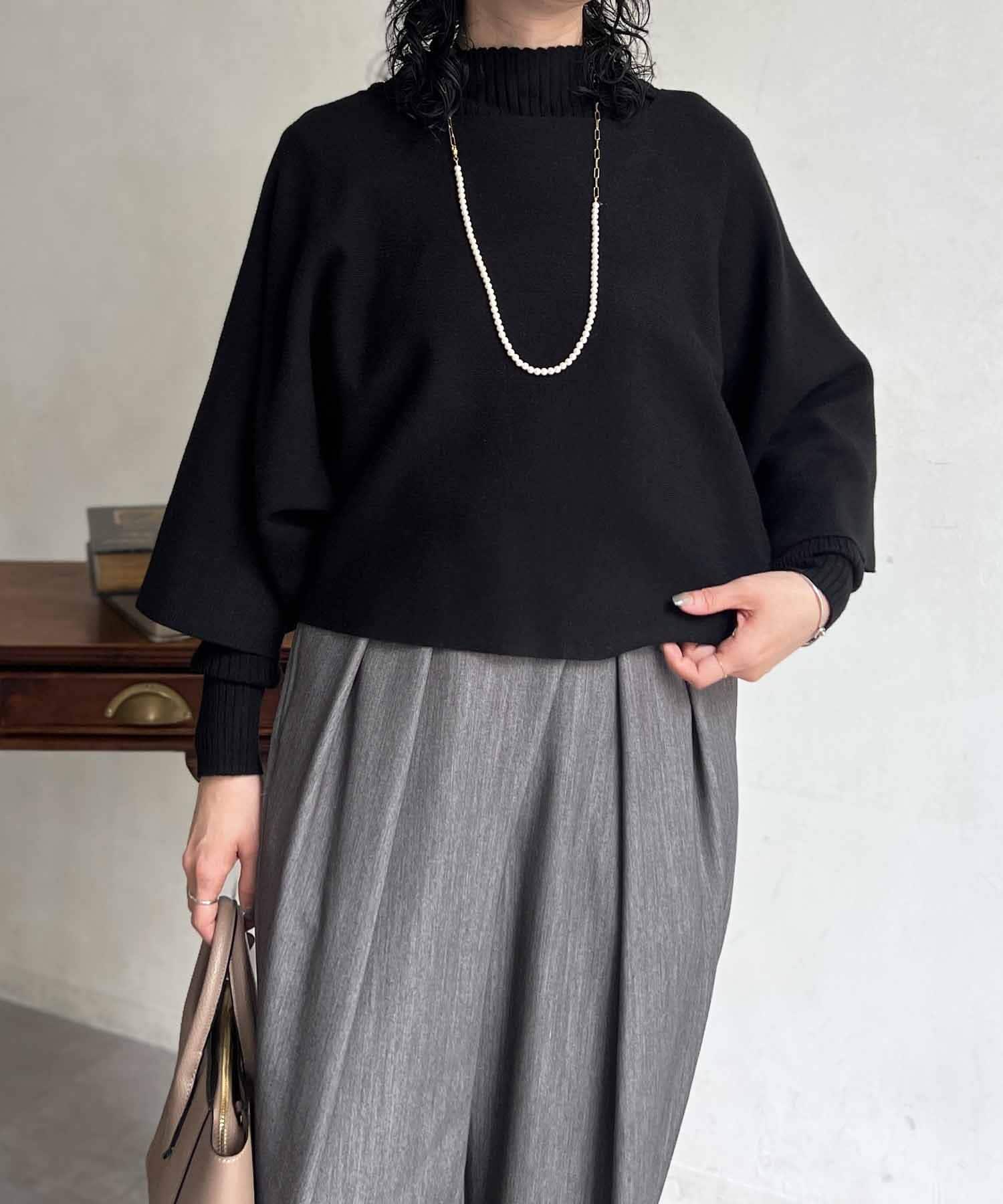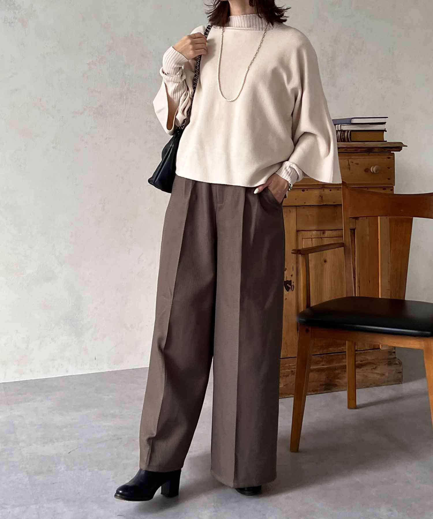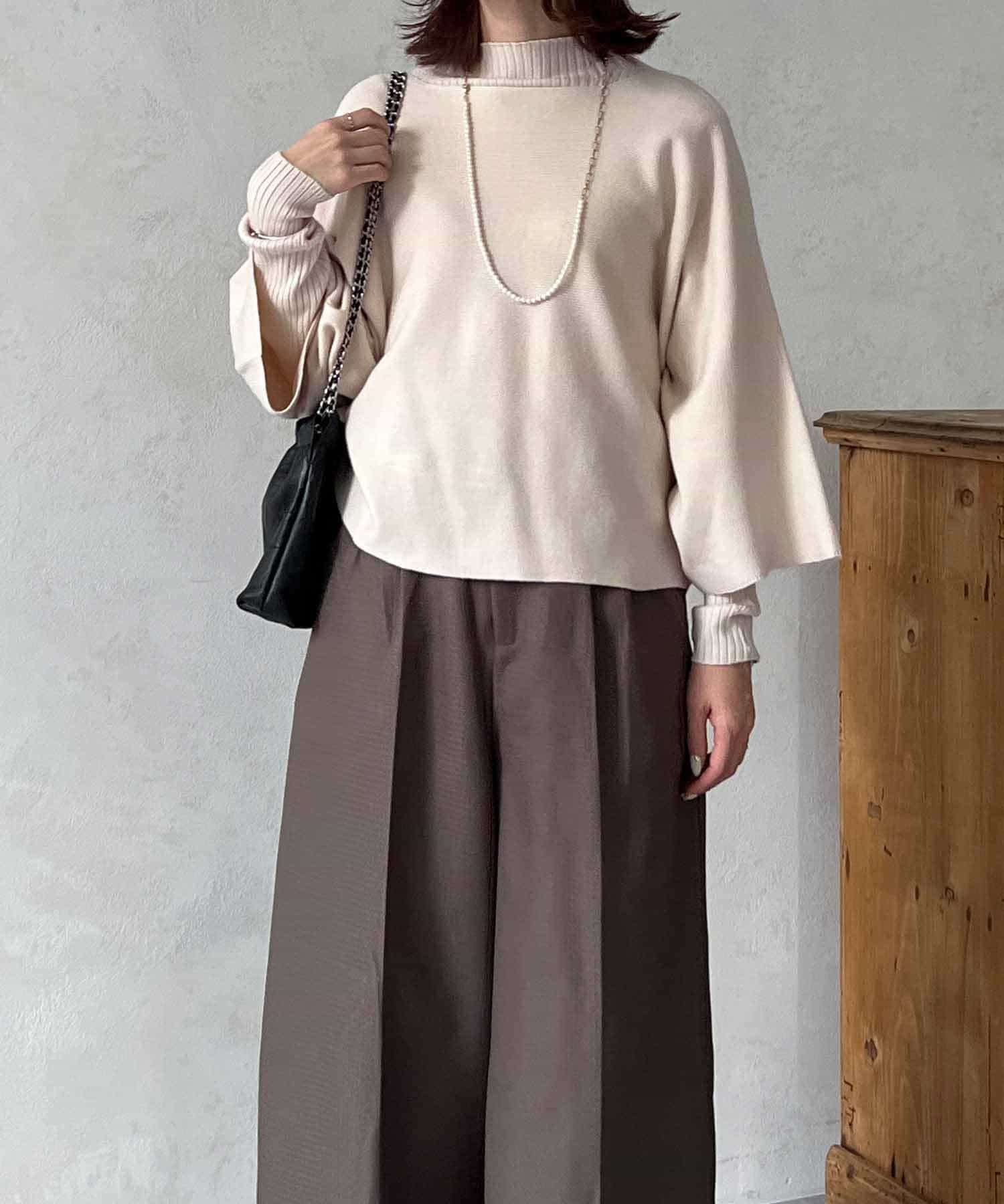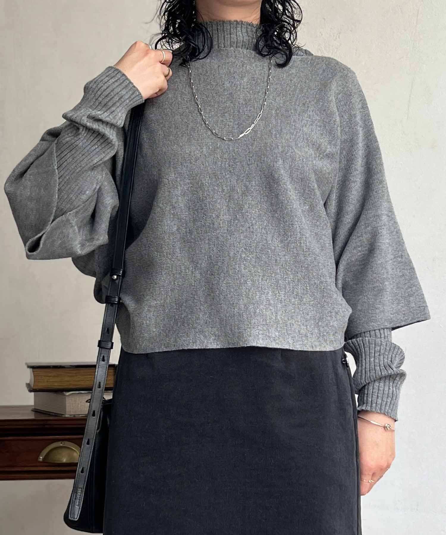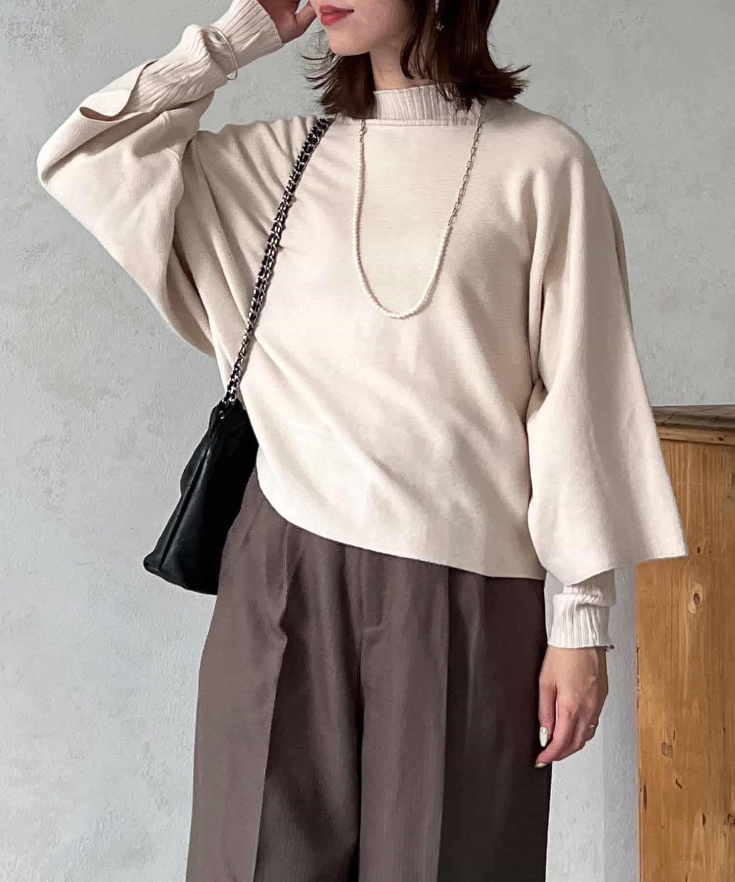 ドルマンシルエットの短丈トップスとベーシックなリブニットで着回し力ばっちり◎