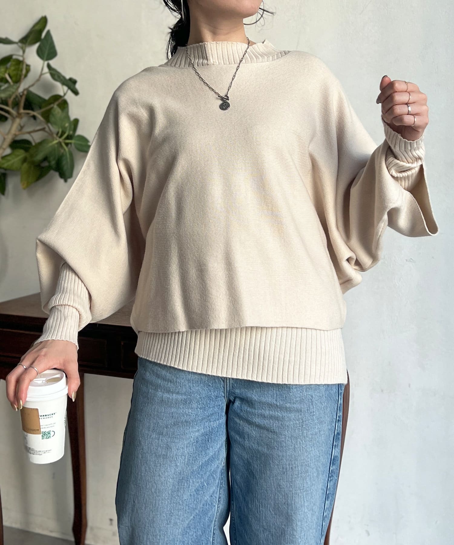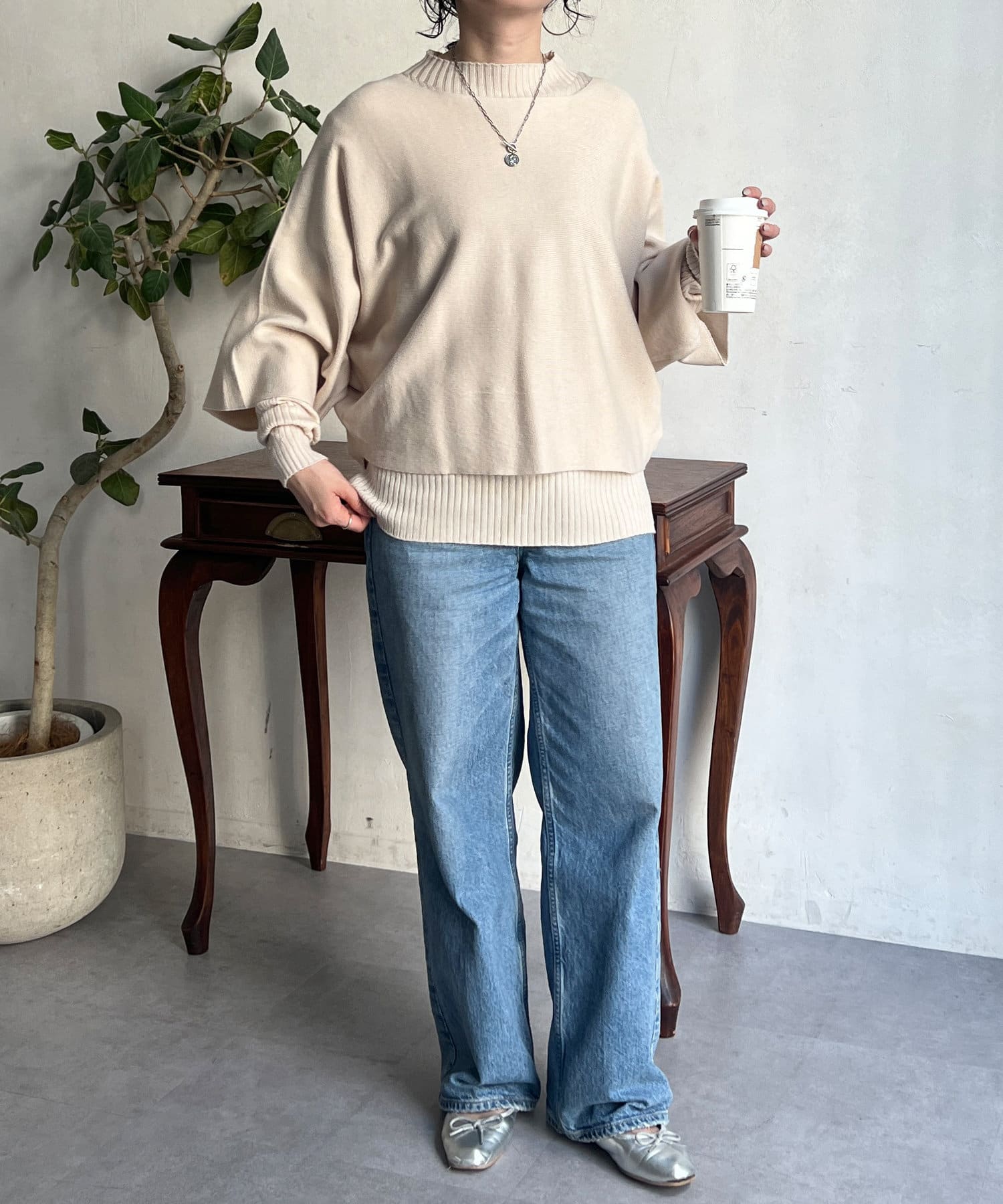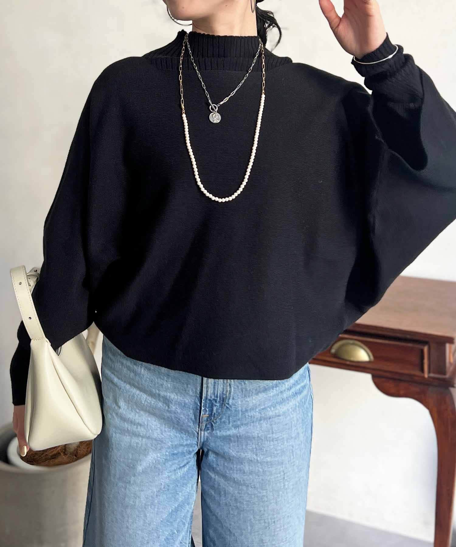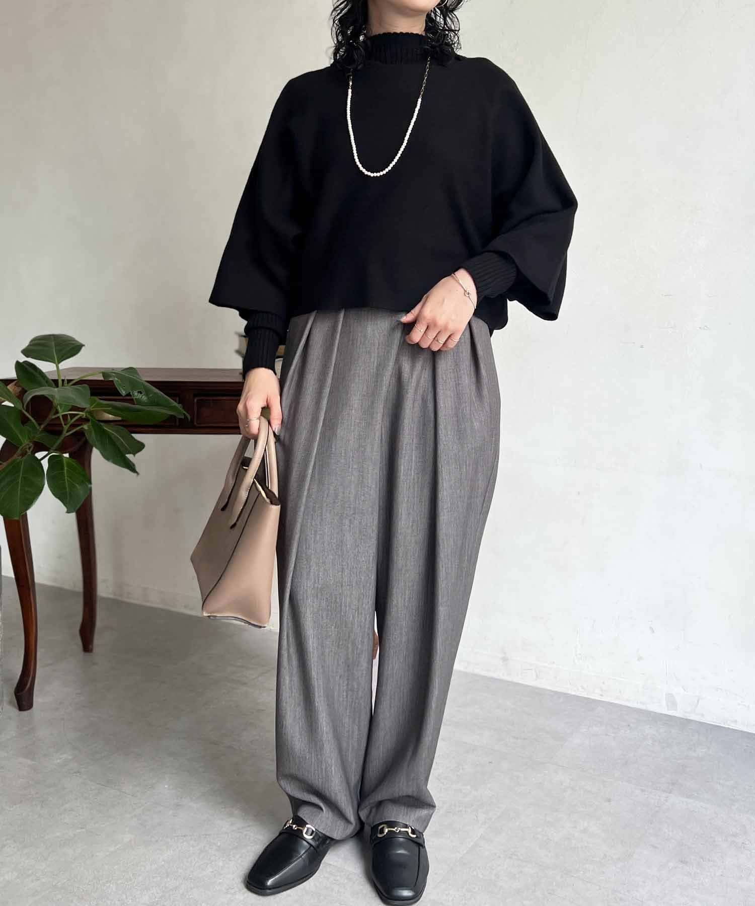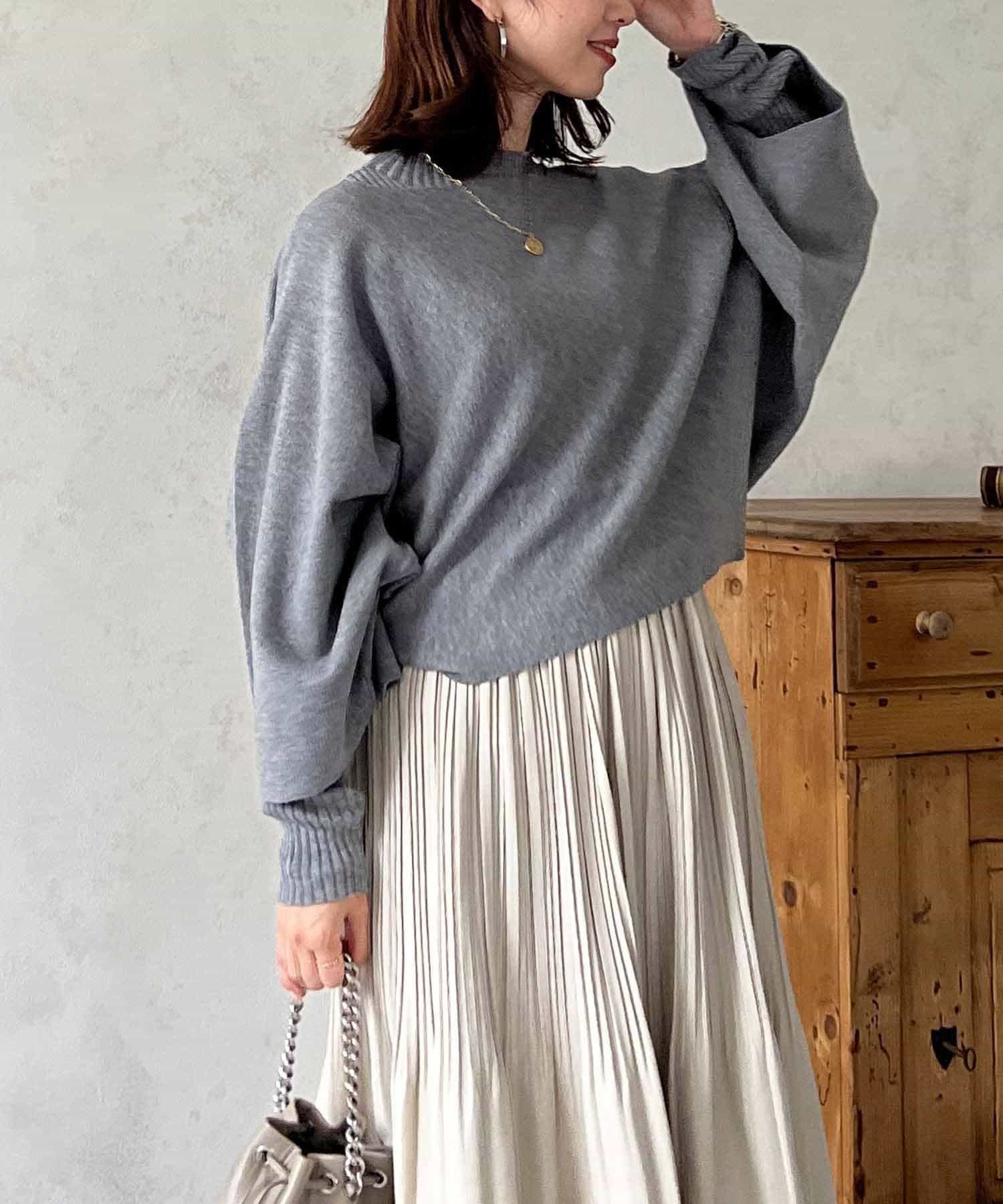 ドルマンシルエットの短丈トップスとベーシックなリブニットで着回し力ばっちり◎