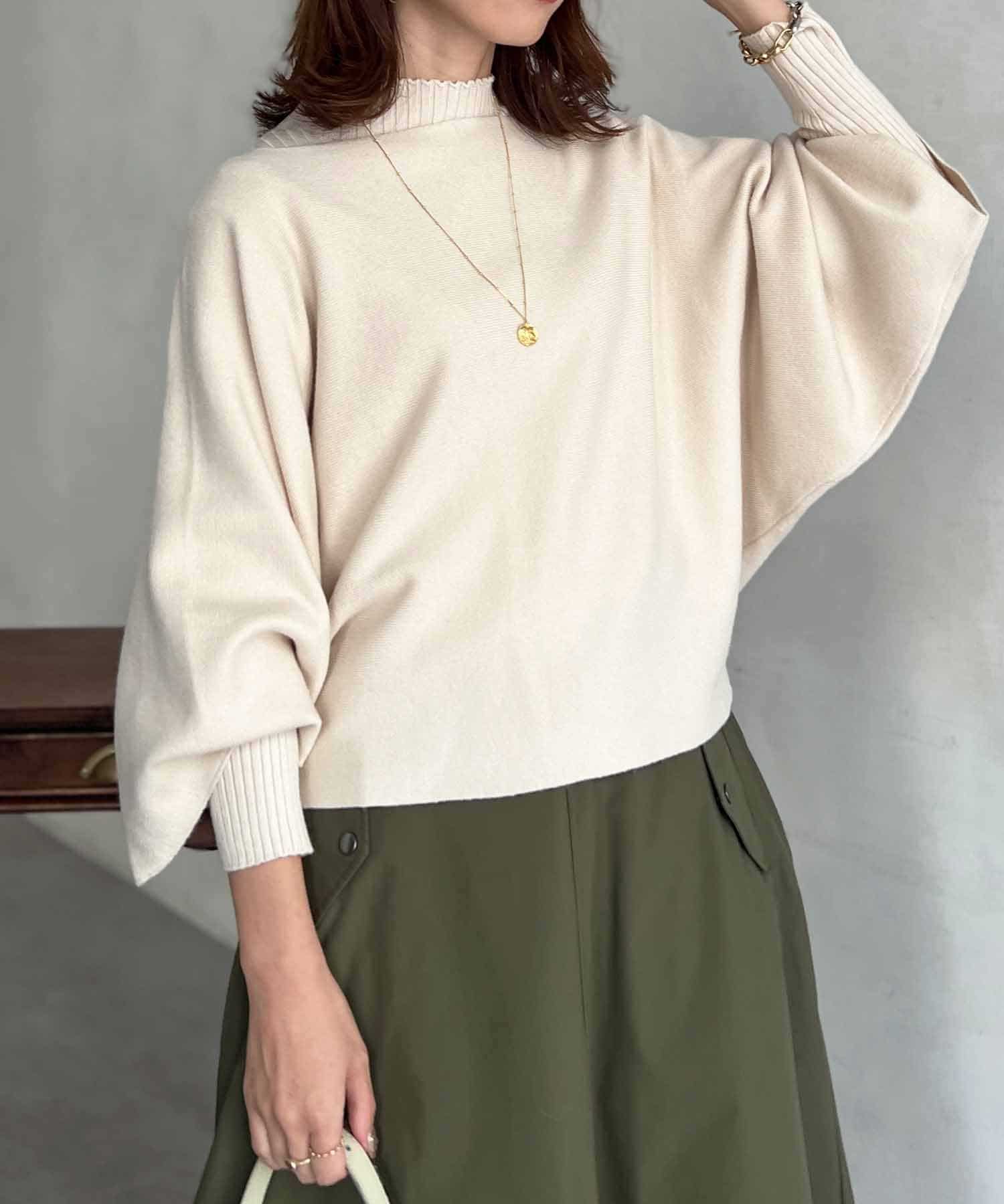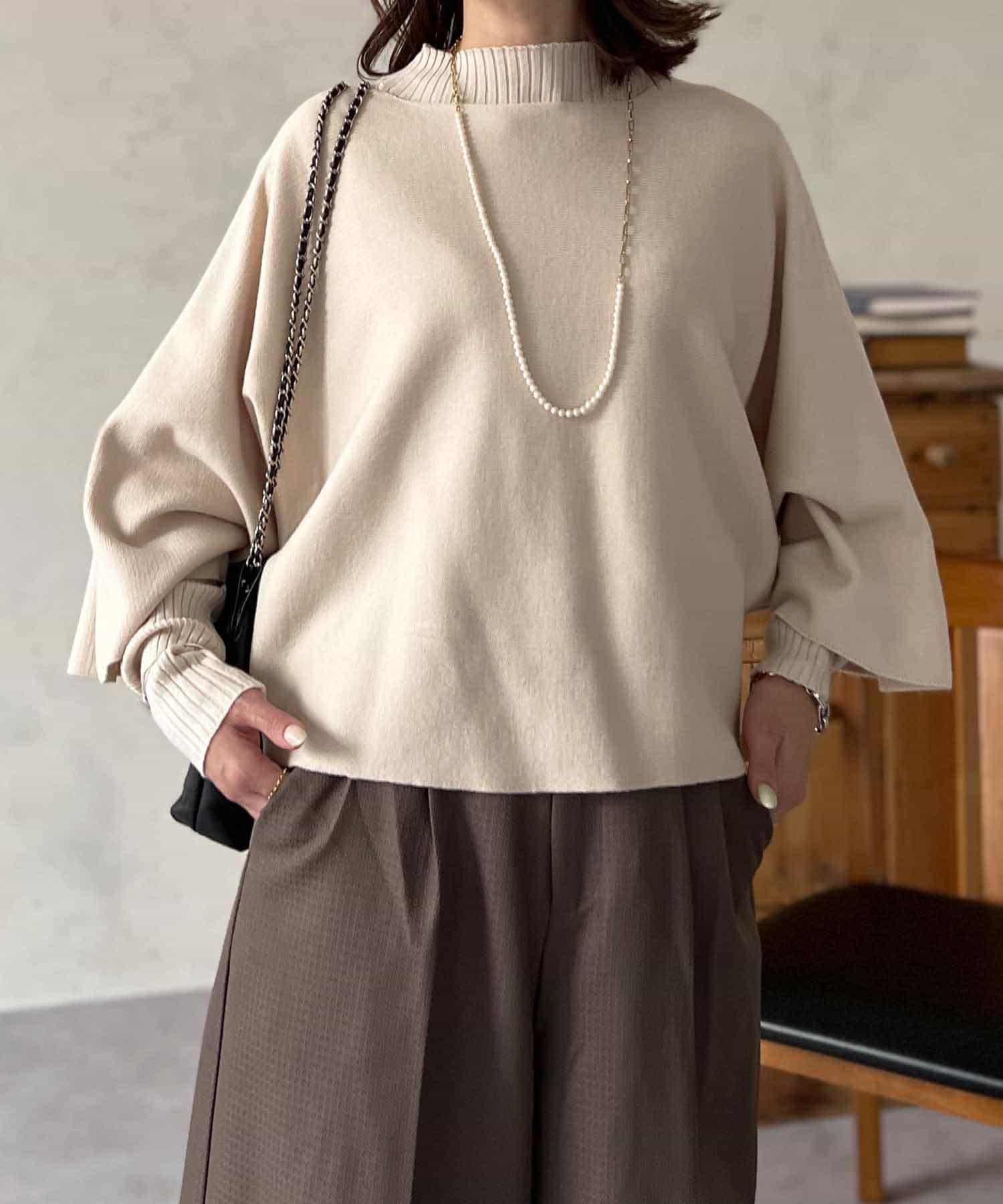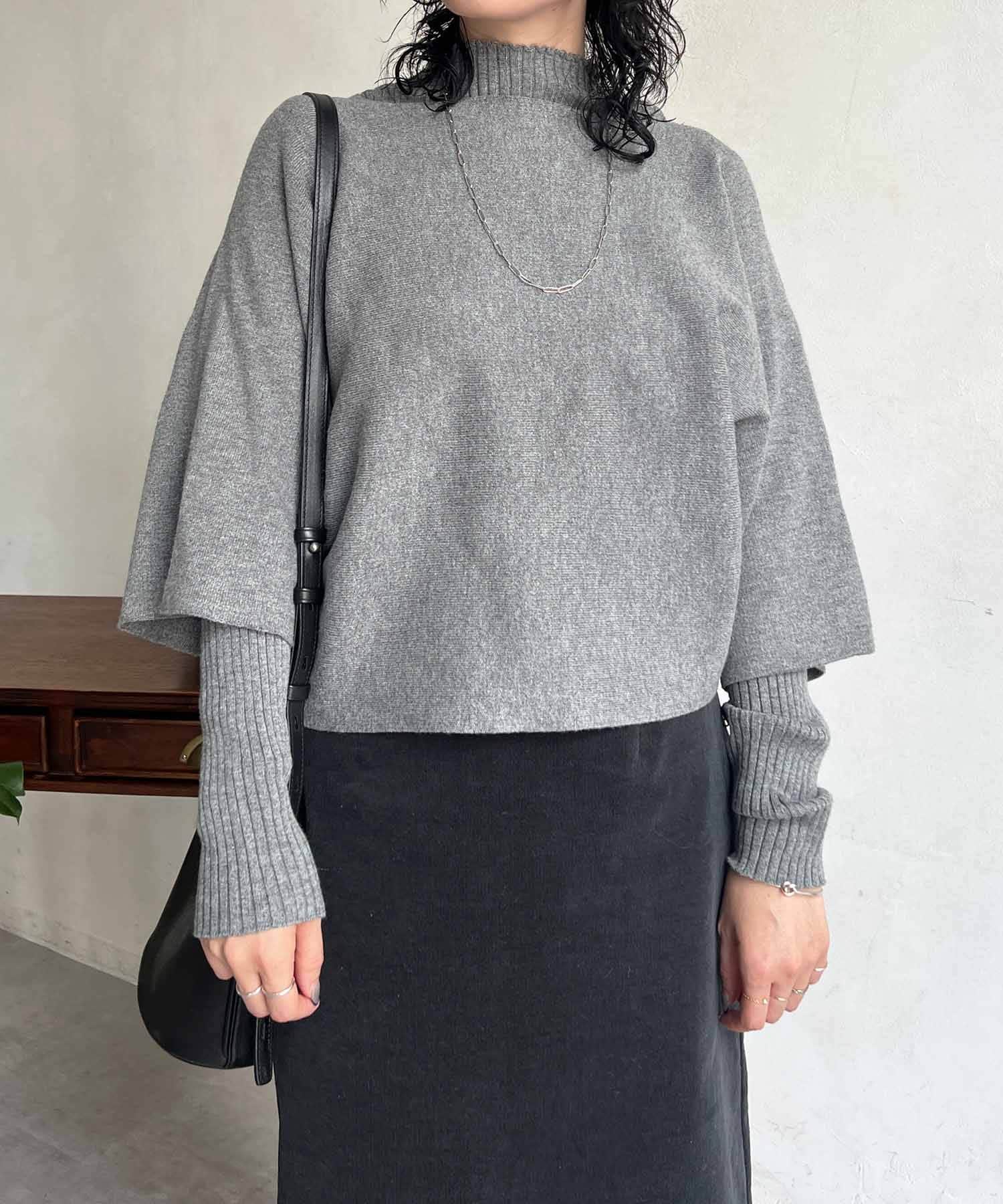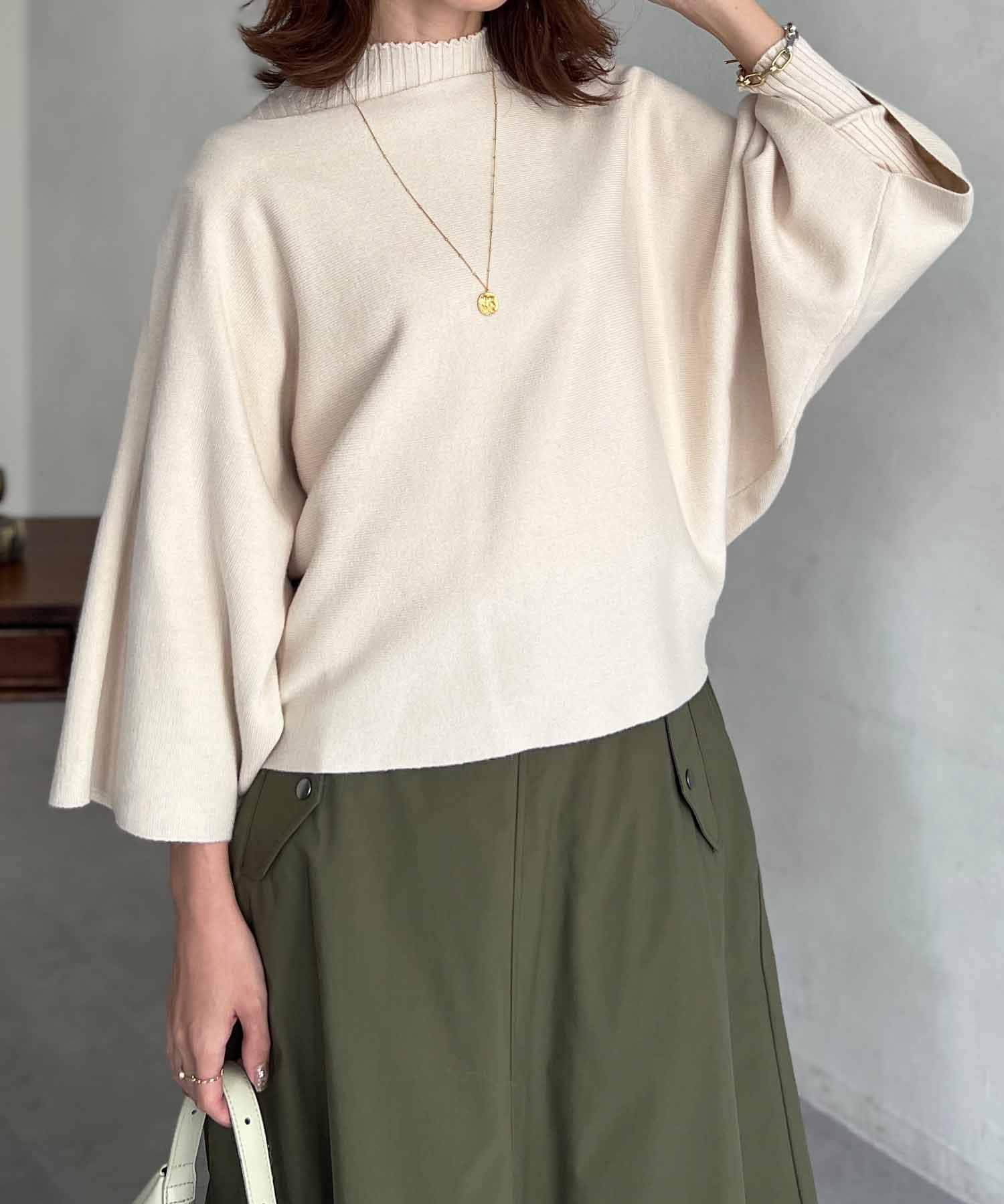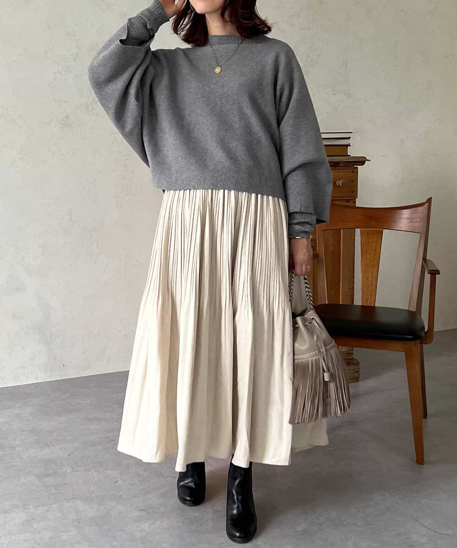 ドルマンシルエットの短丈トップスとベーシックなリブニットで着回し力ばっちり◎