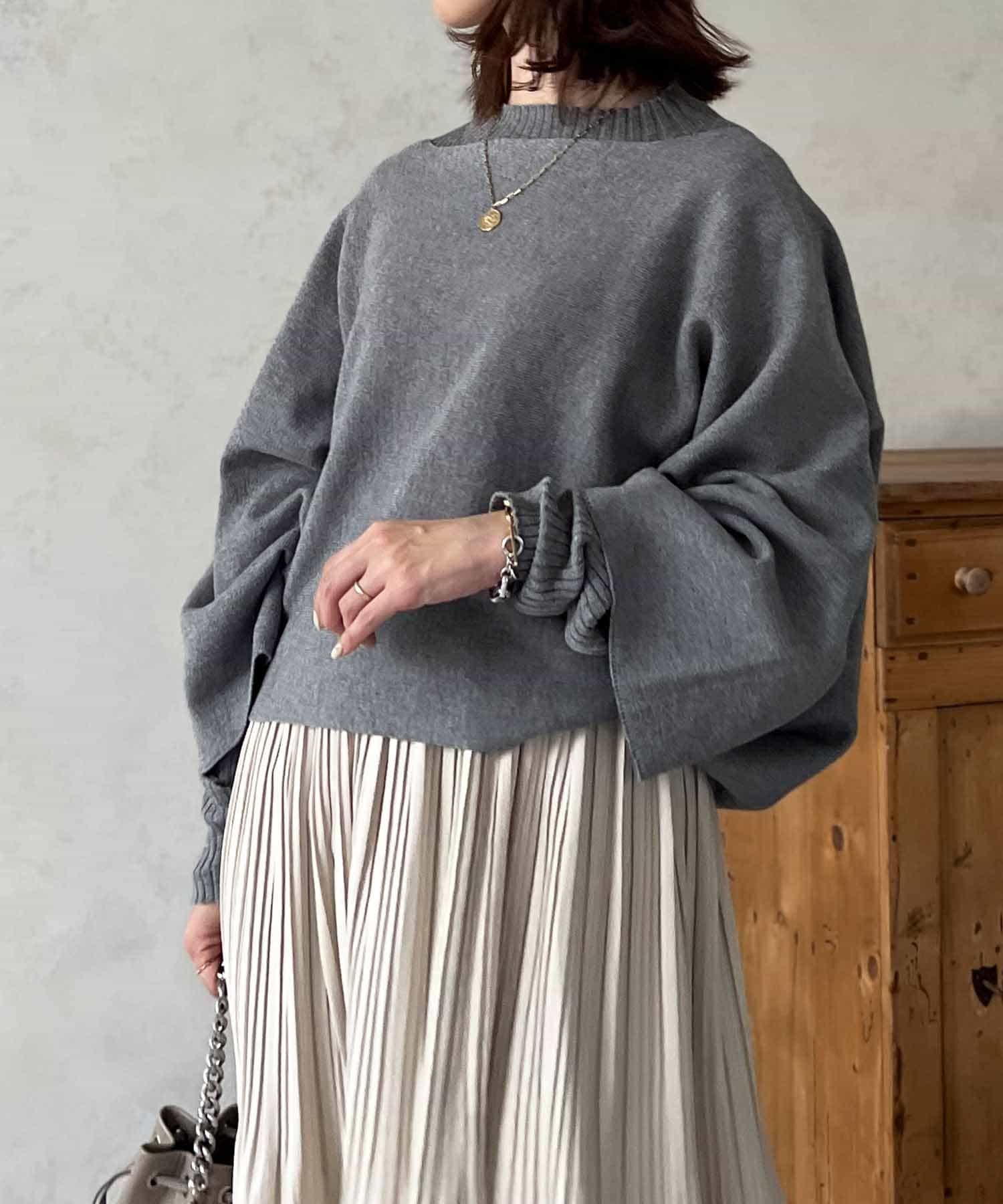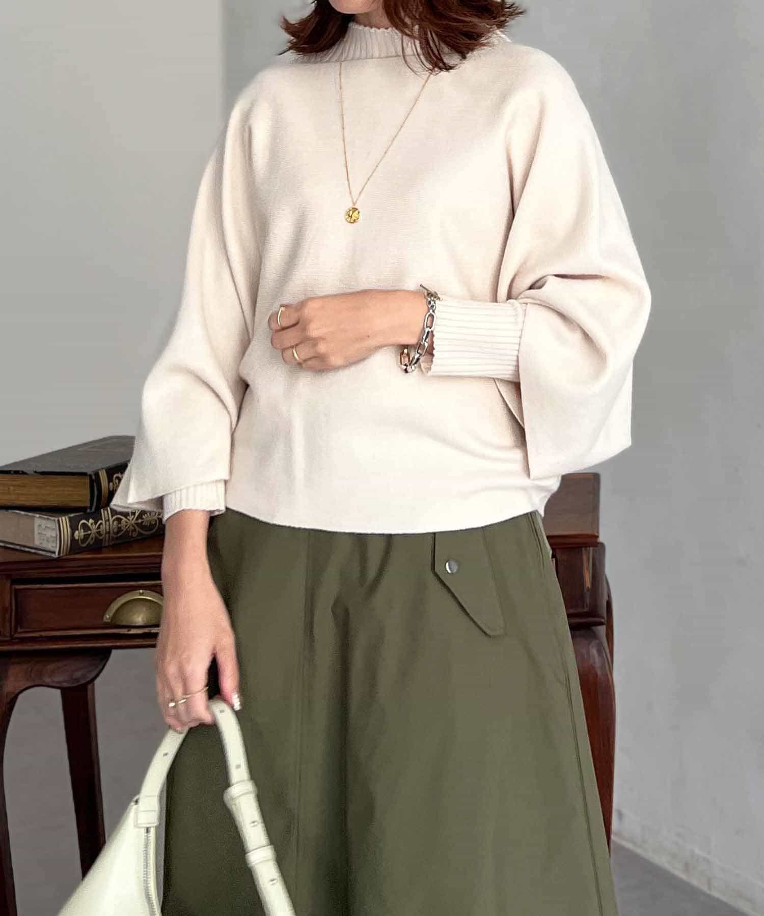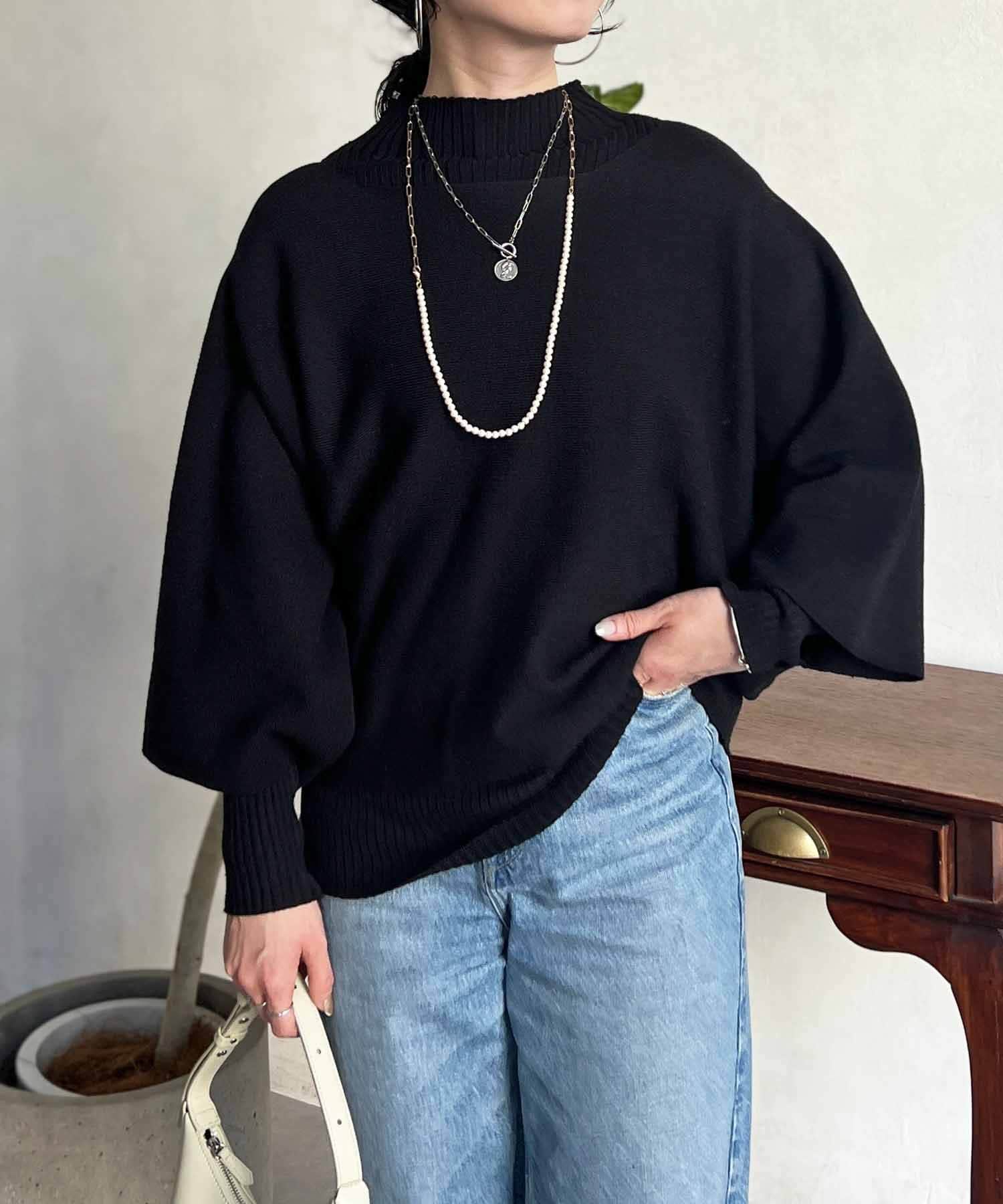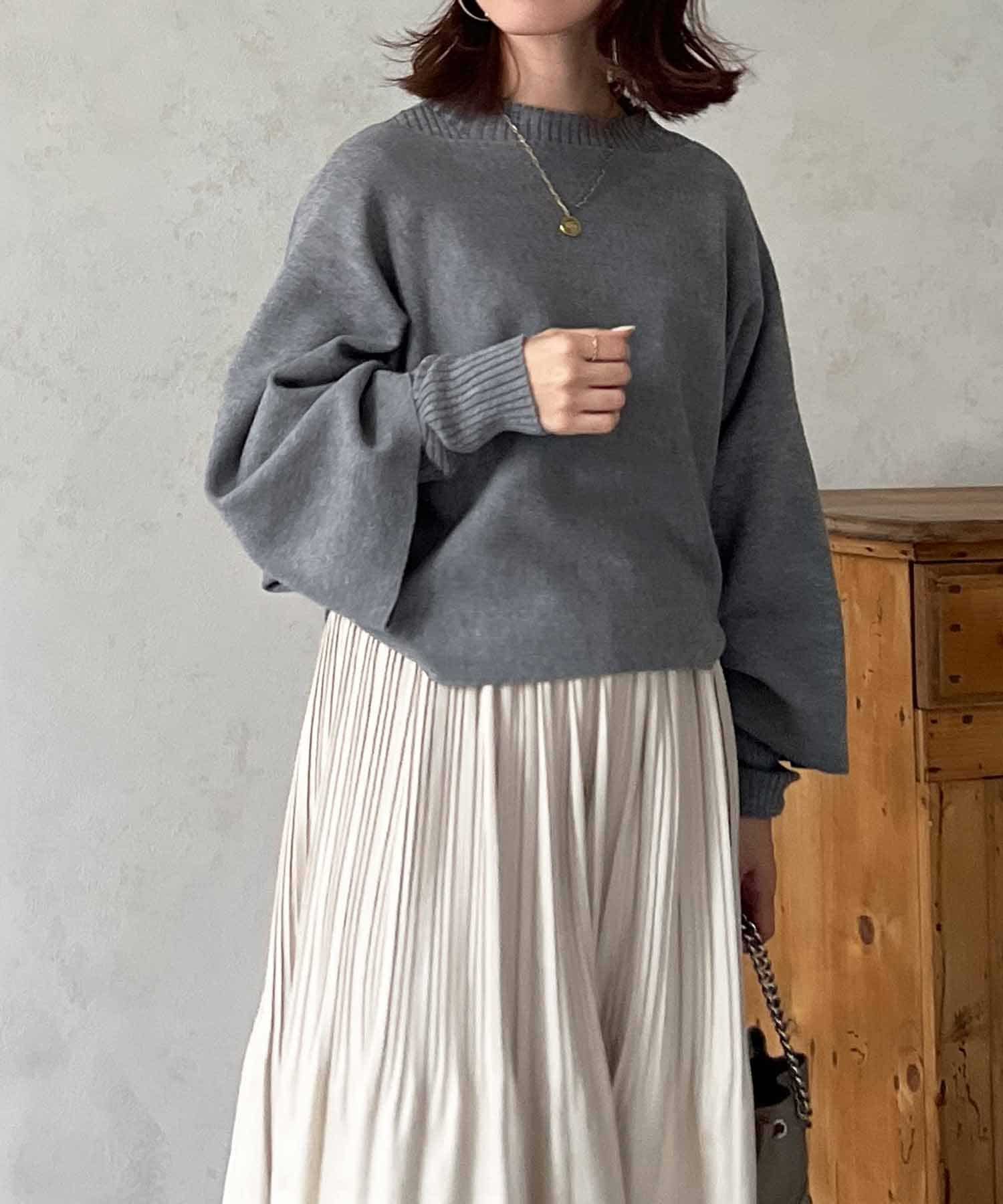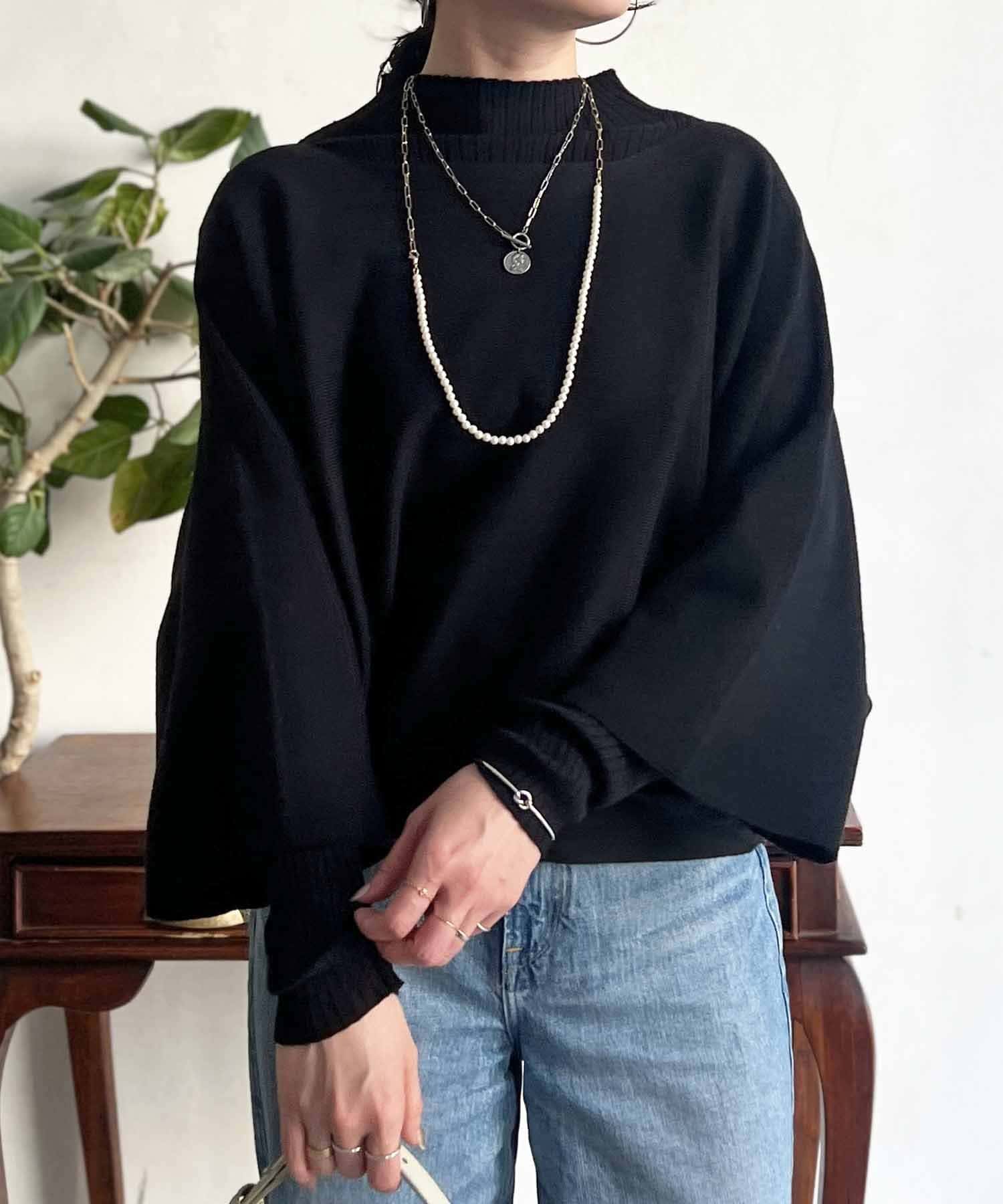 ドルマンシルエットの短丈トップスとベーシックなリブニットで着回し力ばっちり◎