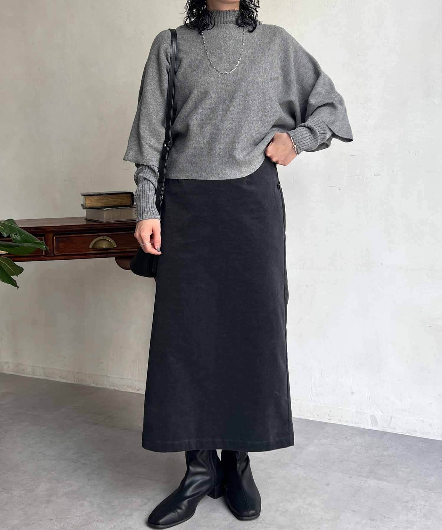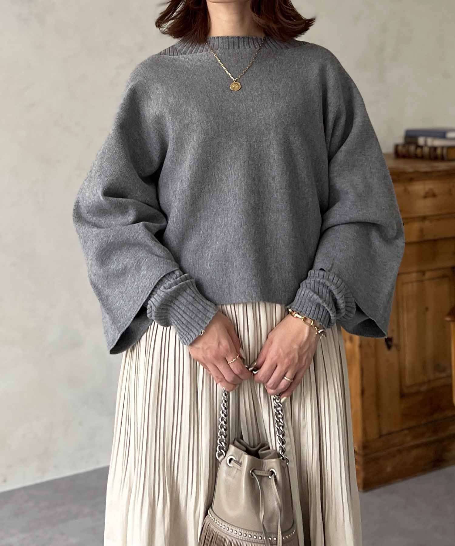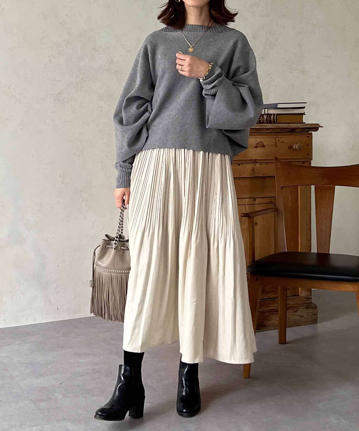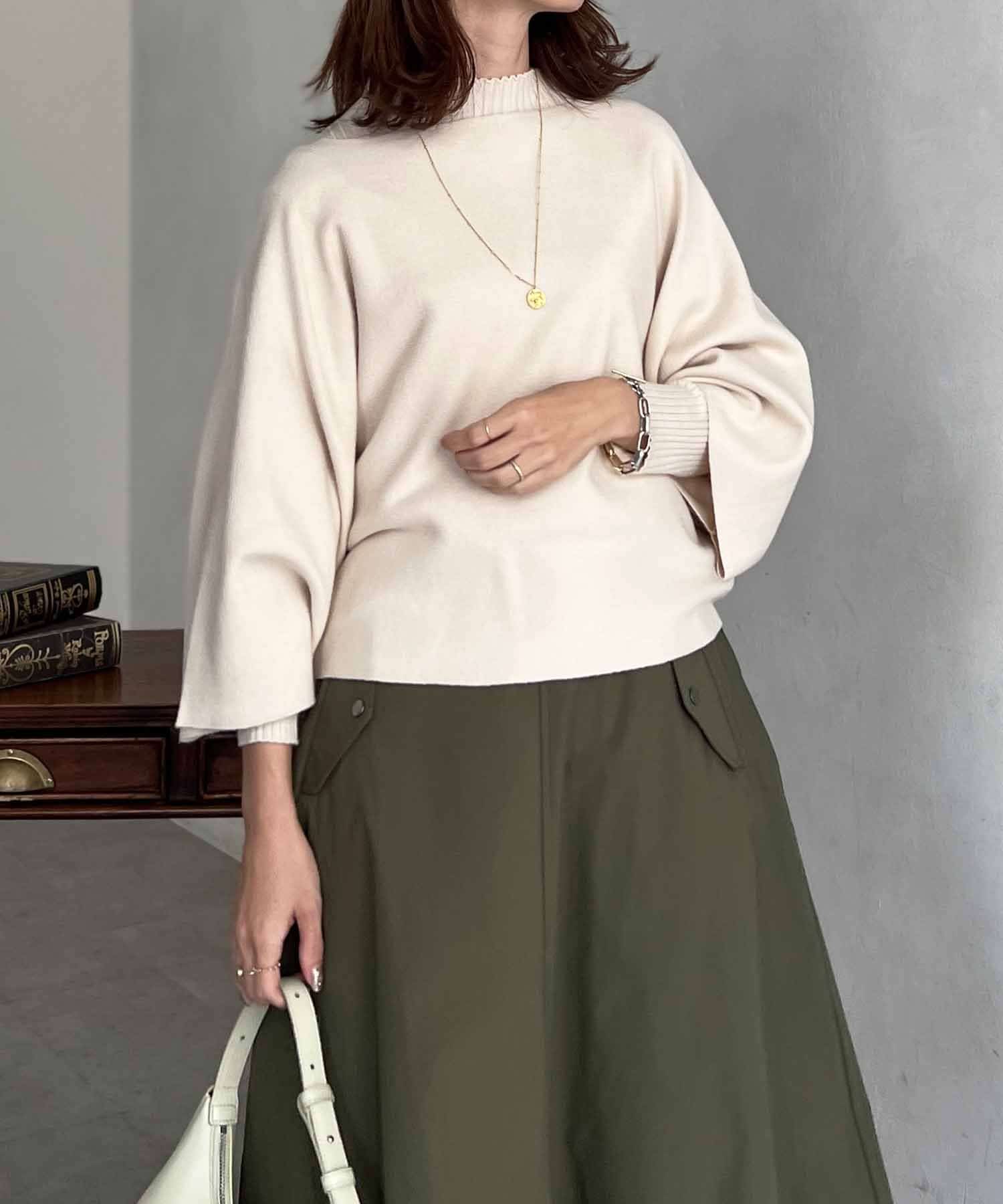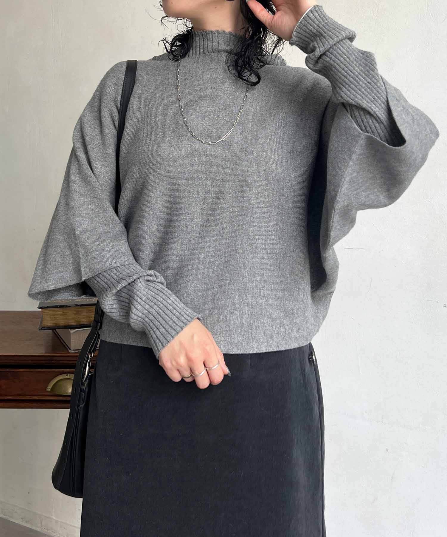 ドルマンシルエットの短丈トップスとベーシックなリブニットで着回し力ばっちり◎