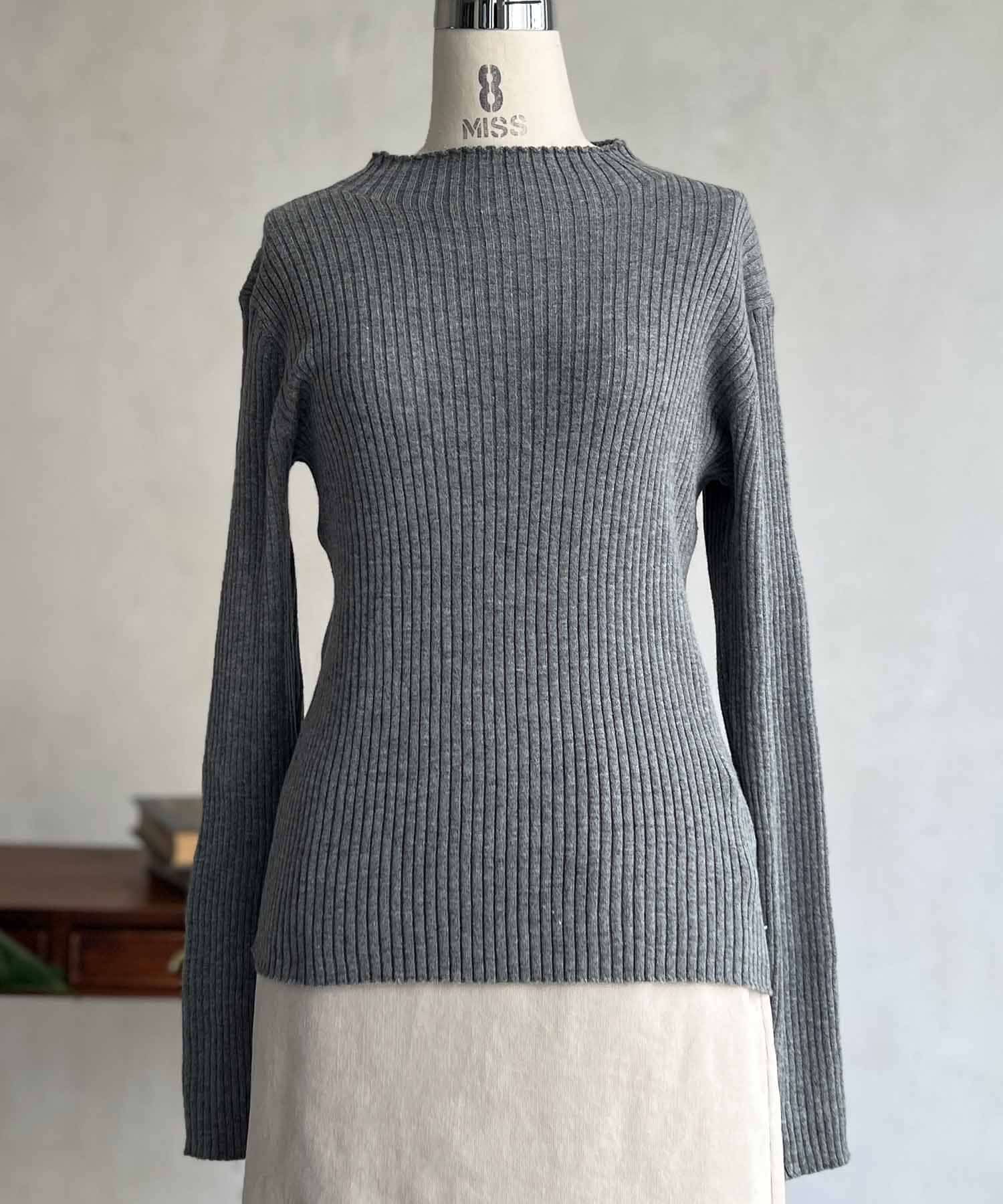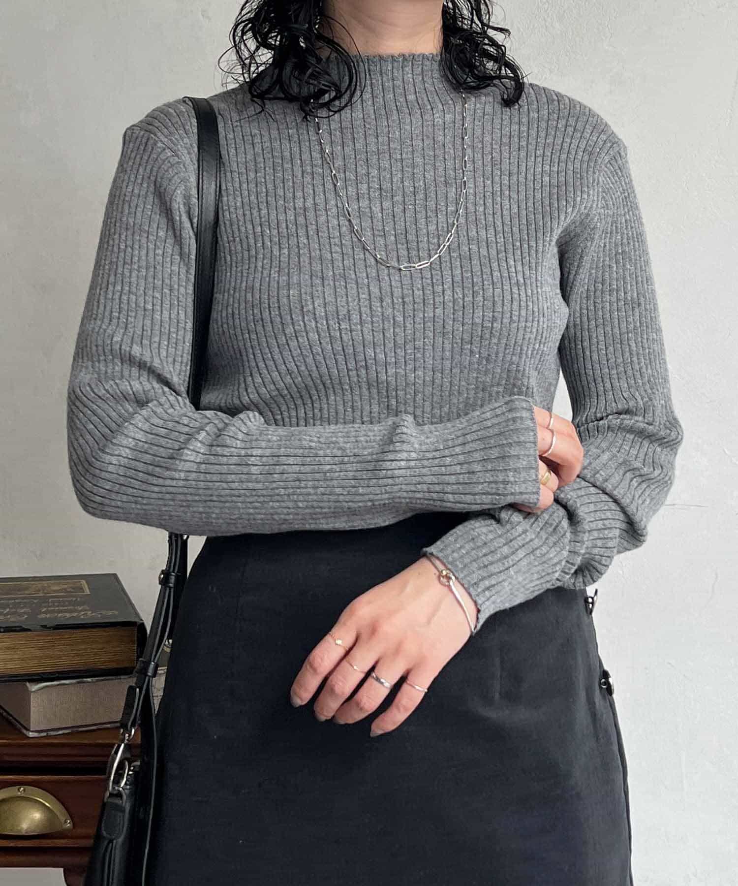 リブニットはベーシックなデザインなので、ほかのトップスと合わせても◎