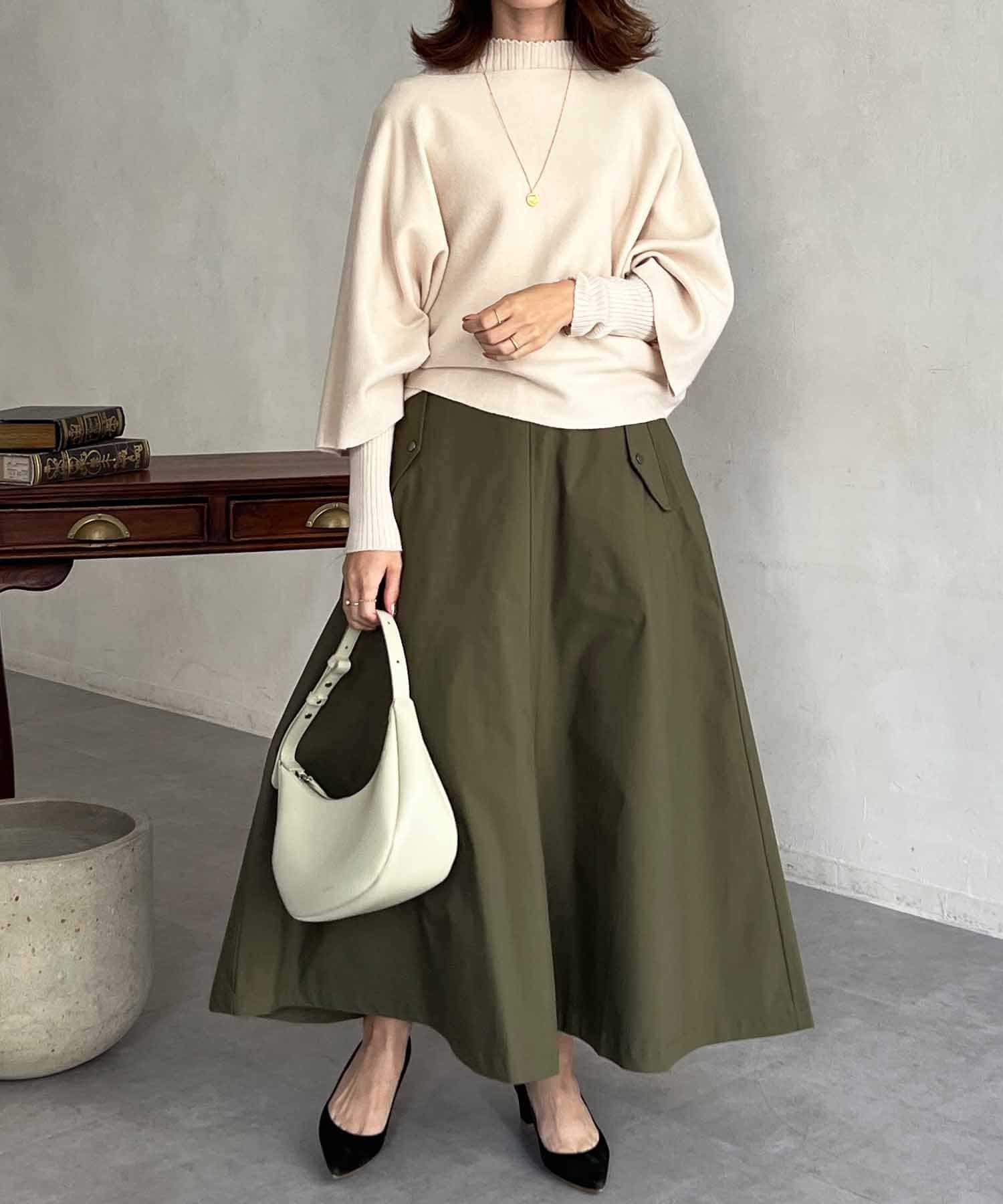 インナーのリブニットがややハイネックな分、すっきり感を強調させてくれるデザインになっています。
