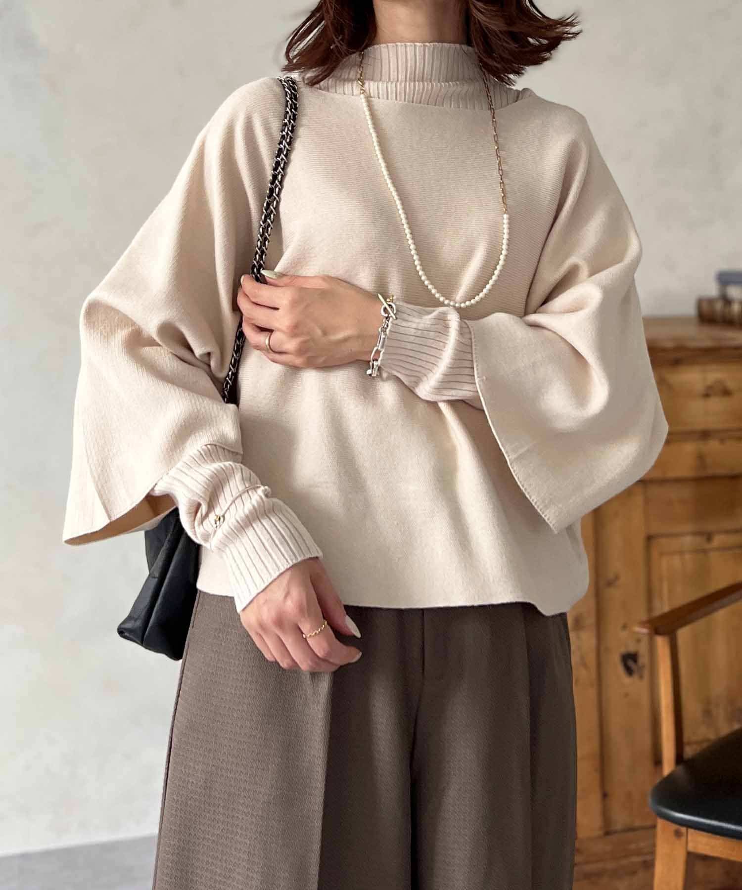 • Croisiere(クロジエール) 【着膨れしない2点セット】重ね着ニットプルオーバー