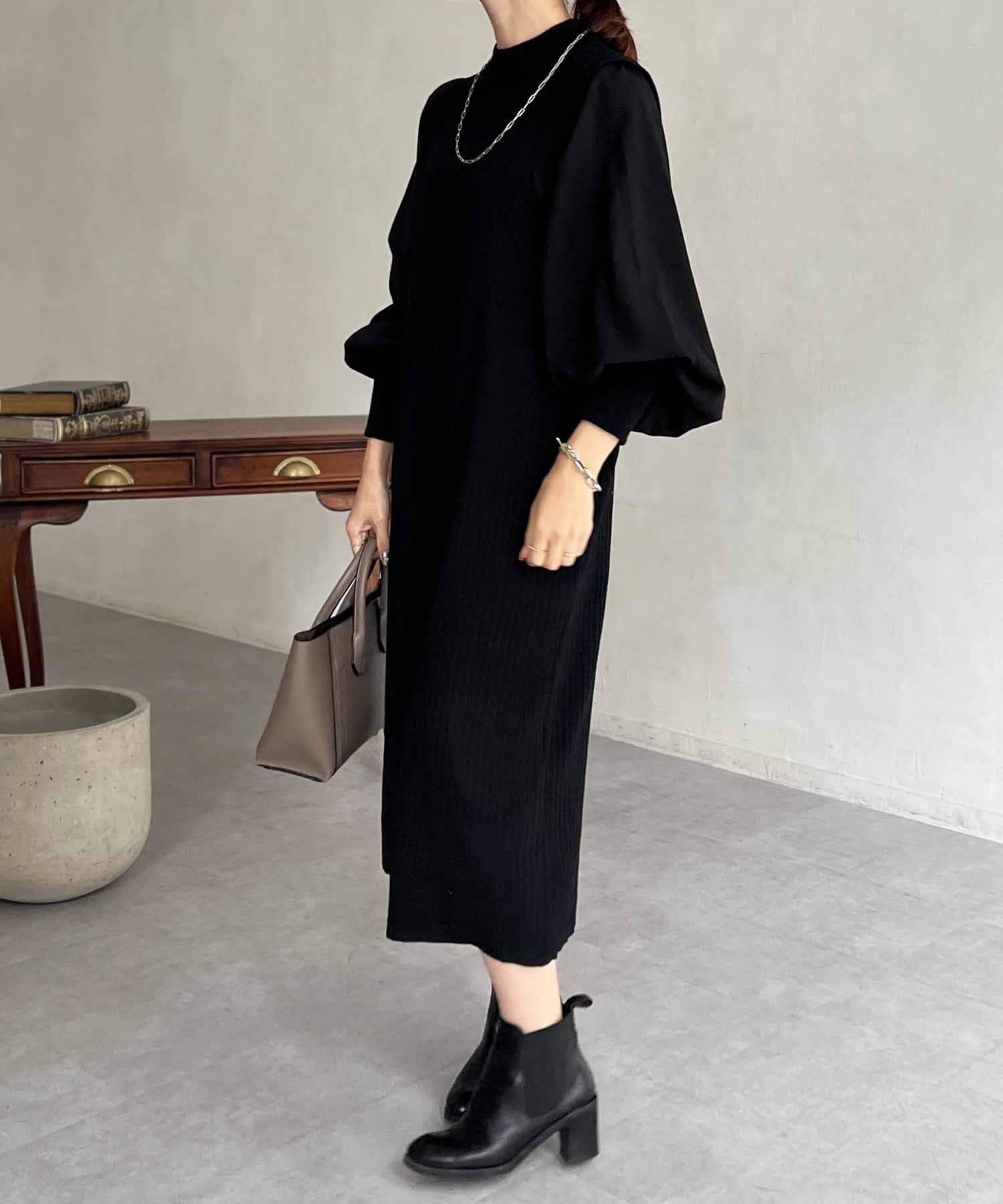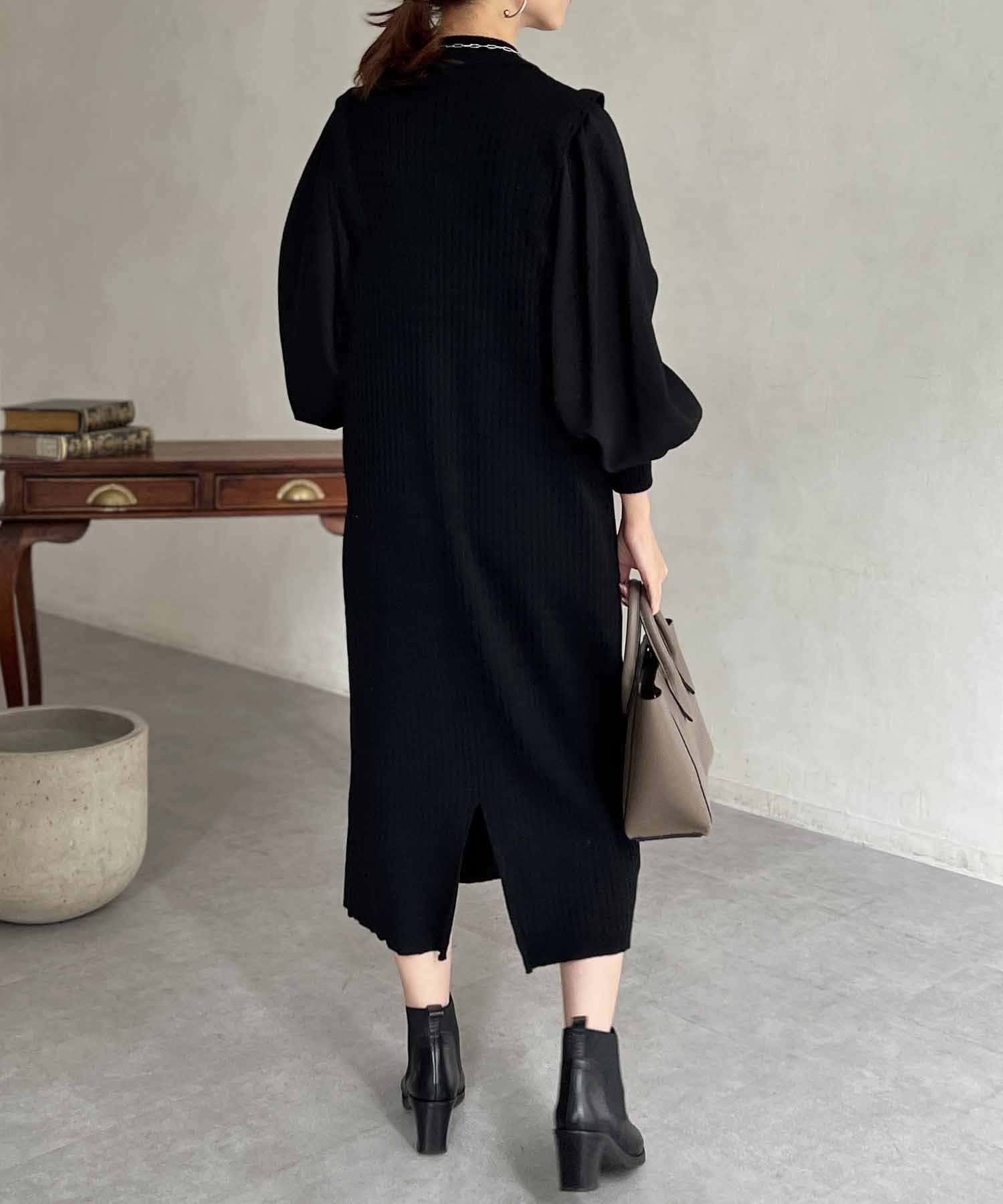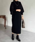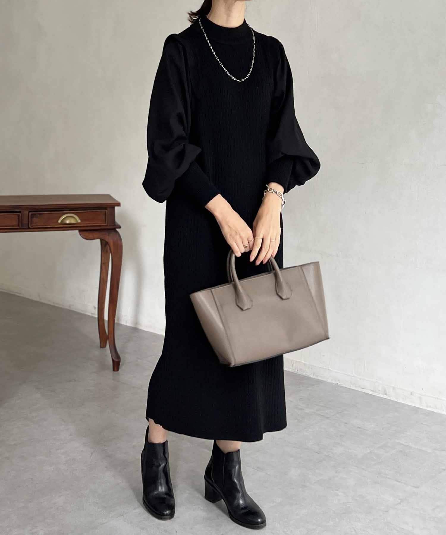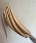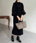 袖元にギャザーがたっぷり寄ったボリューム袖ですが、リブニットで広がり過ぎないシルエットにすることで程よく甘さを中和し、大人っぽい仕上がりに。