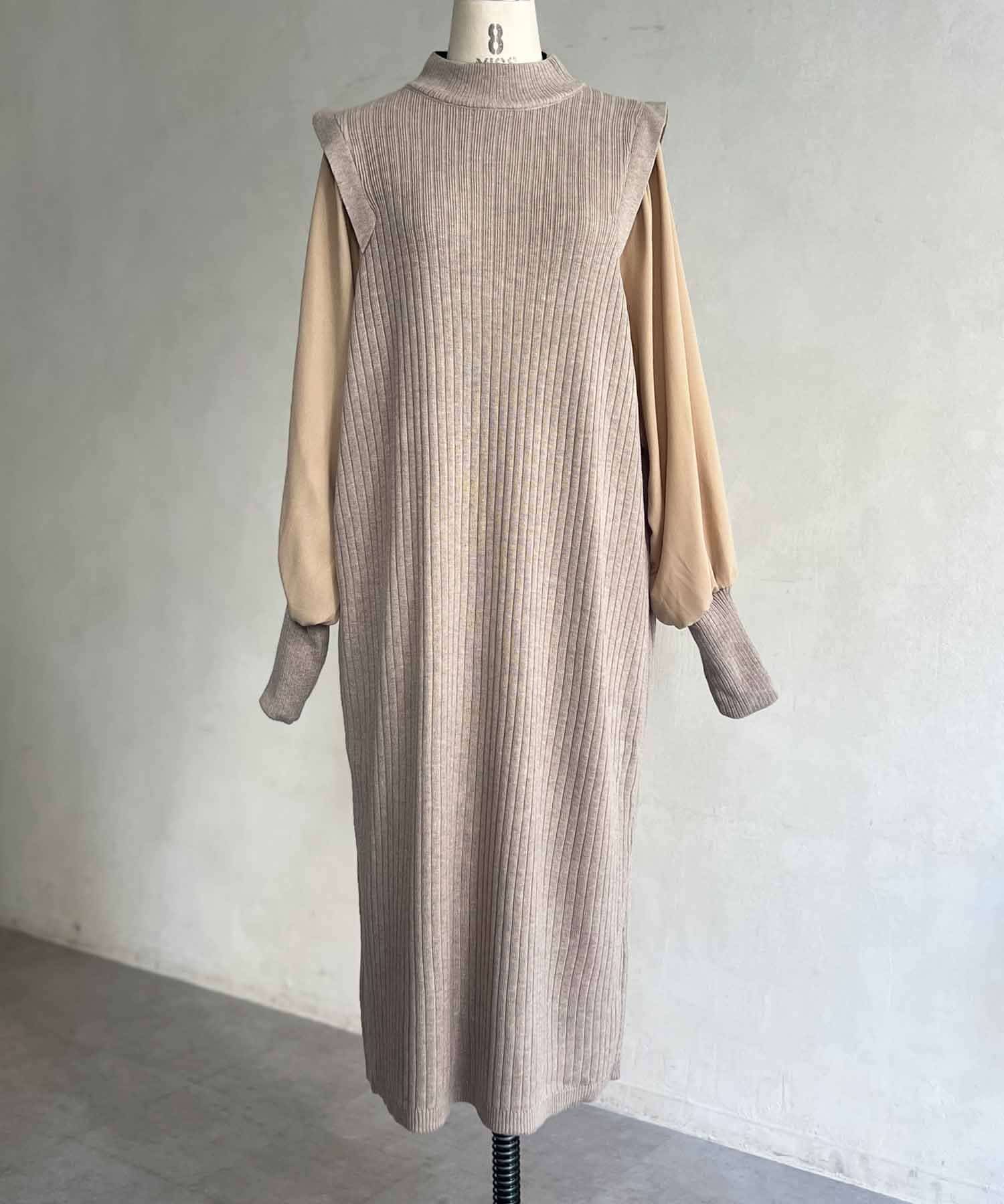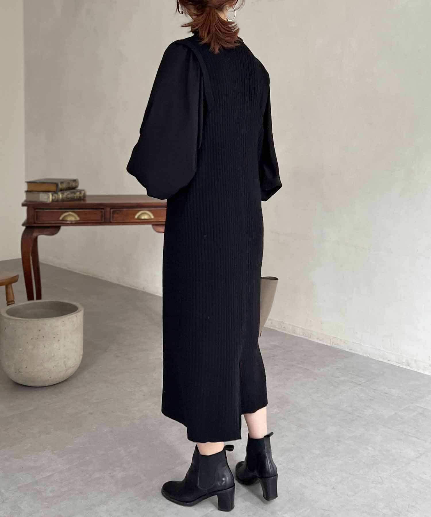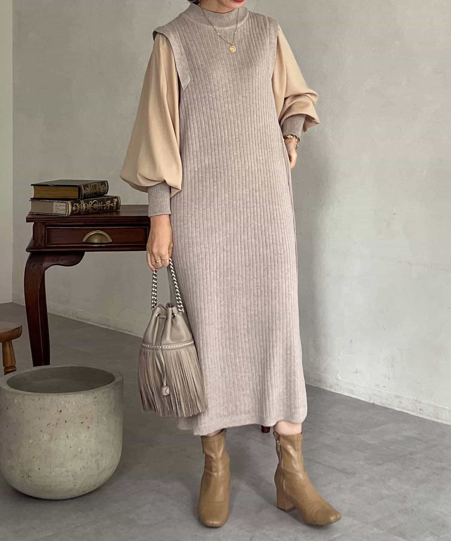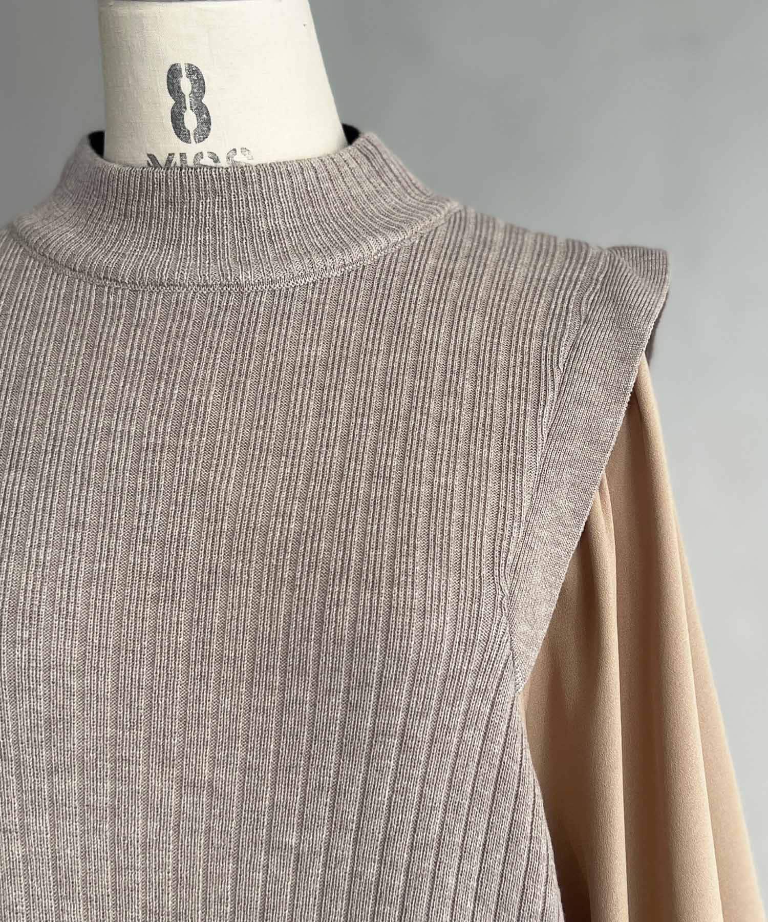 袖元にギャザーがたっぷり寄ったボリューム袖ですが、リブニットで広がり過ぎないシルエットにすることで程よく甘さを中和し、大人っぽい仕上がりに。
