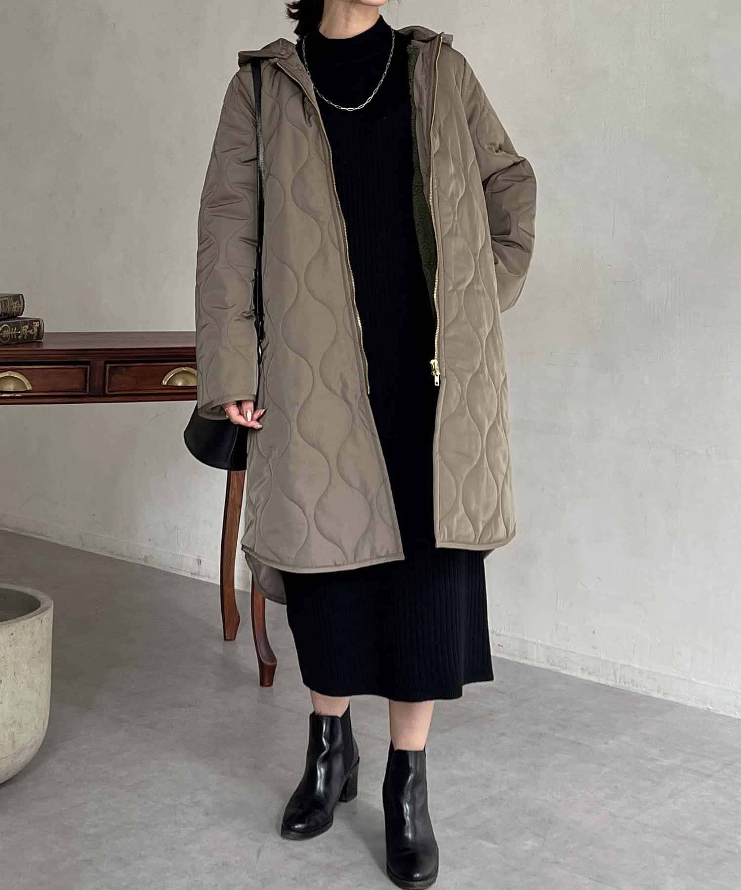 しっかりと厚みのあるリブニットで体のラインを拾いすぎることなく上品なシルエットを演出してくれます。