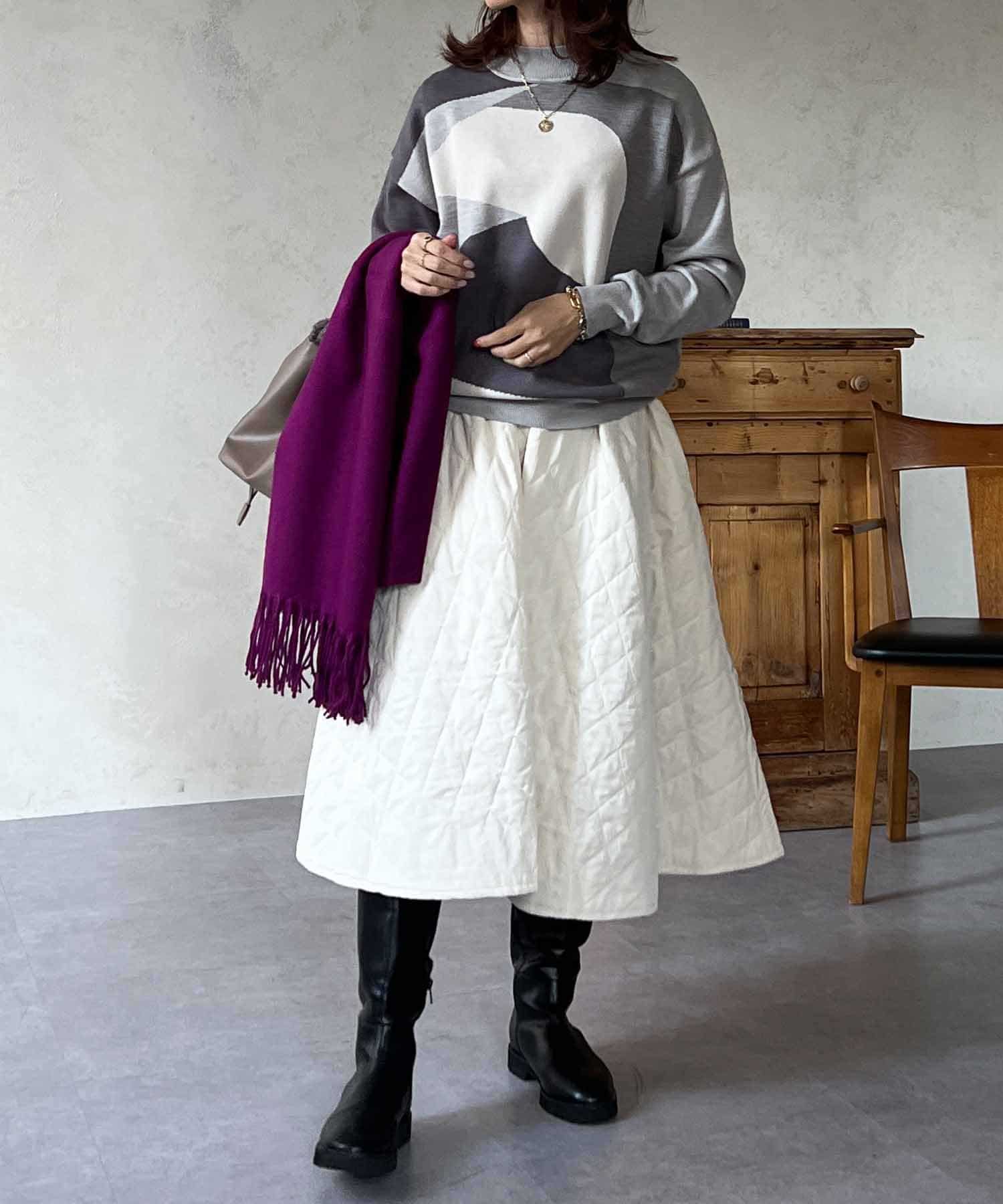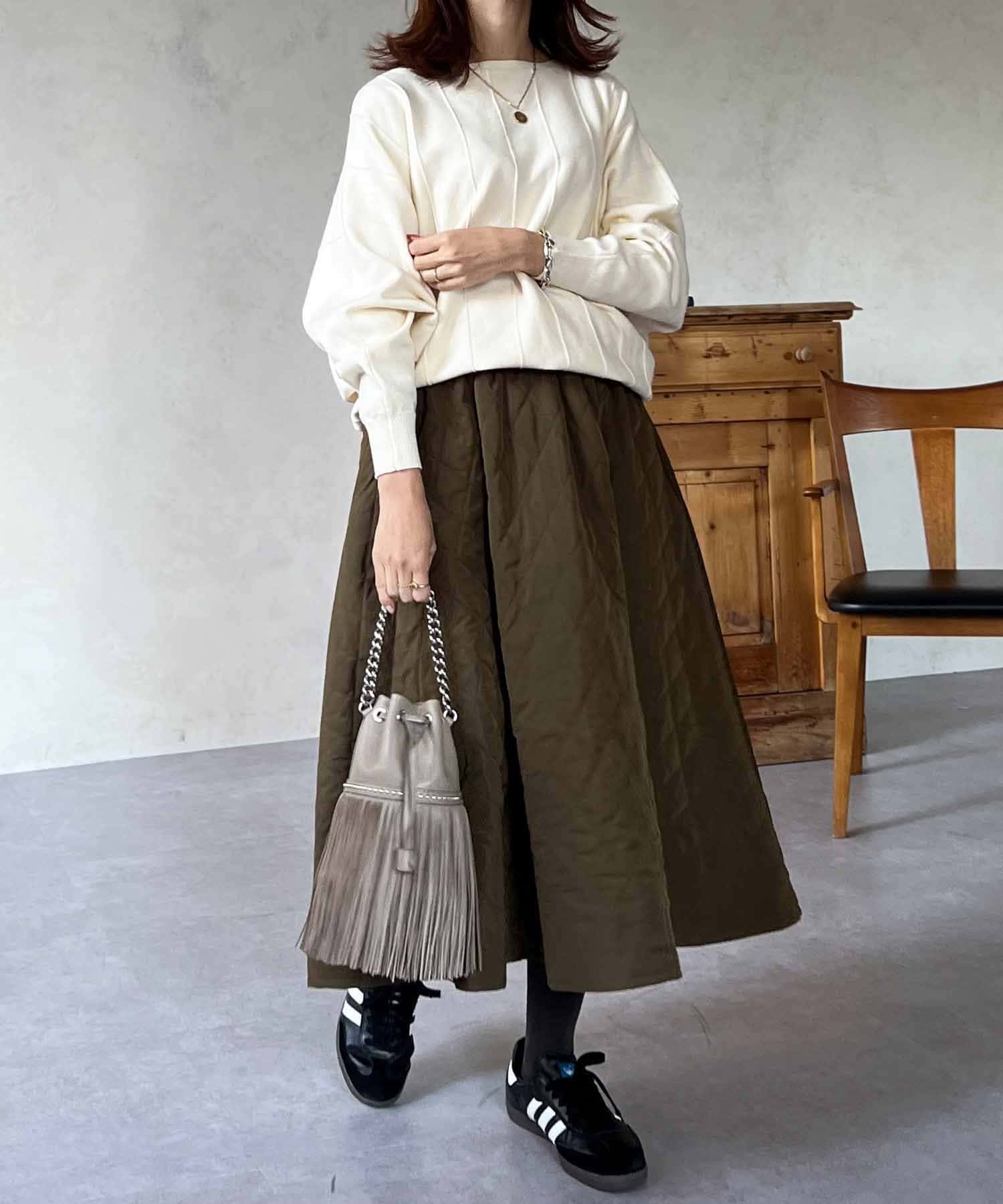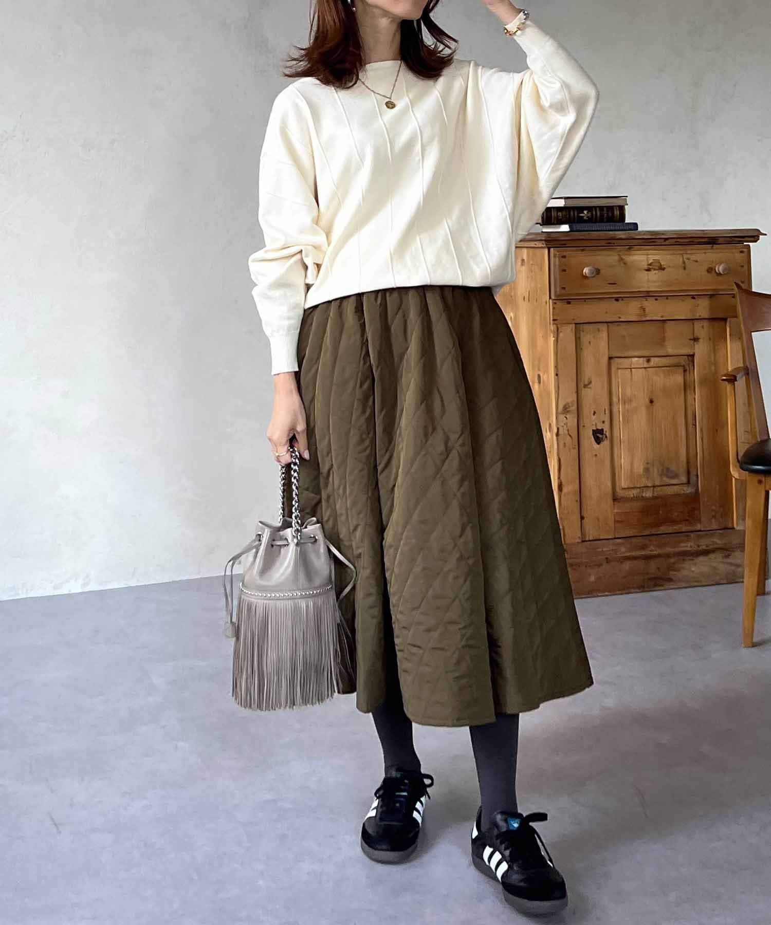 ニットを合わせてきれいめに、スウェトやカットソーを合わせてカジュアルにもおすすめ!