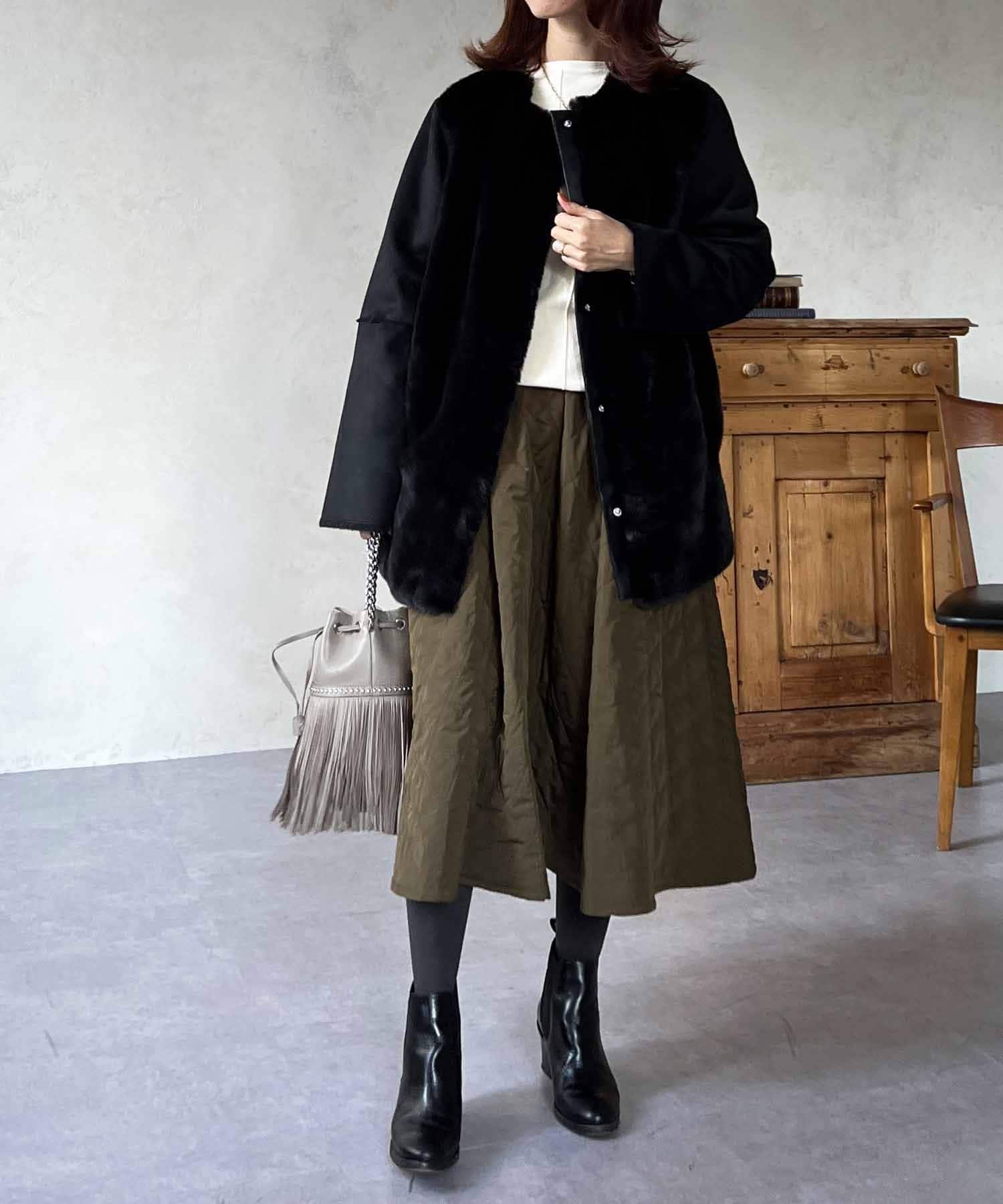 マットな質感のサテン生地は高級感があり、上品カジュアルなスタイリングにもぴったり◎