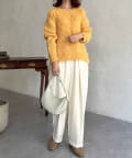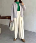 シャツやブラウスで合わせるとお仕事コーデにもなるのでオンオフ問わず活躍する1枚です。