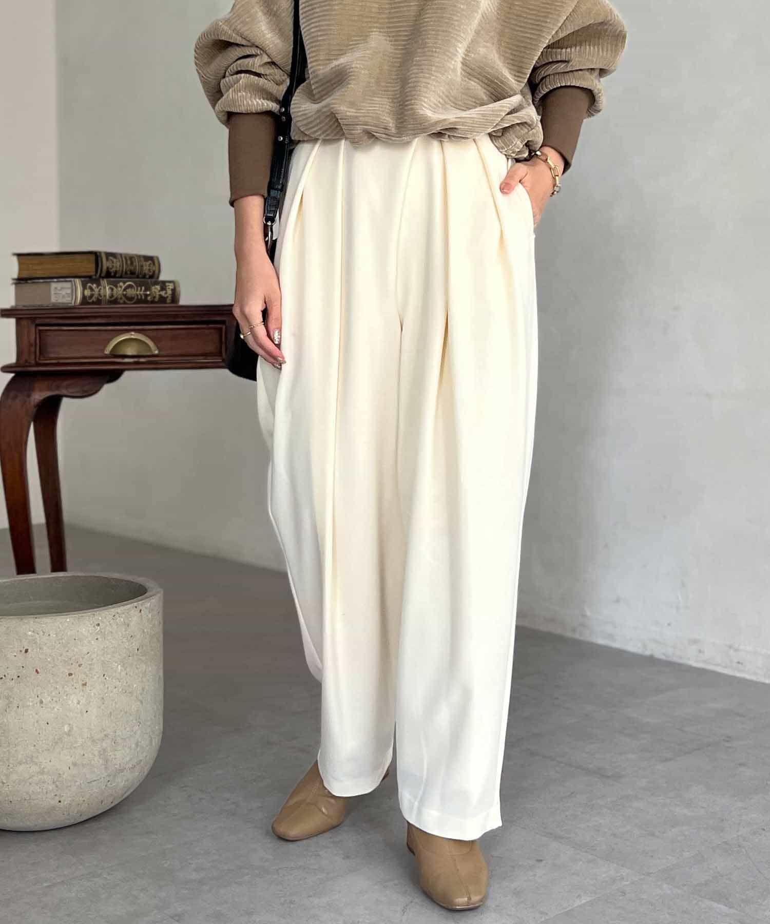 キュッとしたウエストラインに ゆったりタックパンツ