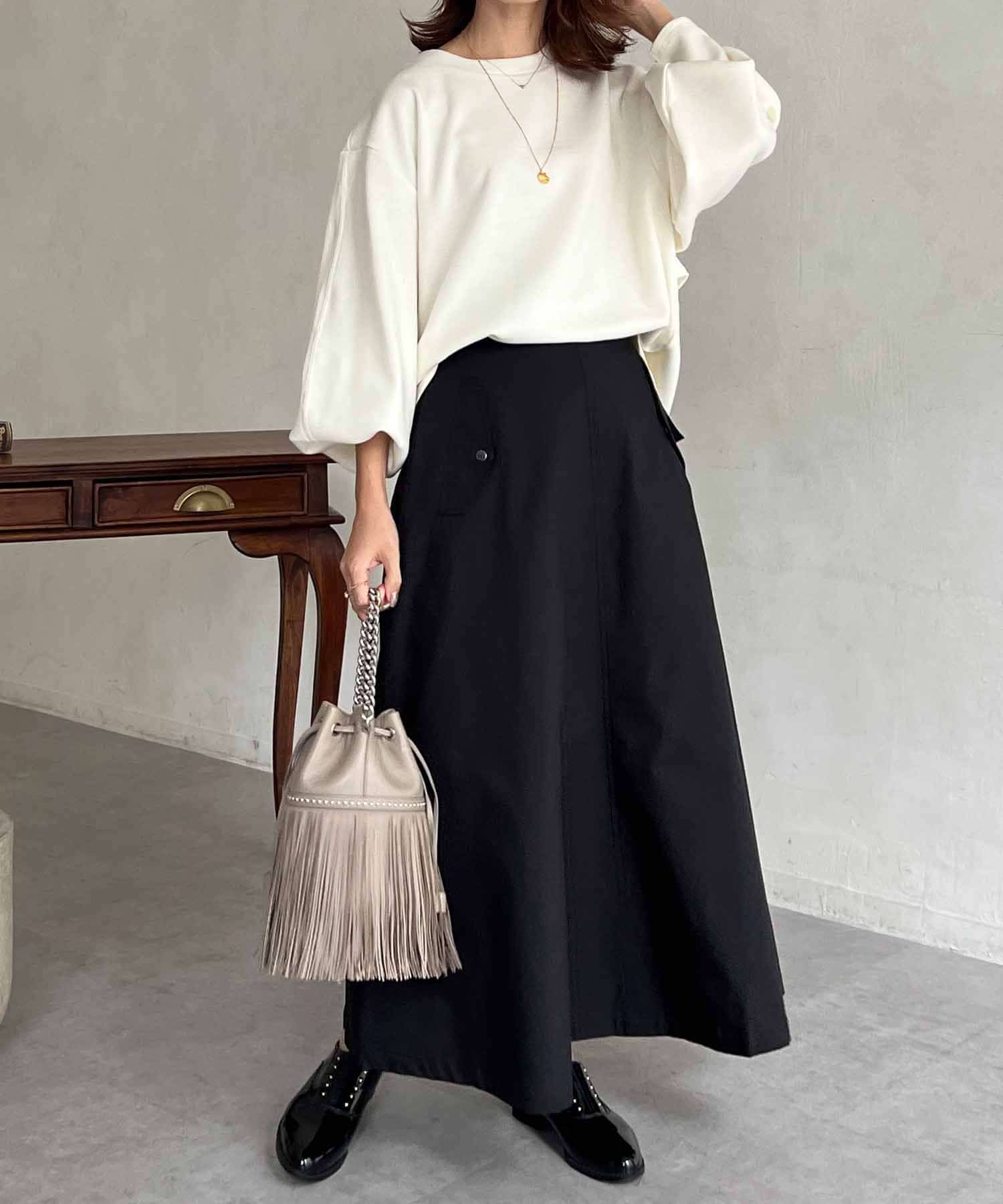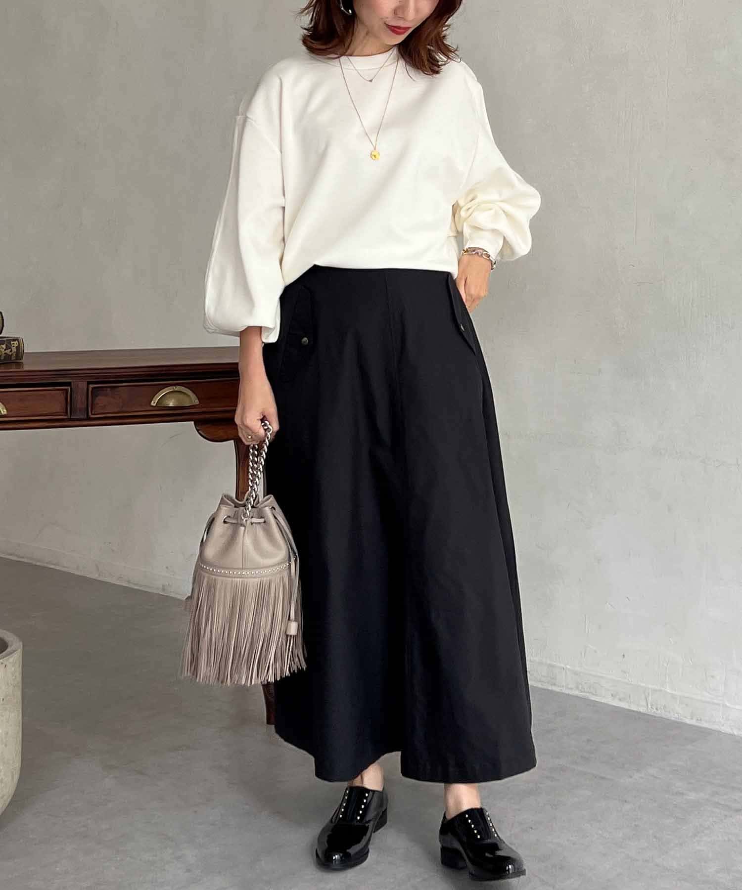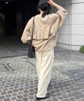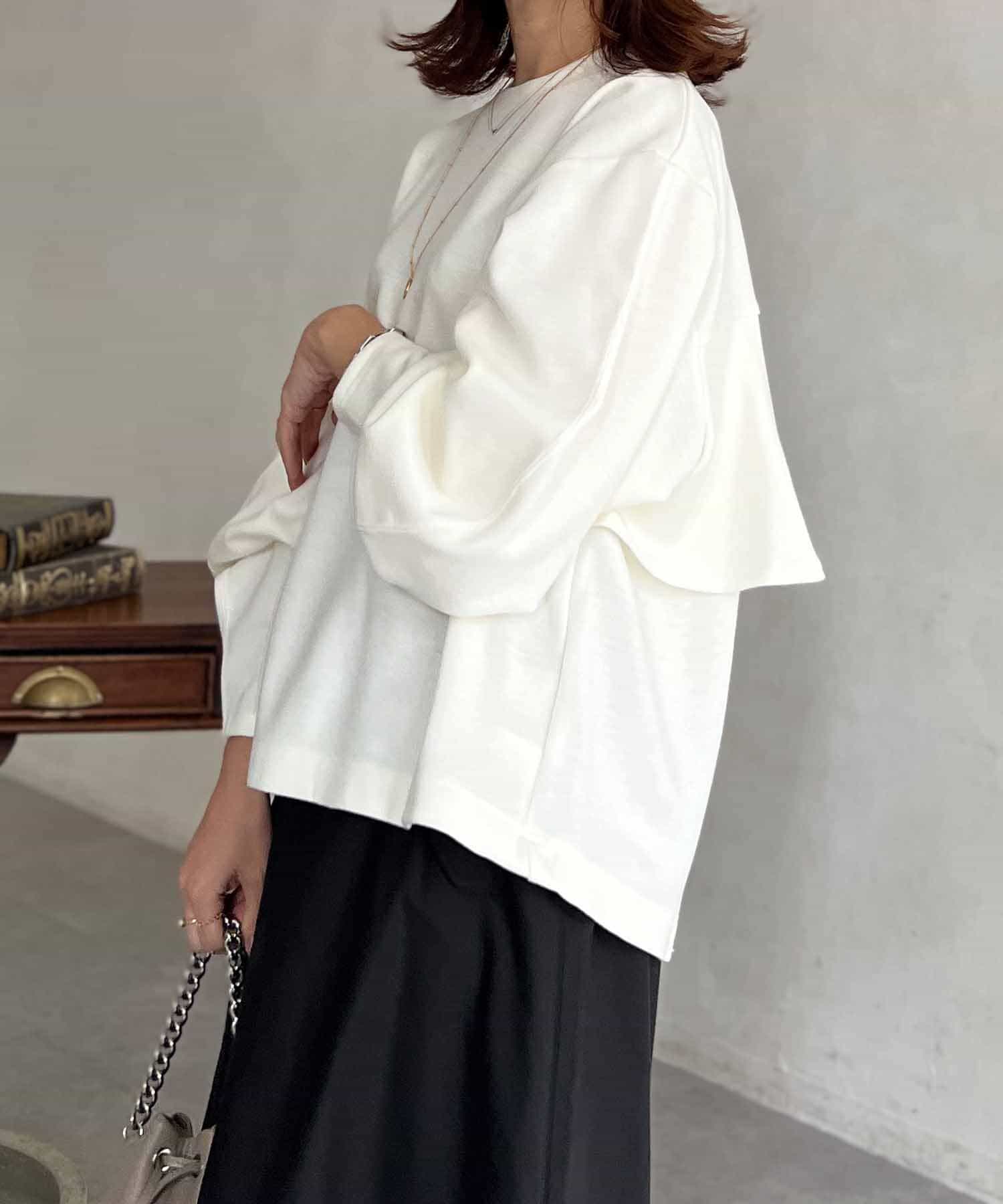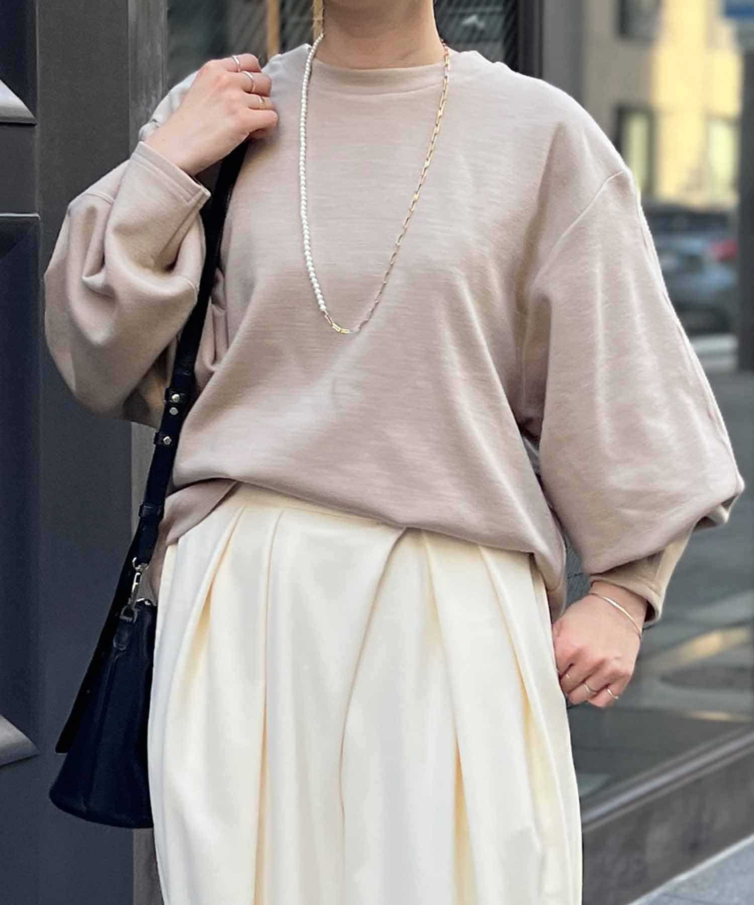 Tシャツ以上、スウェット未満のちょうどいい生地感。ゆとりのあるサイズ感で大人カジュアルな抜け感が出ます。