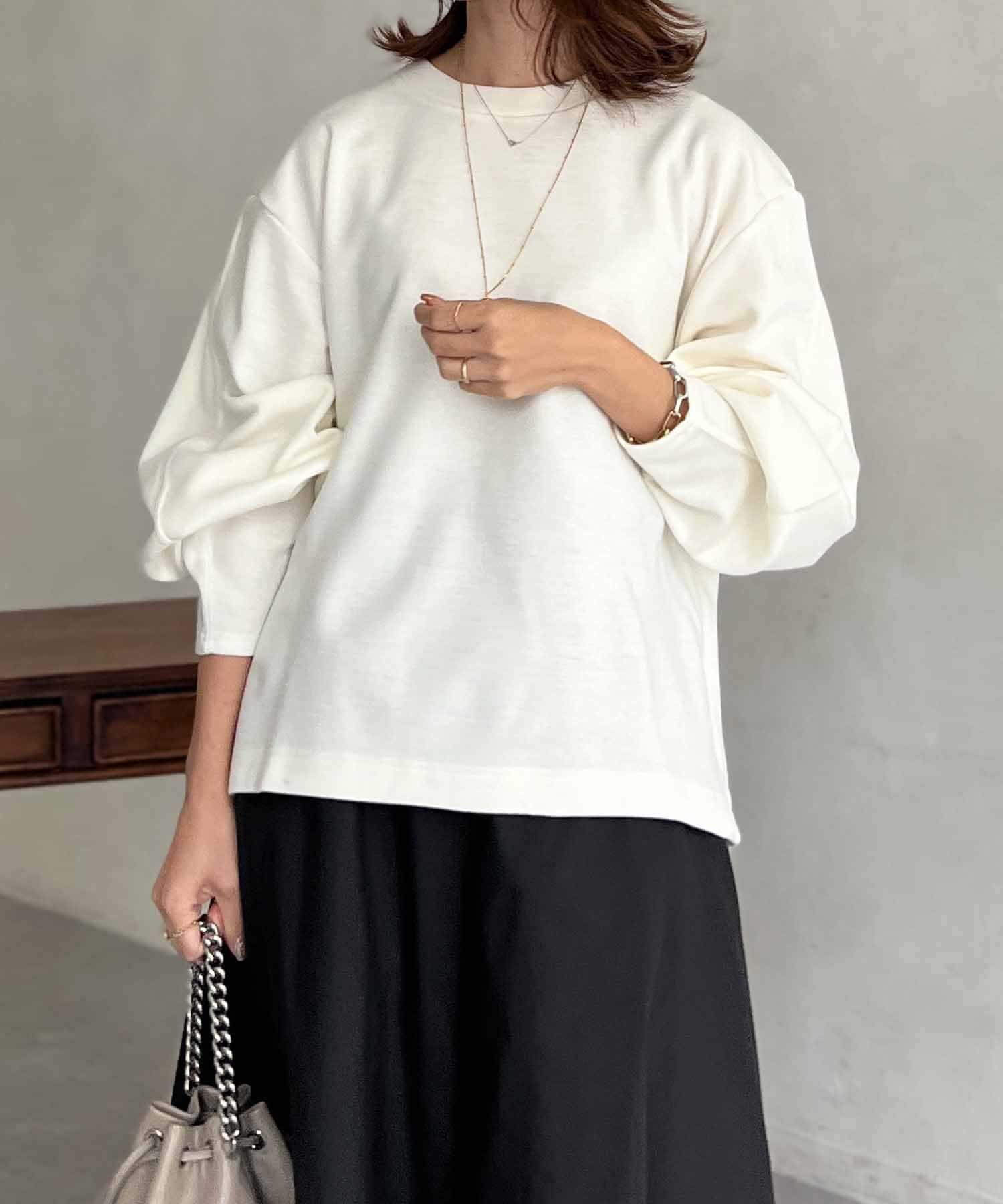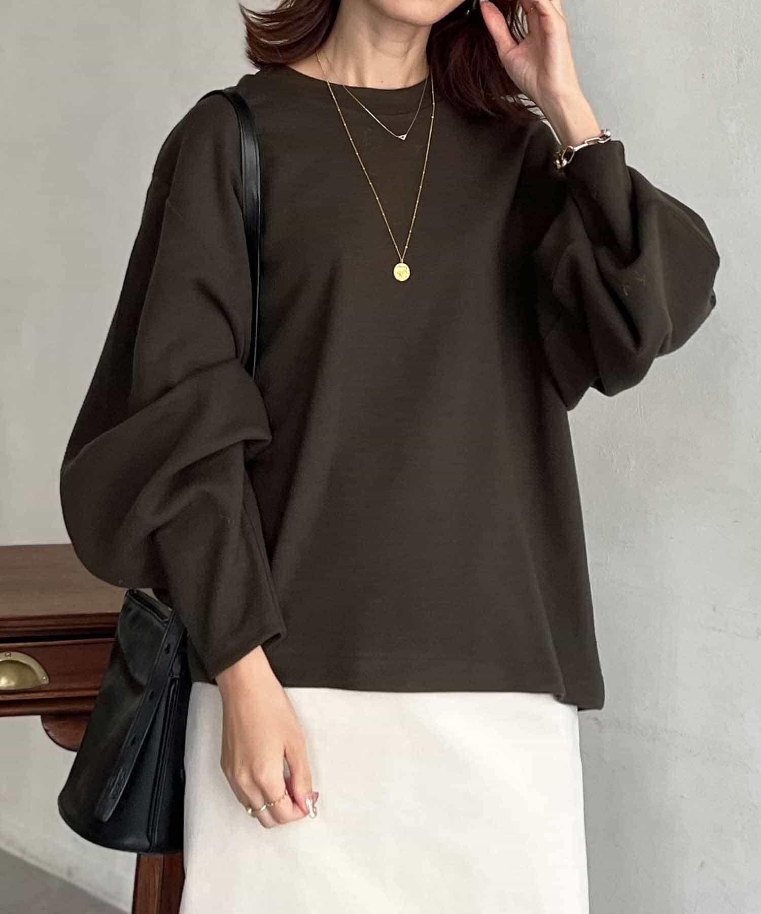 手首回りはややタイトになっているので、程よく袖元にボリュームを持たせたシルエットを楽しんでいただけます。