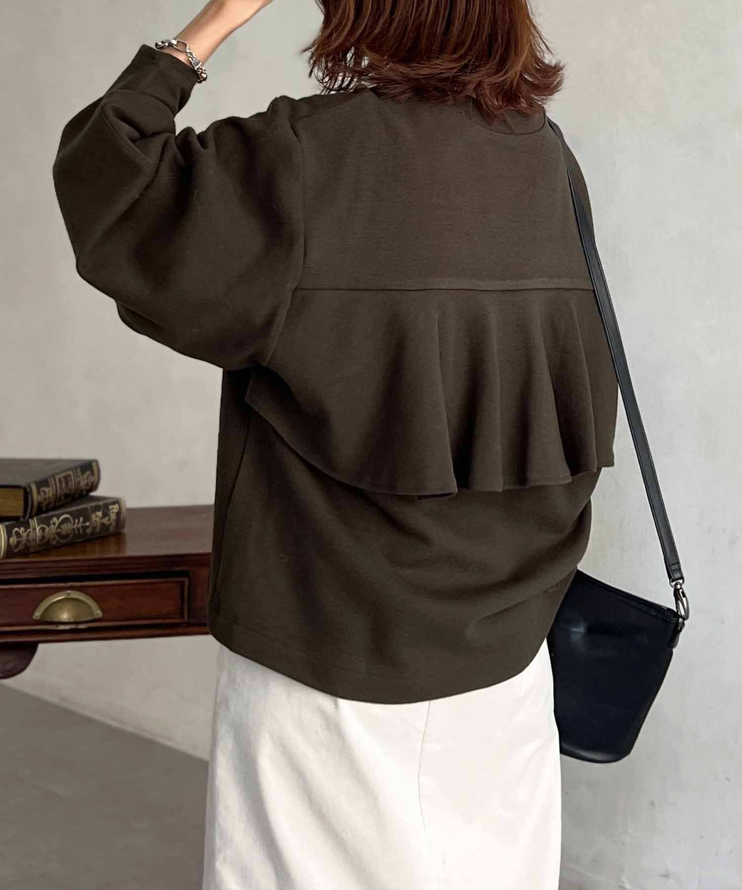 前はシンプル、後ろ姿は可愛い!バックフリルデザインのトップスです。
