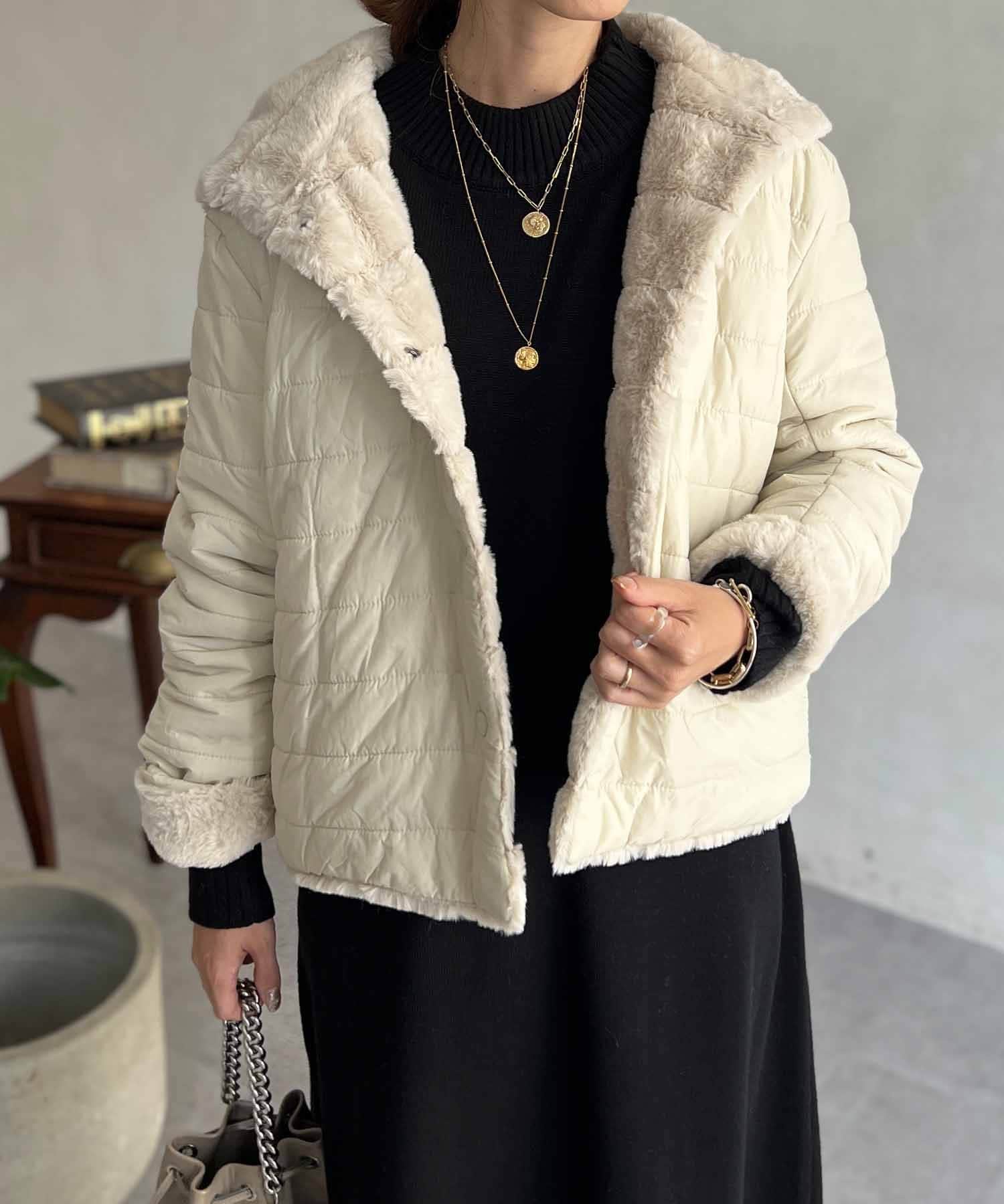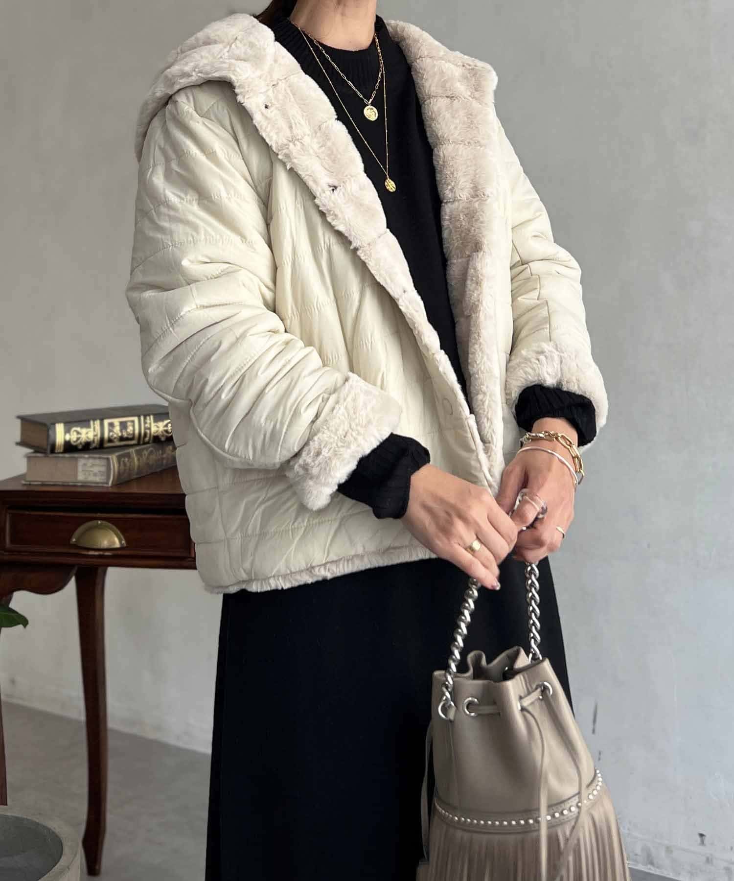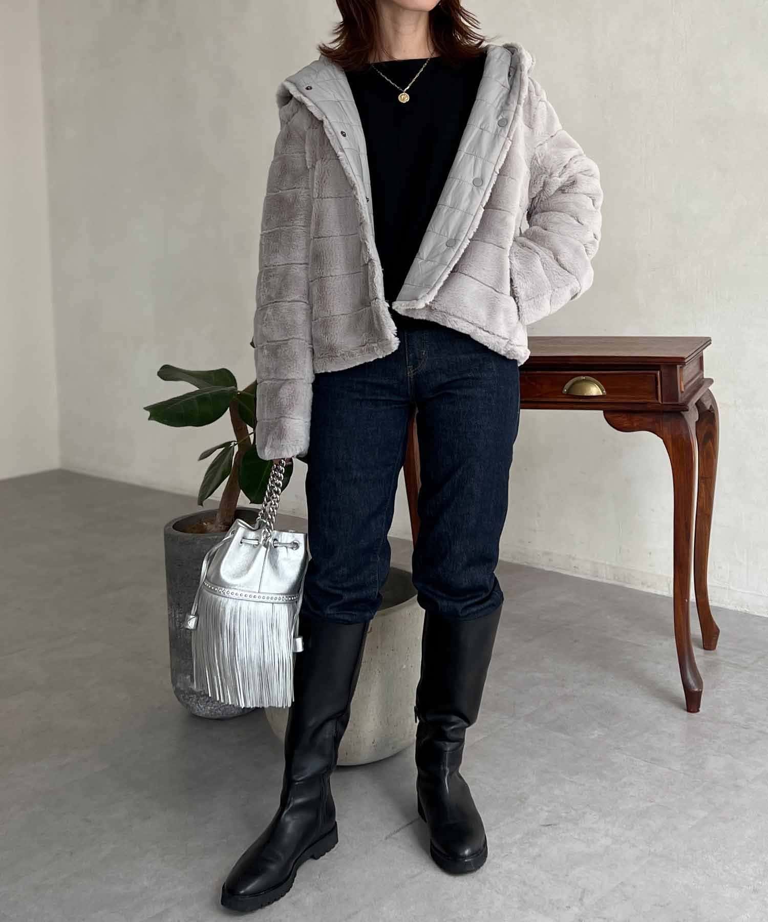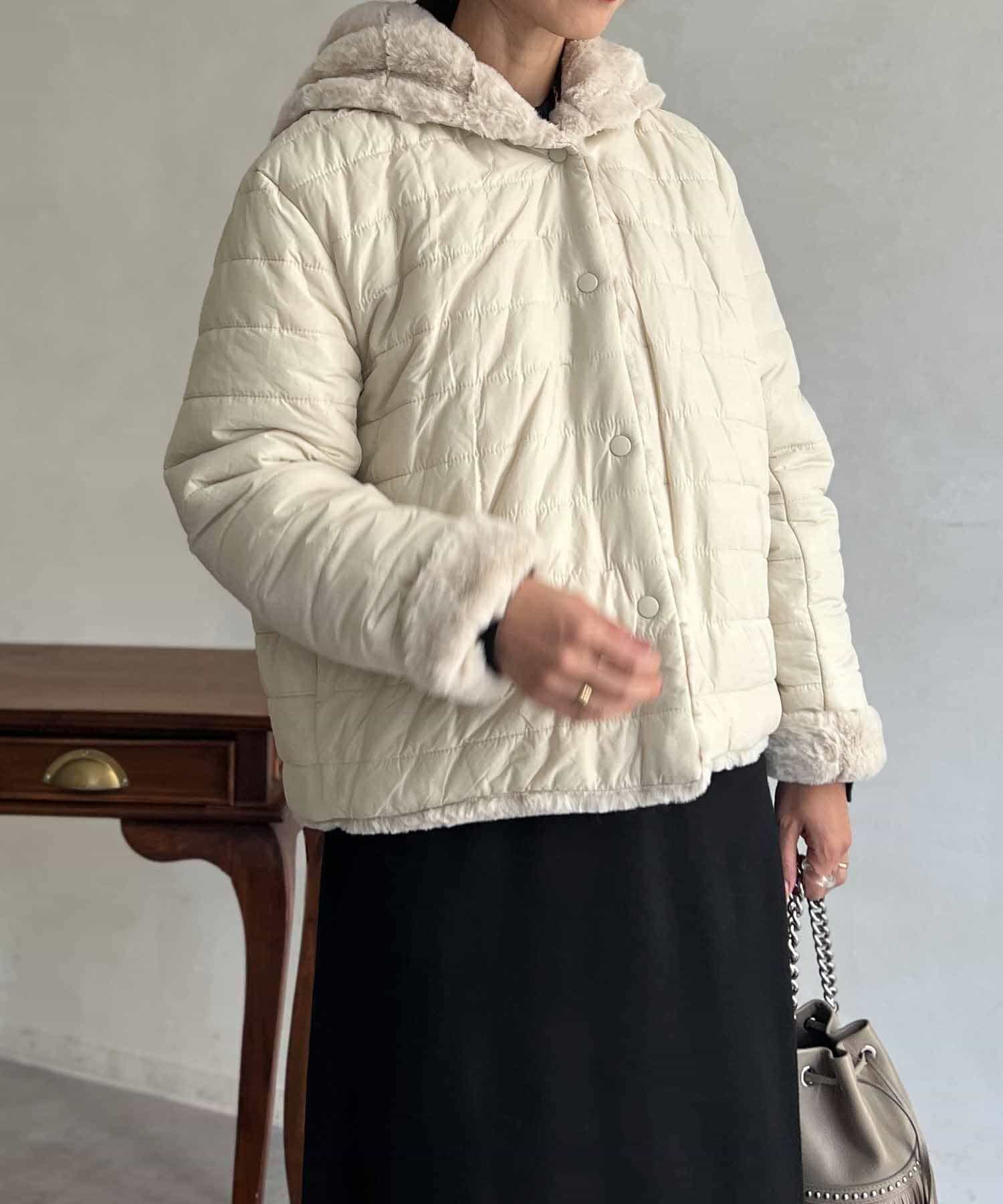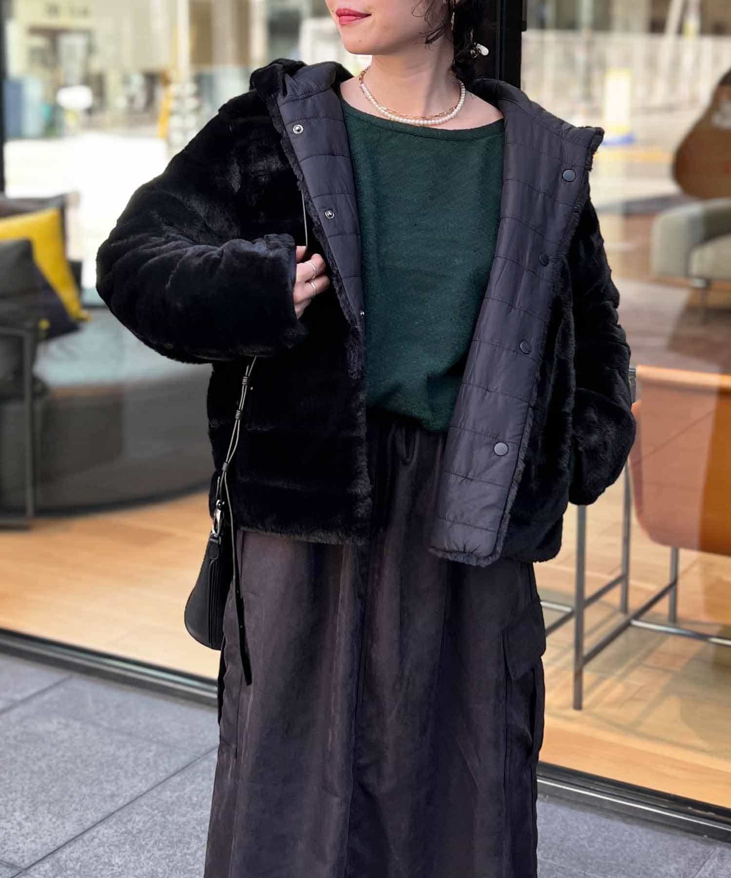 フェイクファーサイドはふわふわとした柔らかな質感が気持ち良く、上品なカジュアルコーデを楽しんでいただけます。
