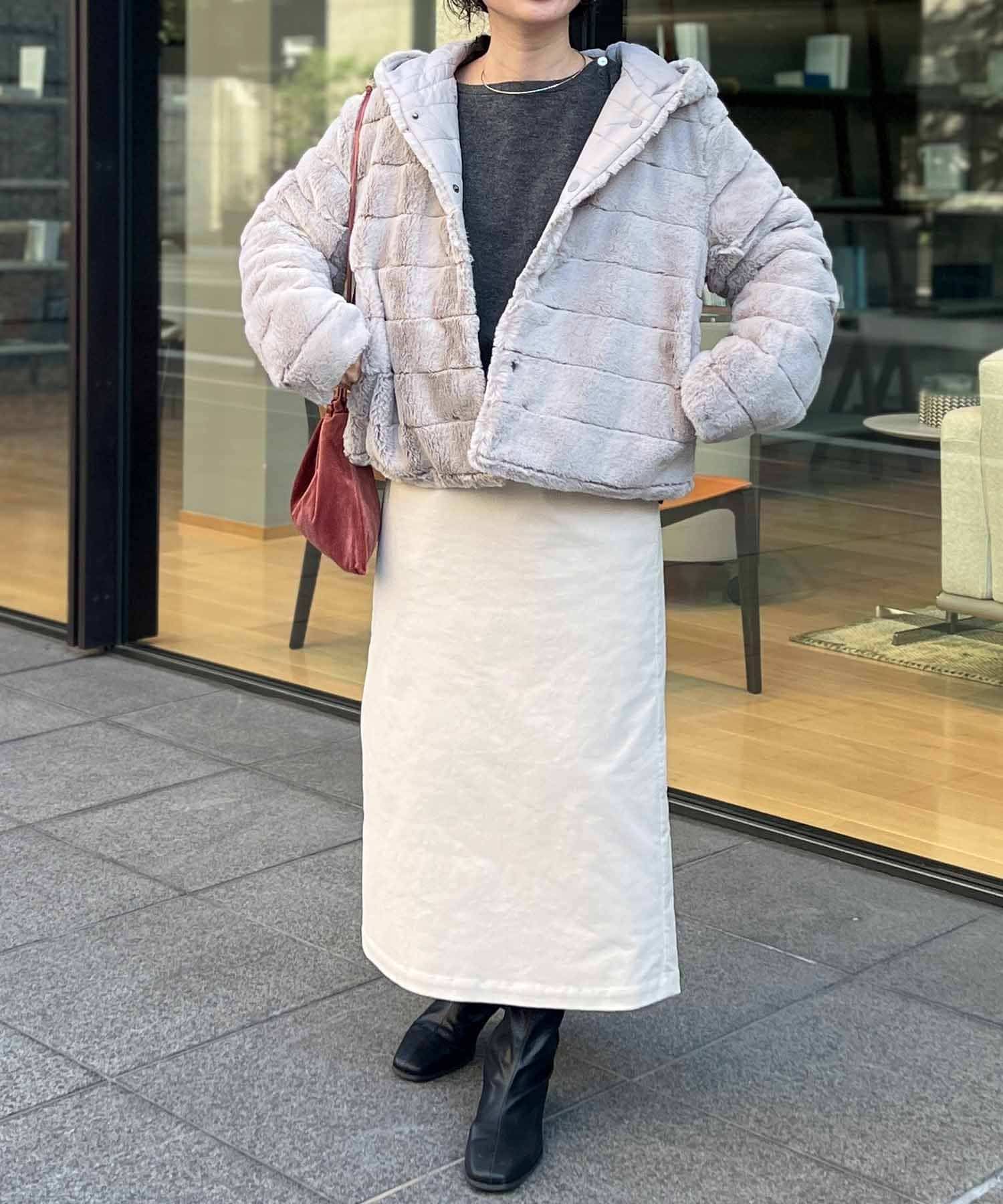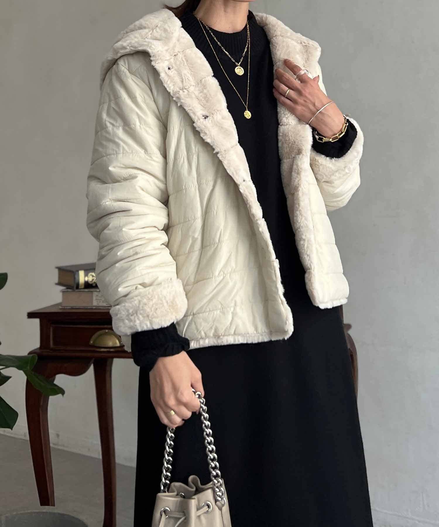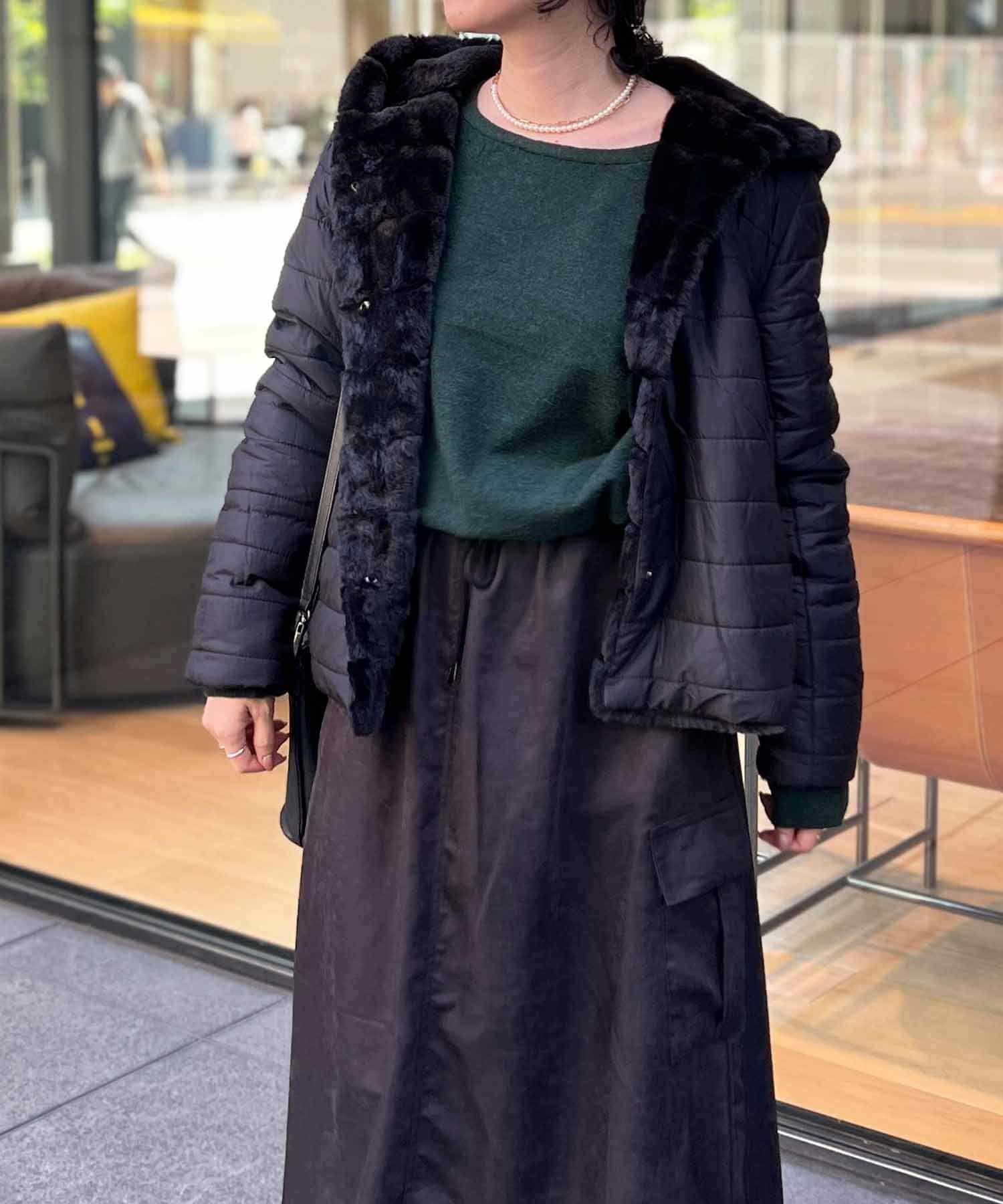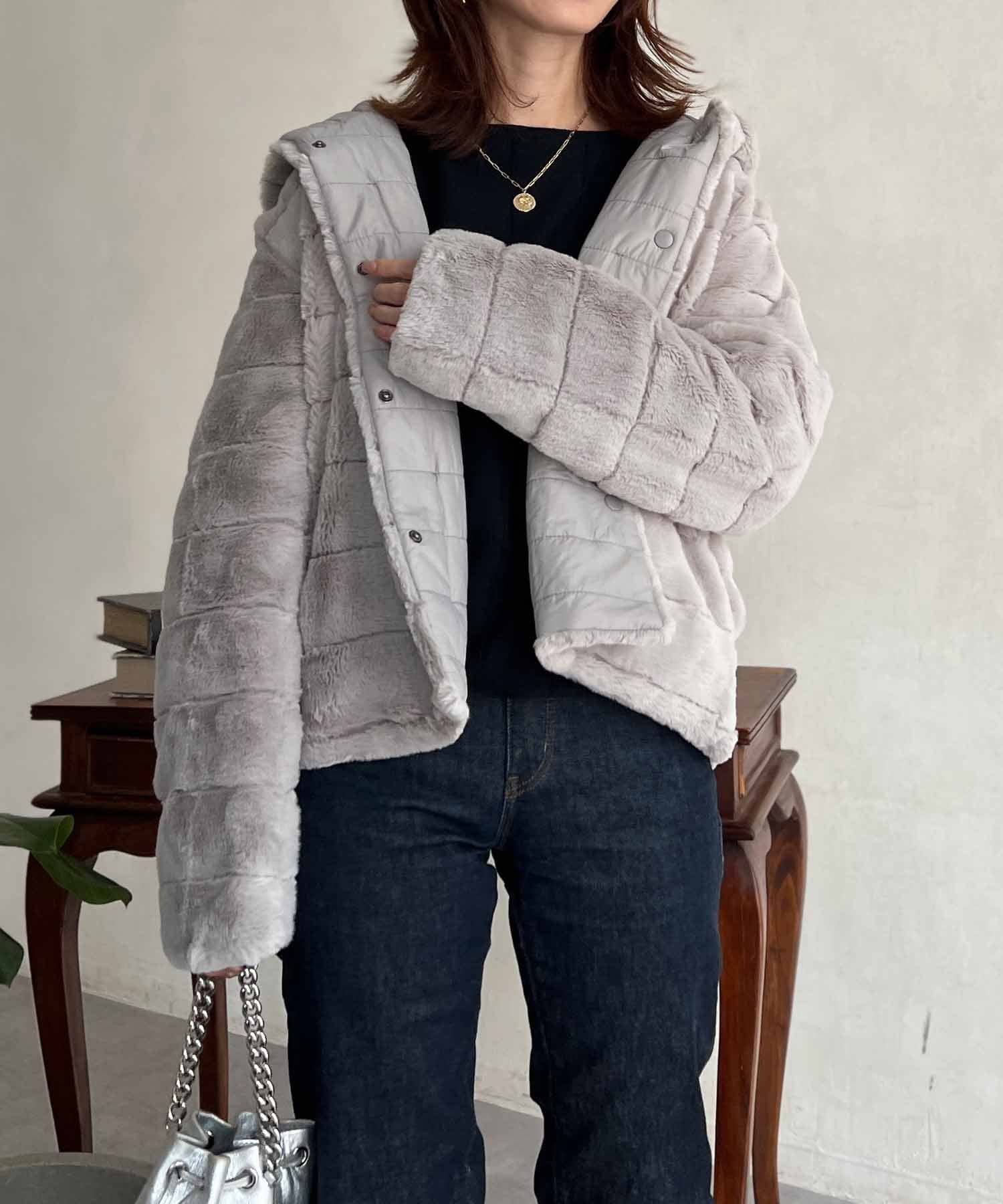 フェイクファーサイドはふわふわとした柔らかな質感が気持ち良く、上品なカジュアルコーデを楽しんでいただけます。