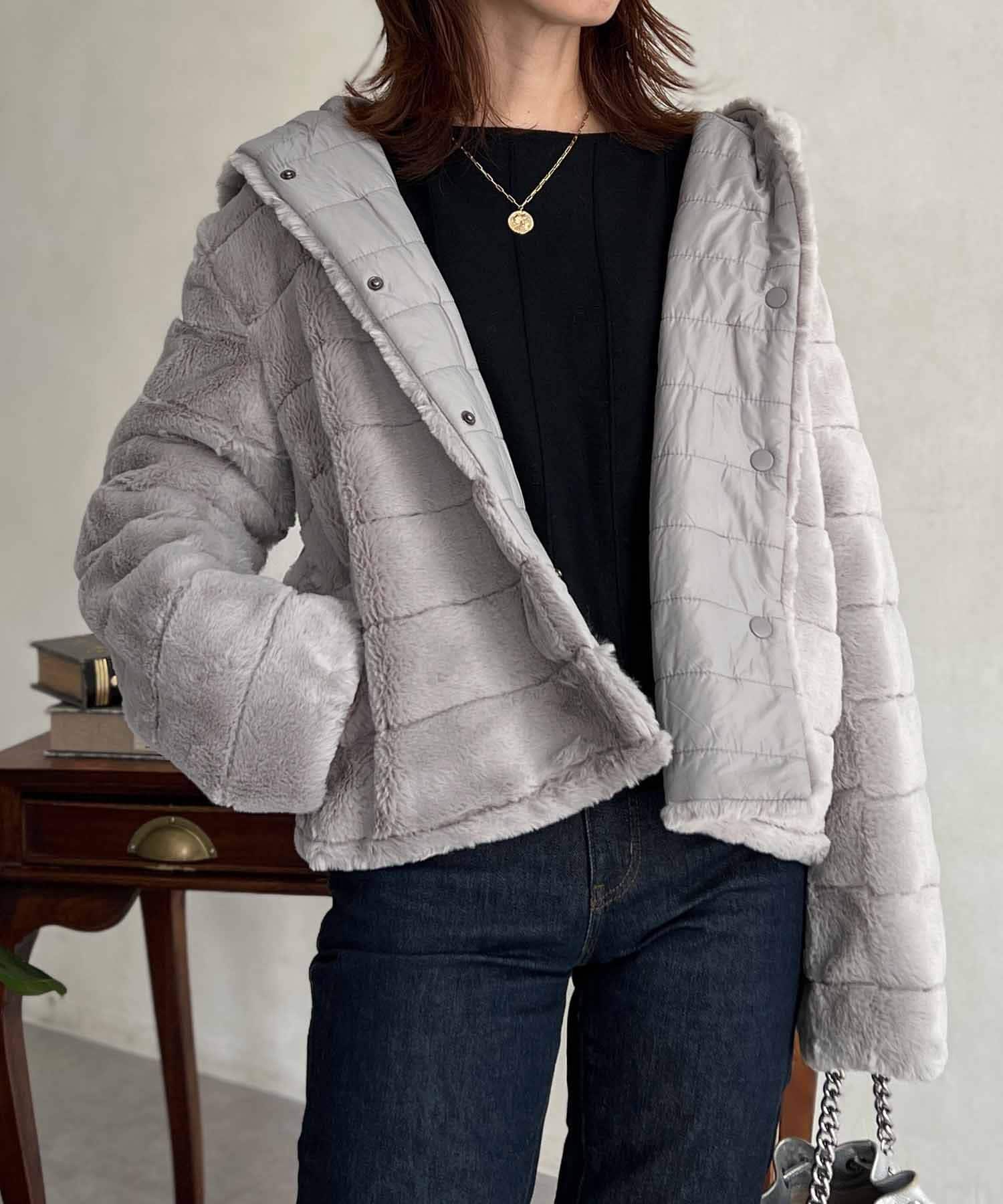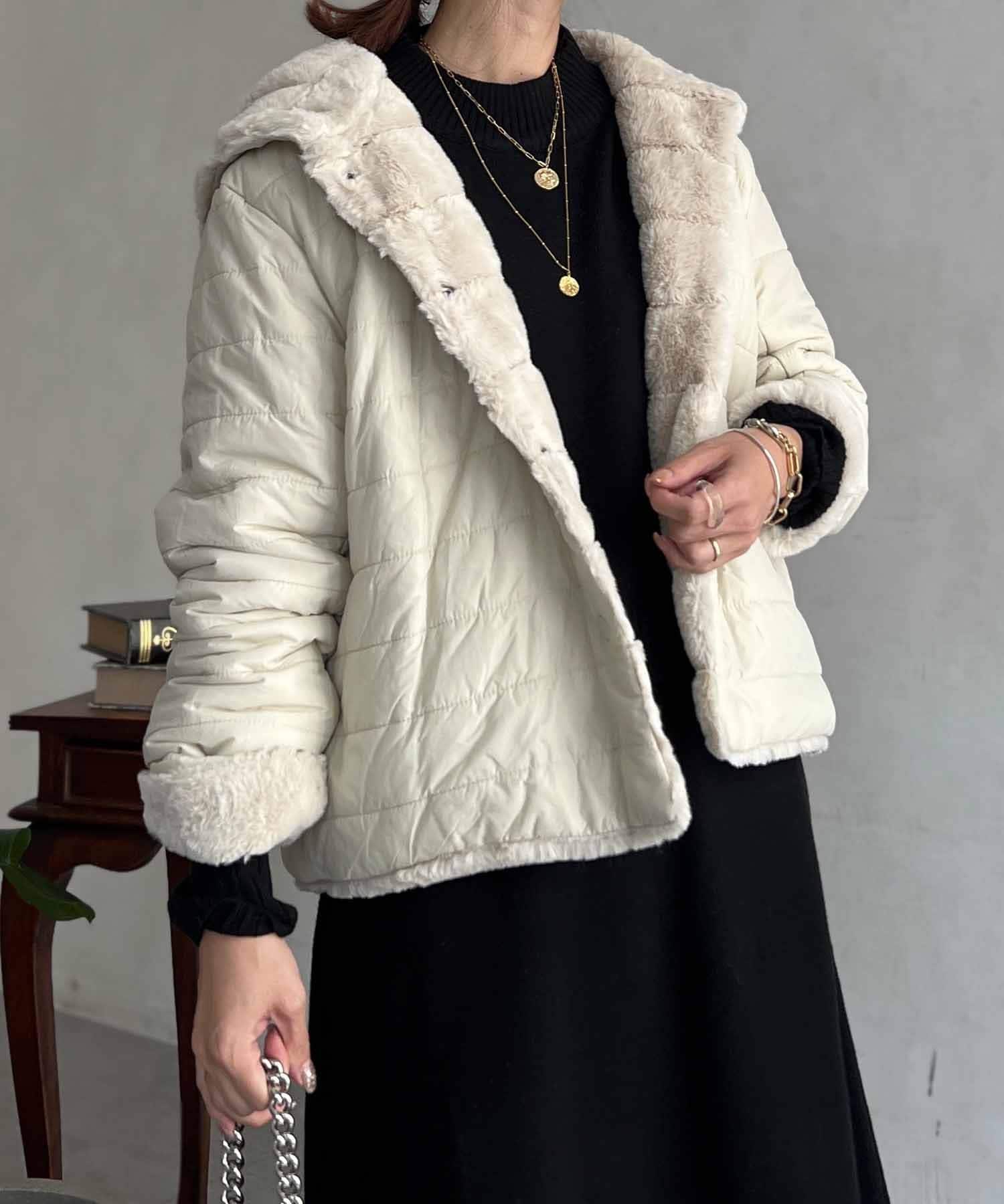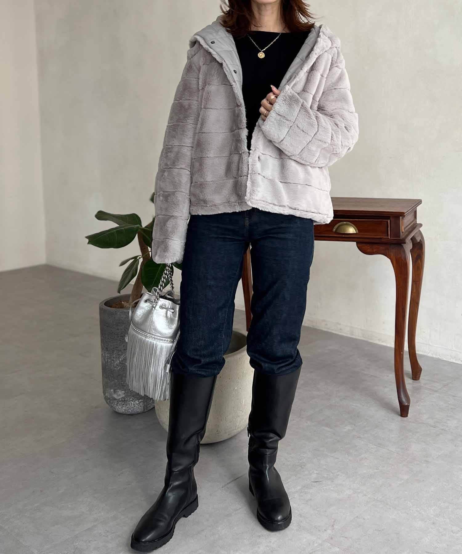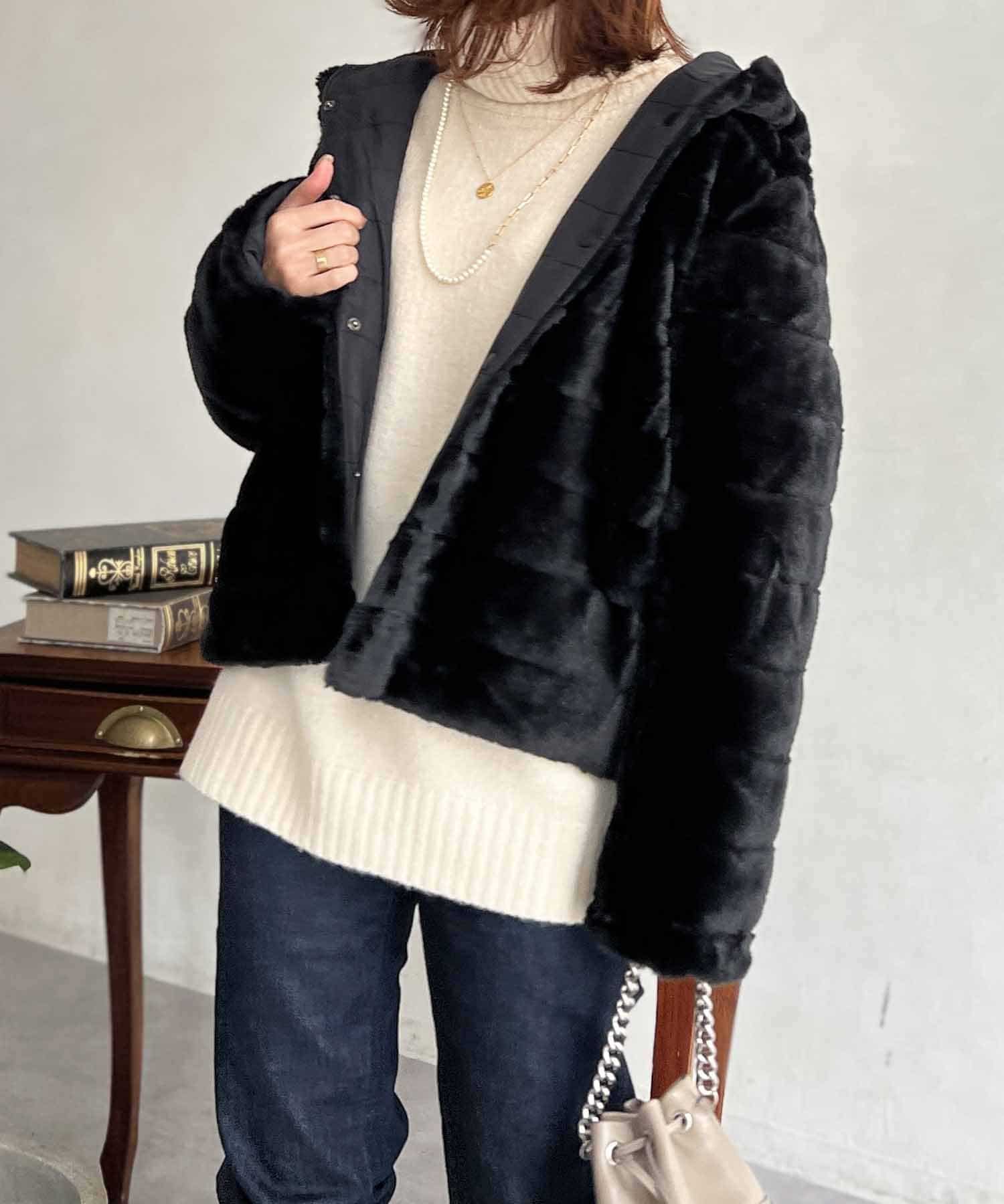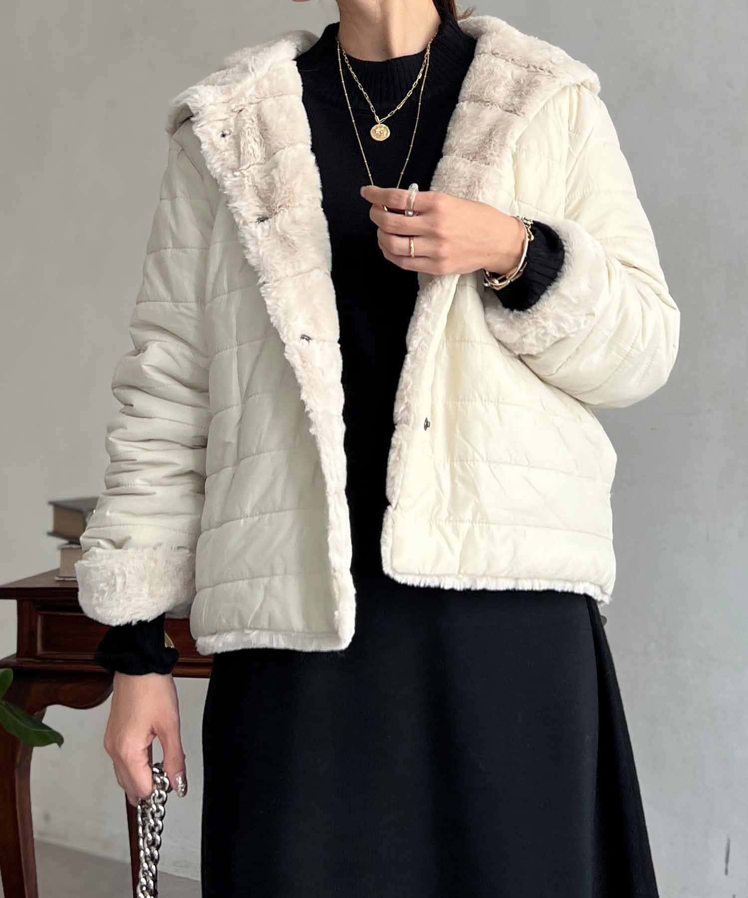 フェイクファーサイドはふわふわとした柔らかな質感が気持ち良く、上品なカジュアルコーデを楽しんでいただけます。