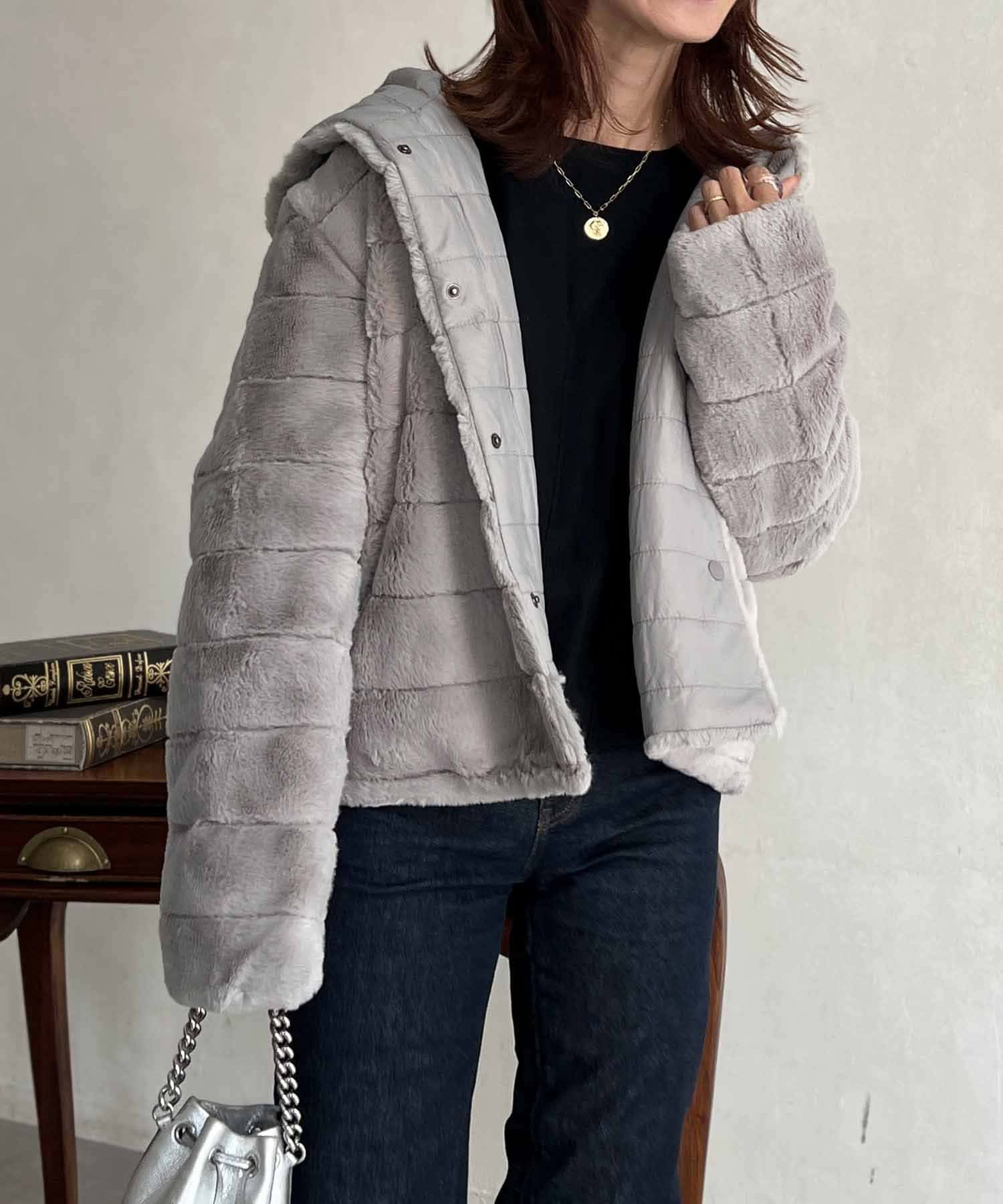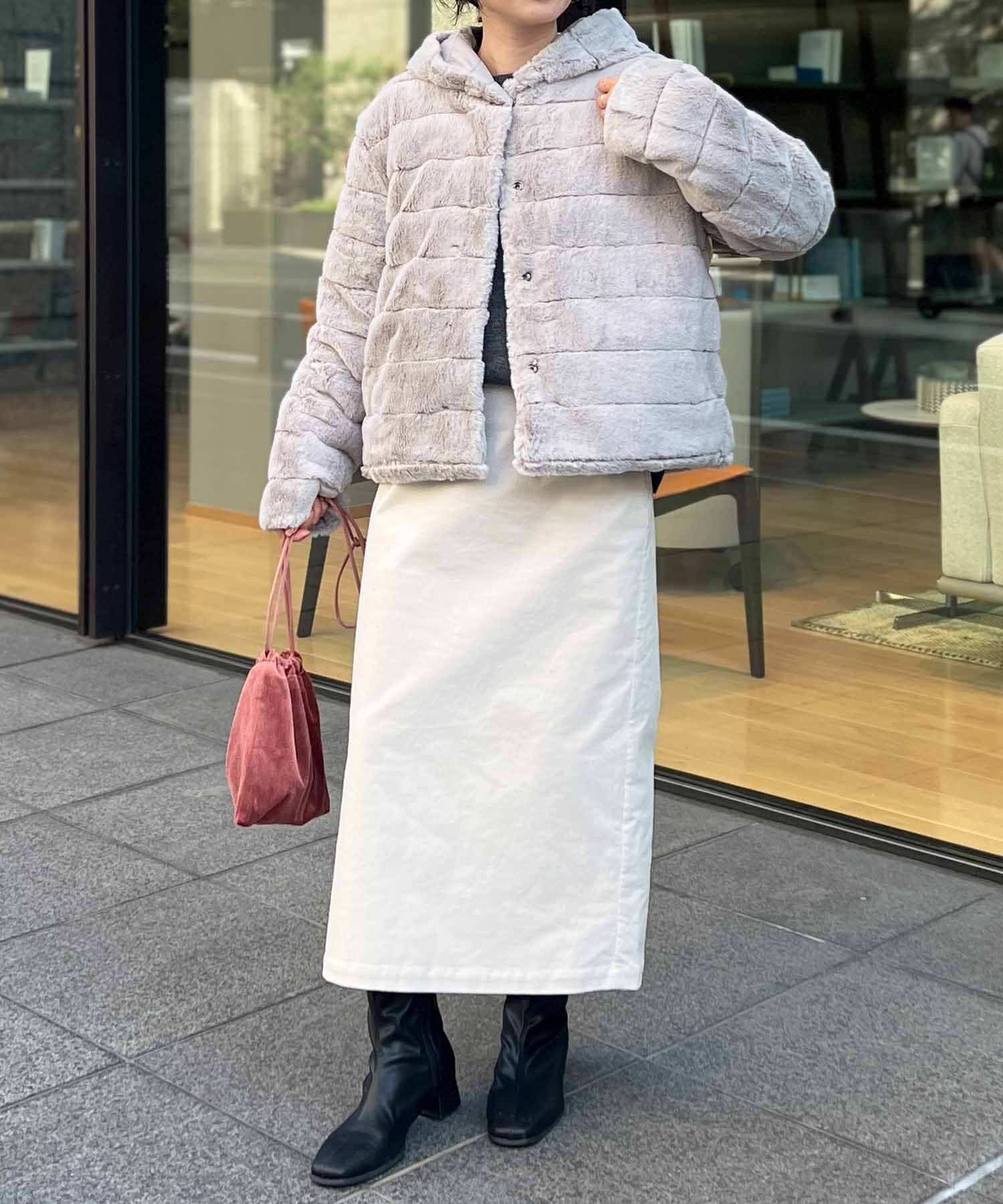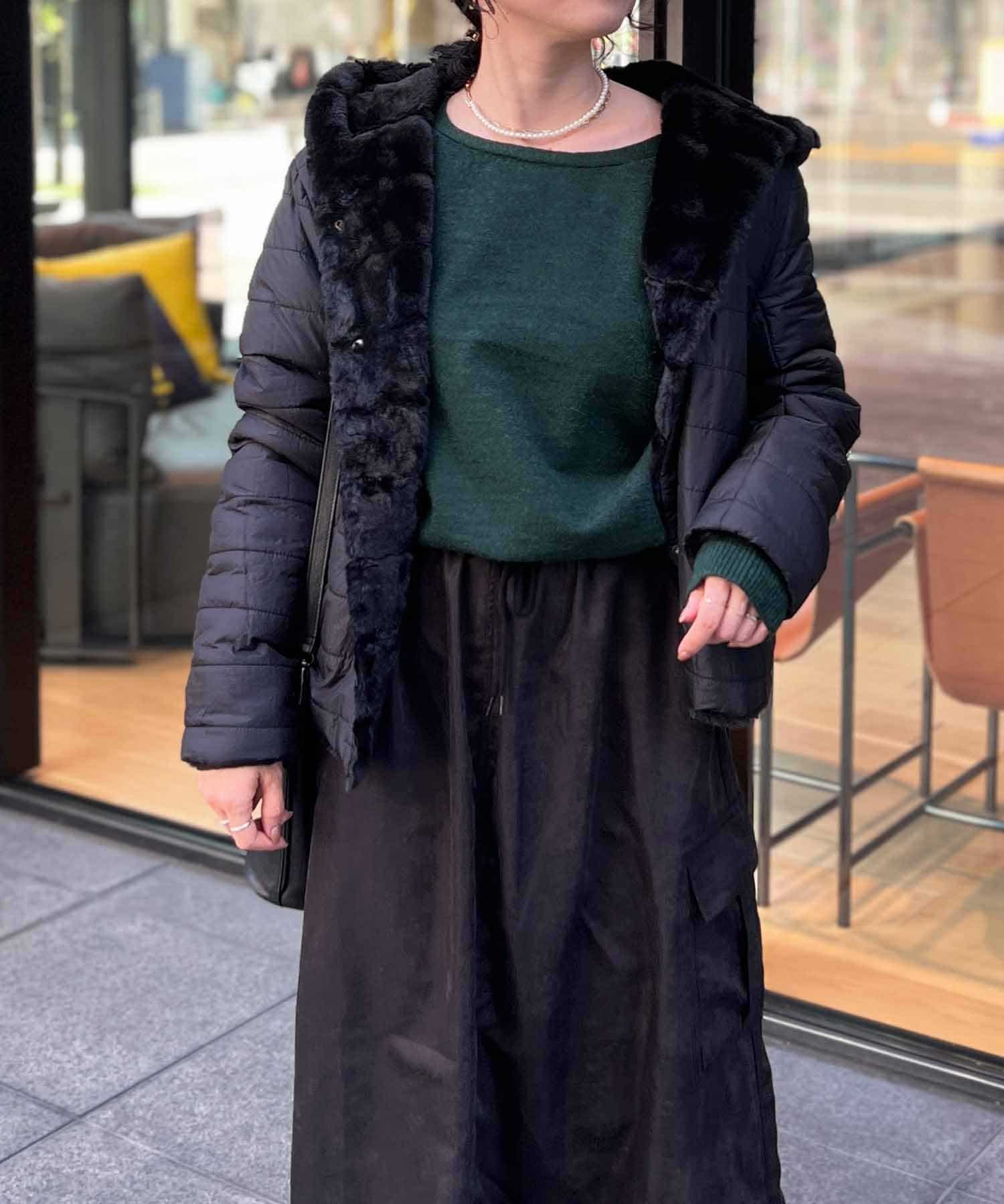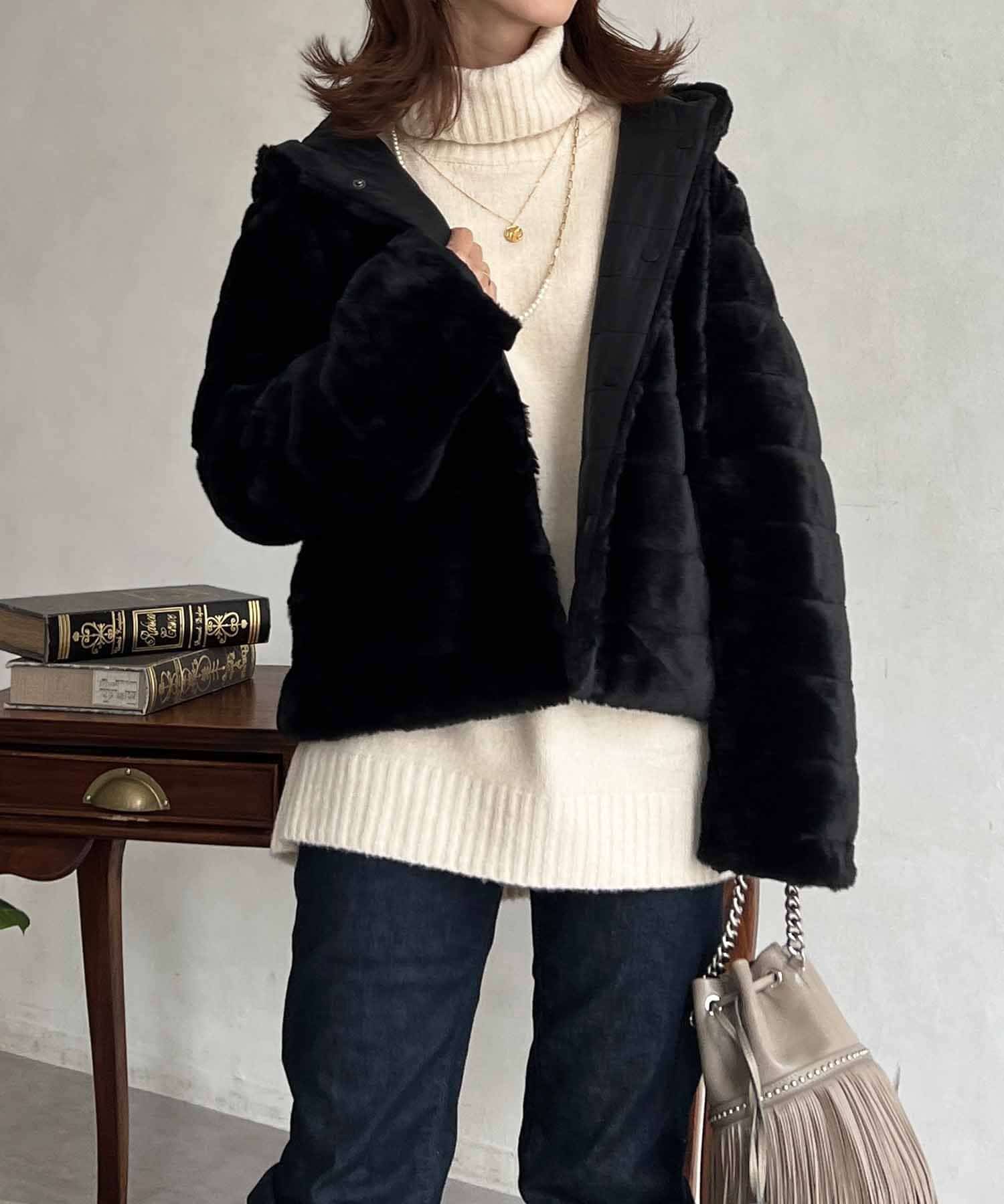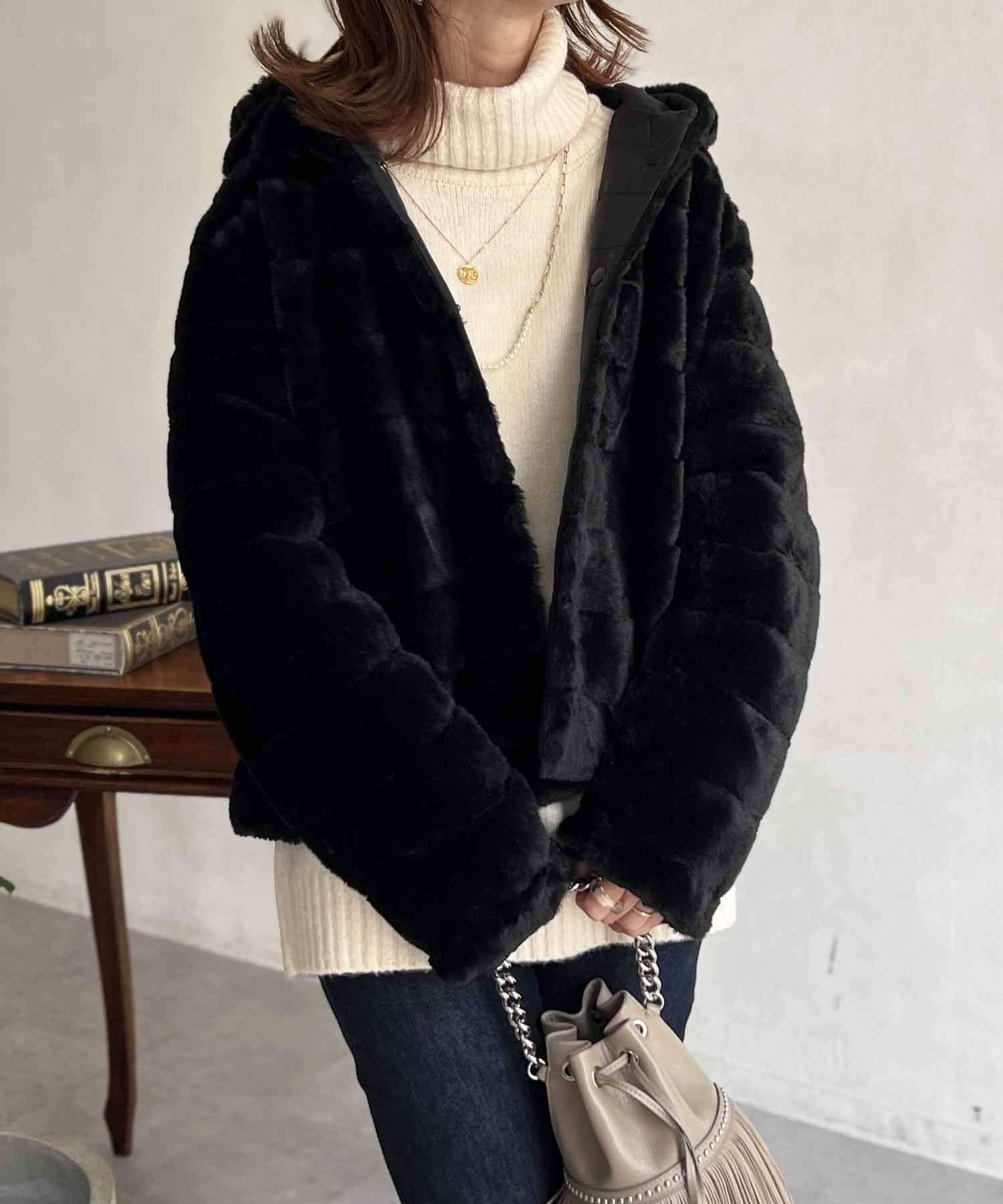 フェイクファーサイドはふわふわとした柔らかな質感が気持ち良く、上品なカジュアルコーデを楽しんでいただけます。
