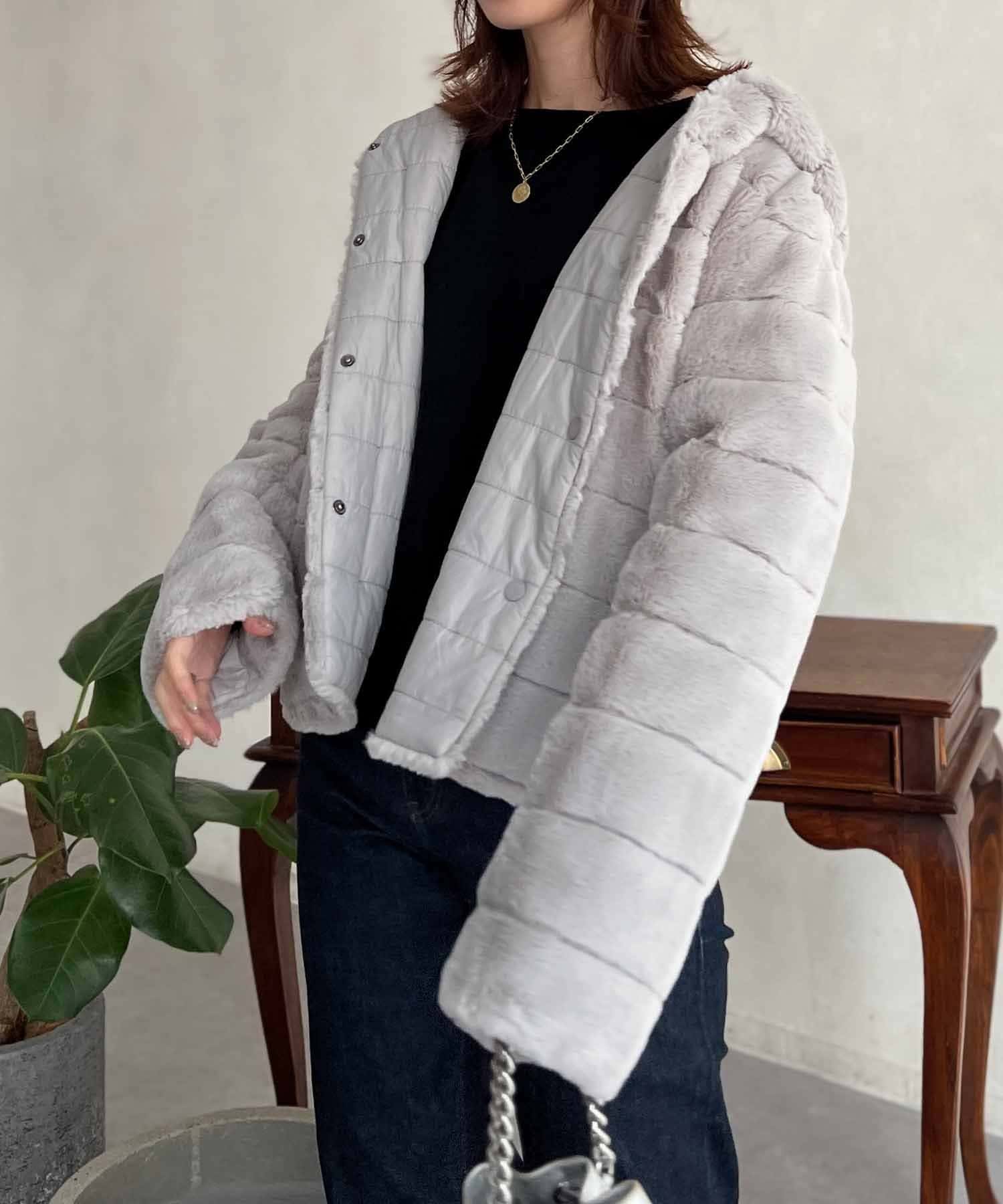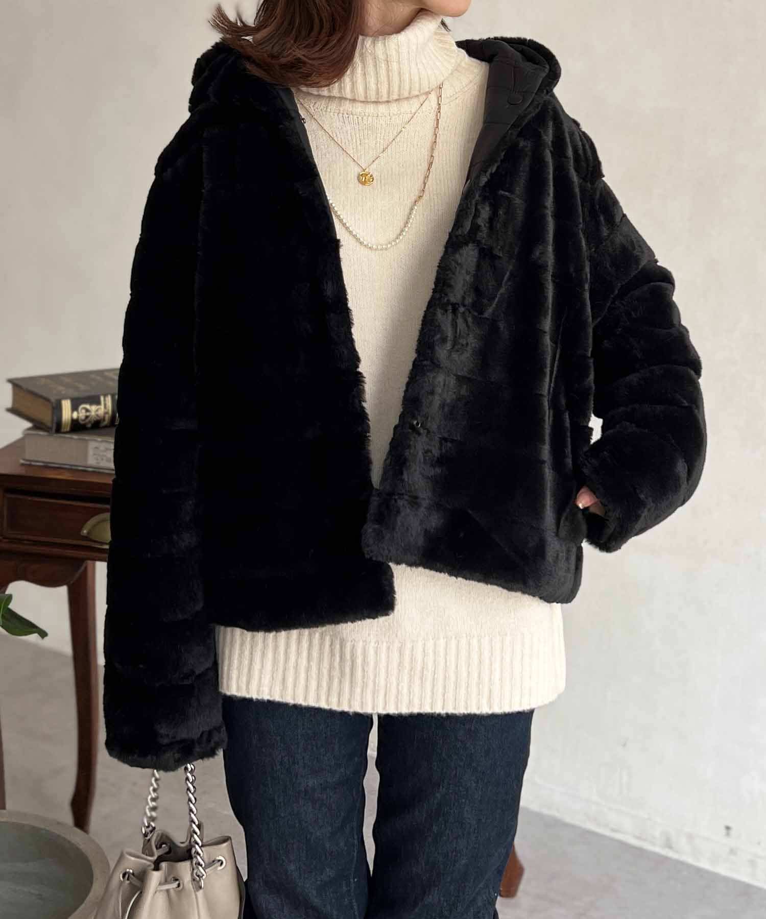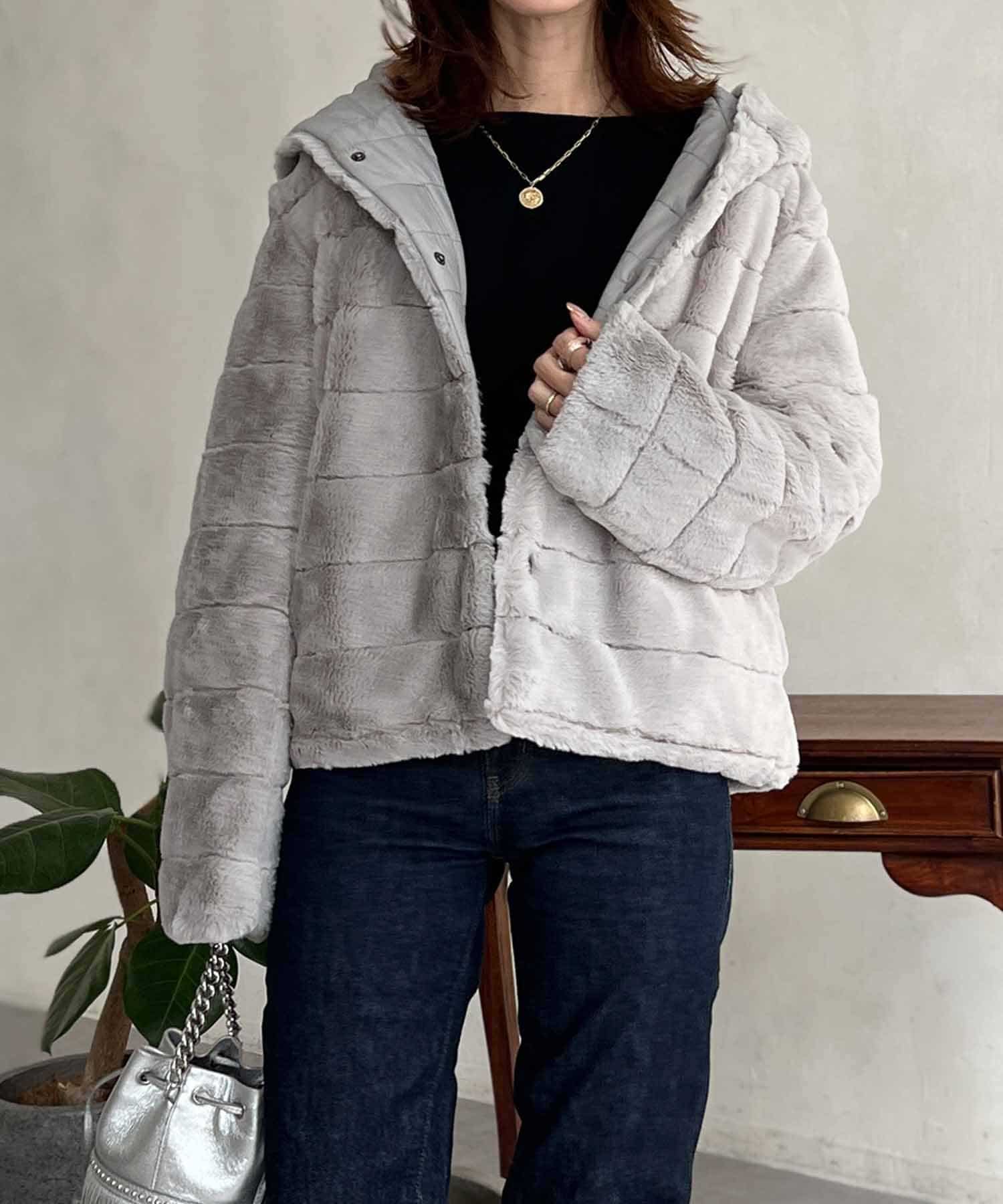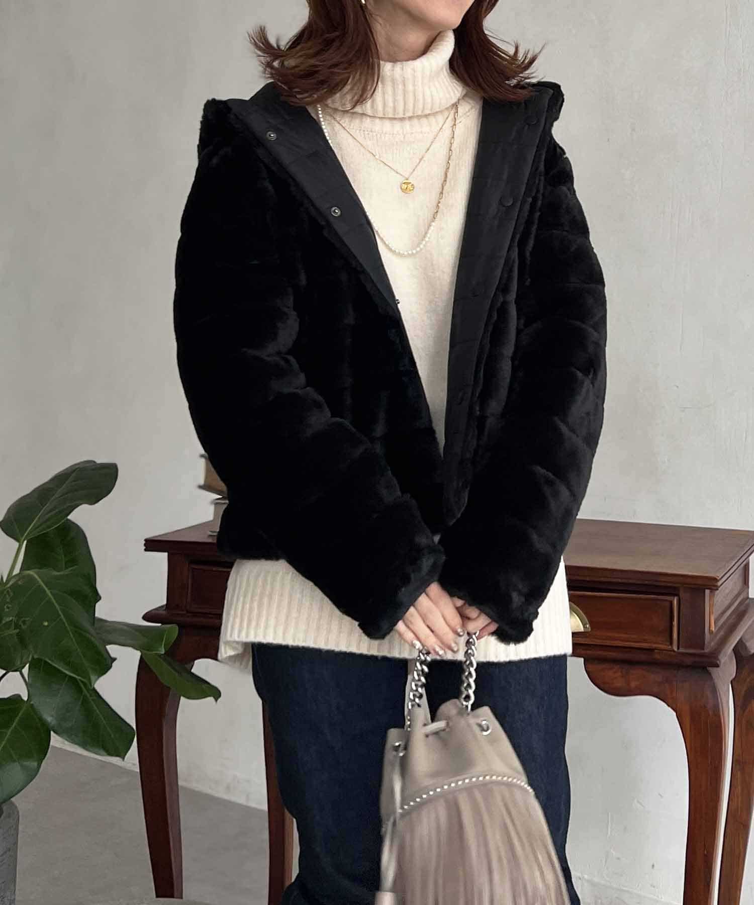 フェイクファーサイドはふわふわとした柔らかな質感が気持ち良く、上品なカジュアルコーデを楽しんでいただけます。