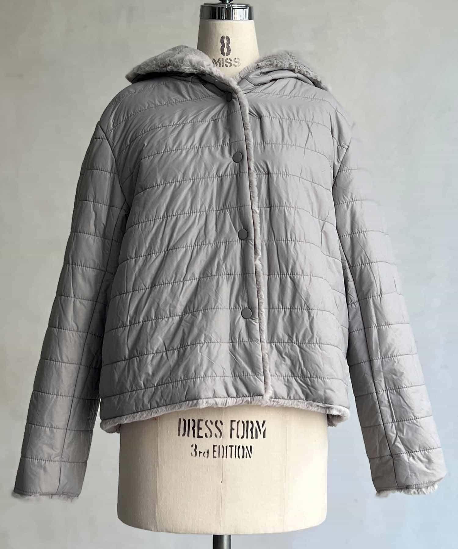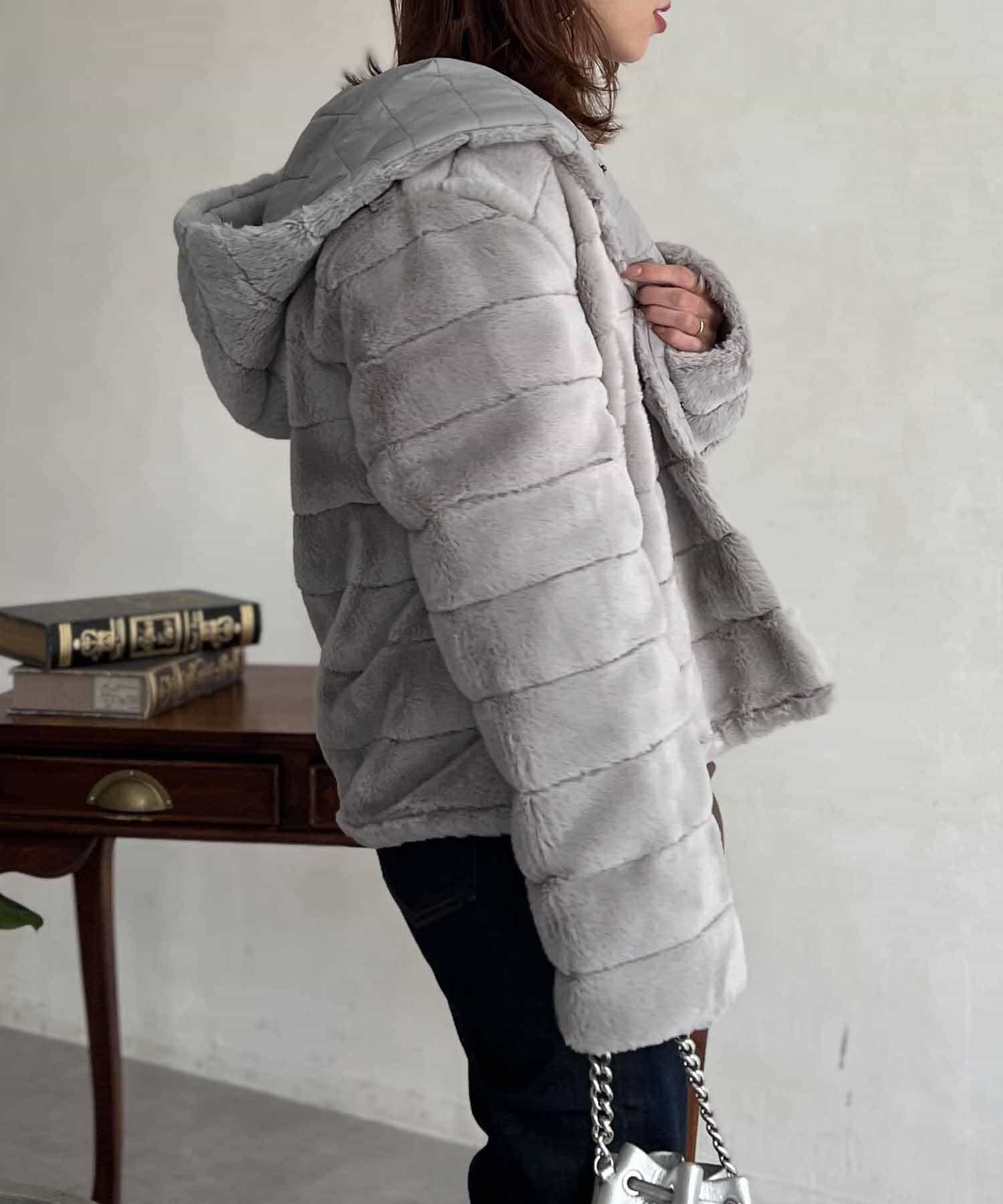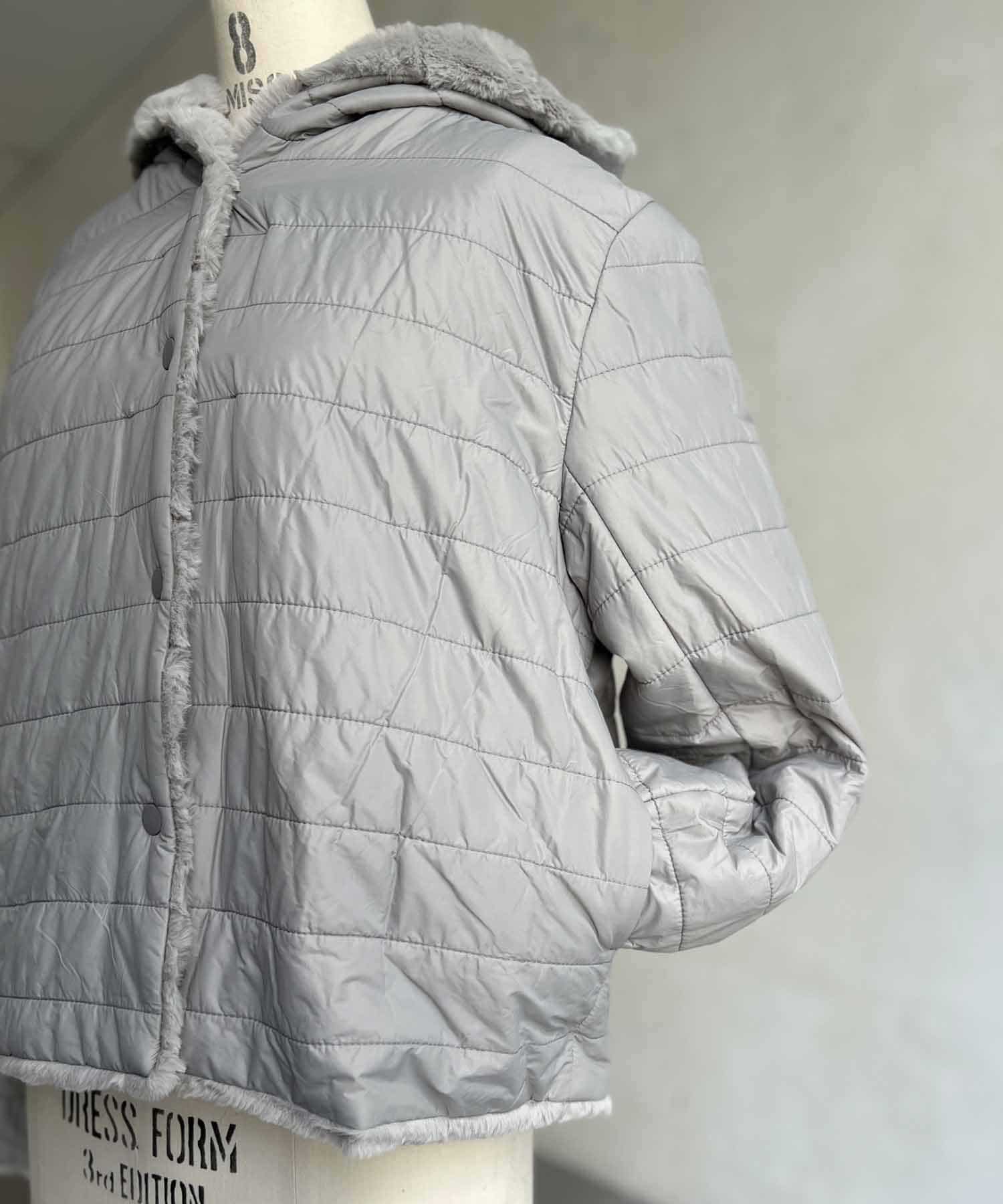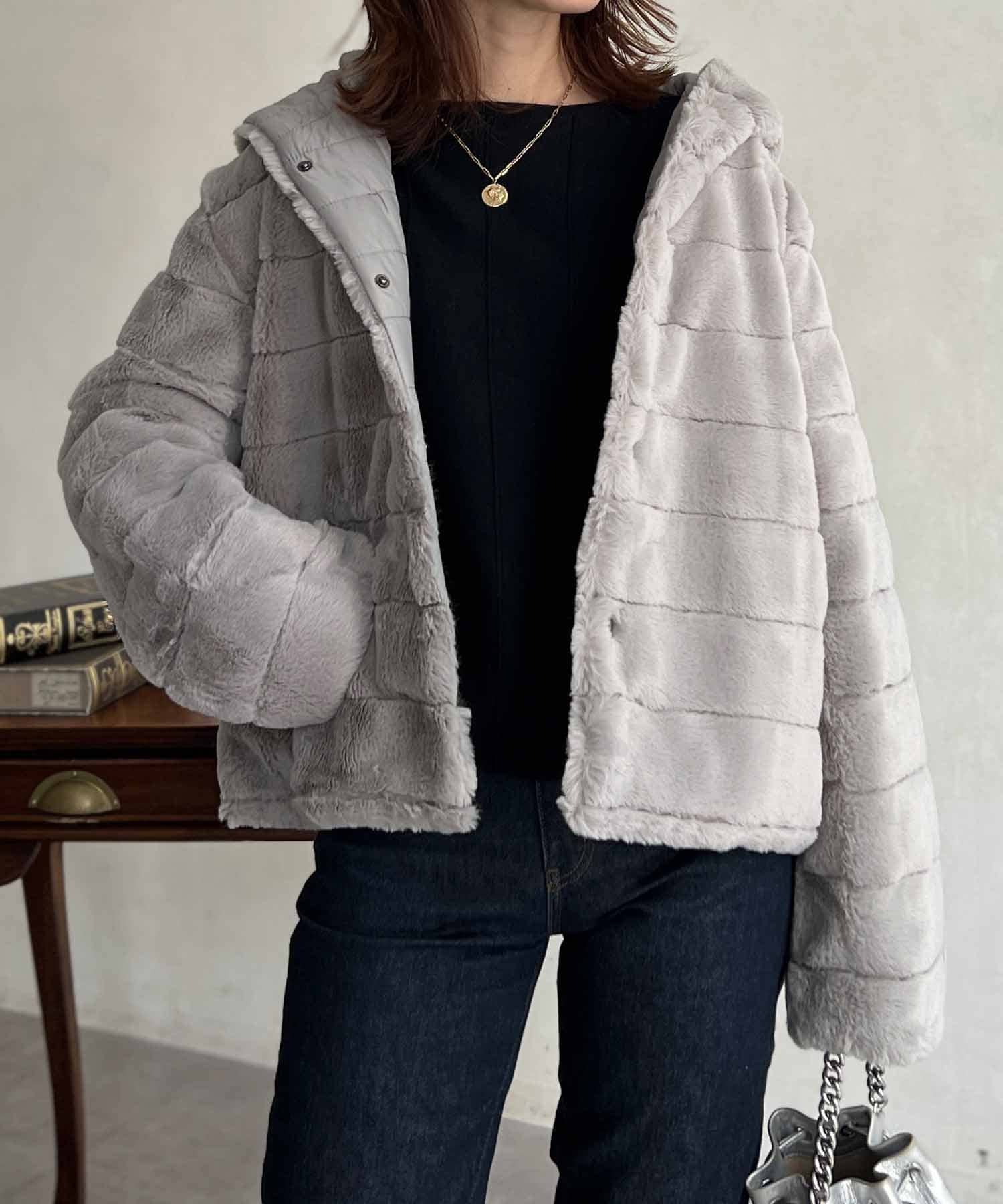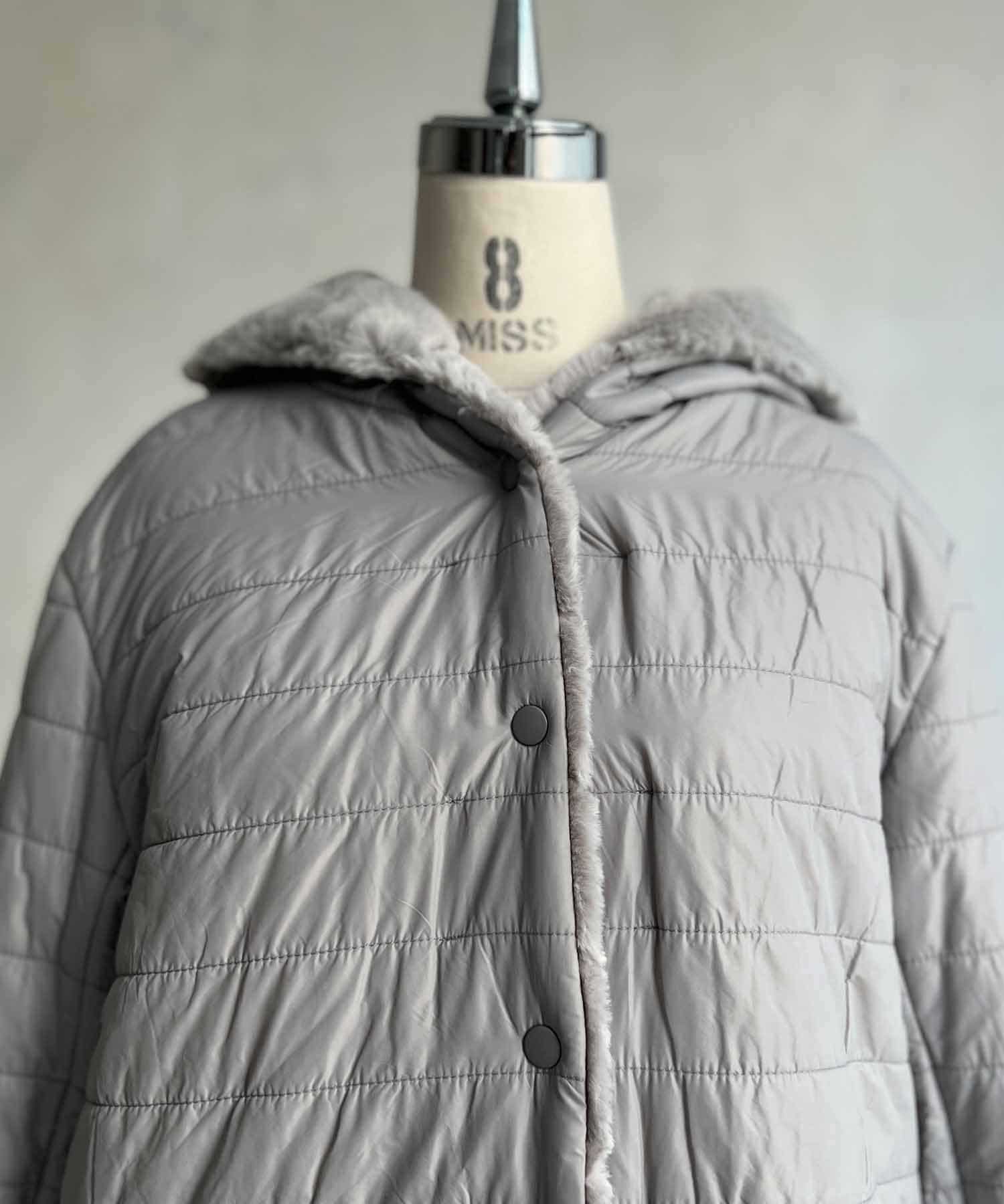 フェイクファーサイドはふわふわとした柔らかな質感が気持ち良く、上品なカジュアルコーデを楽しんでいただけます。