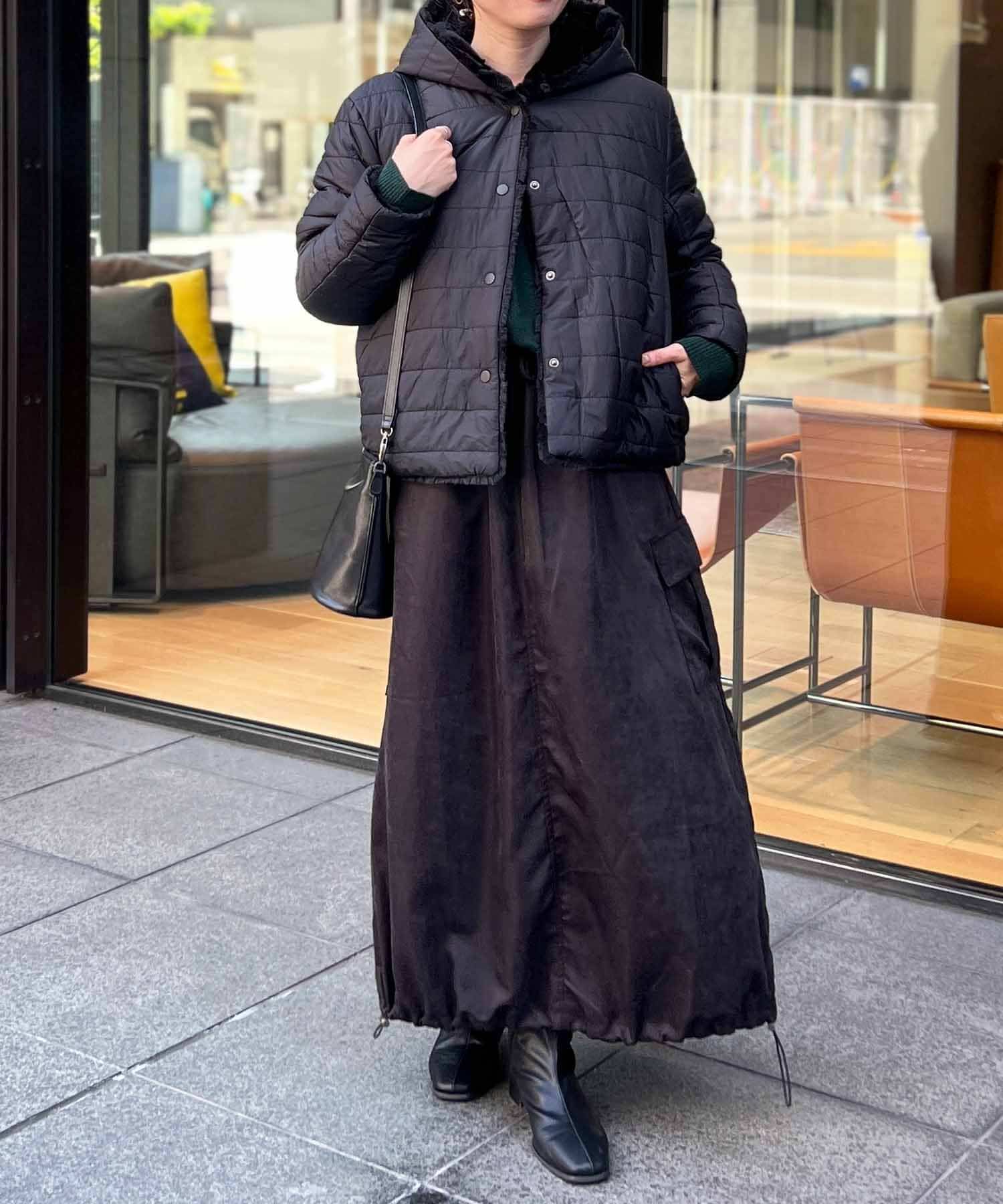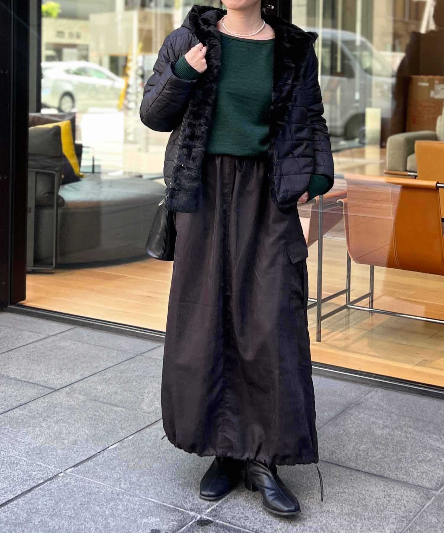 身幅がゆったりとしたシルエットなので、厚手のニットやドルマンシルエットのトップスにも合わせやすく真冬も羽織っていただけます。