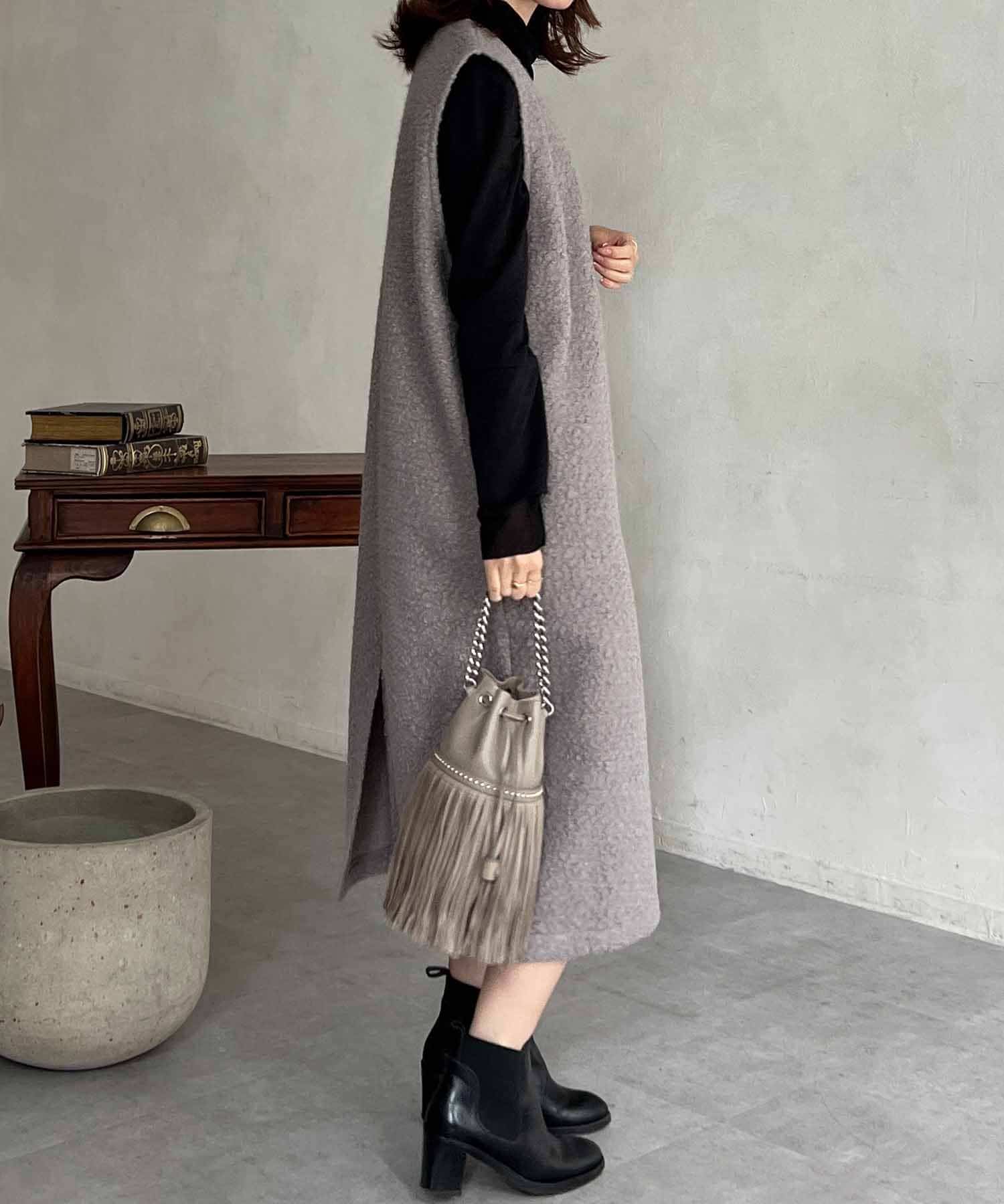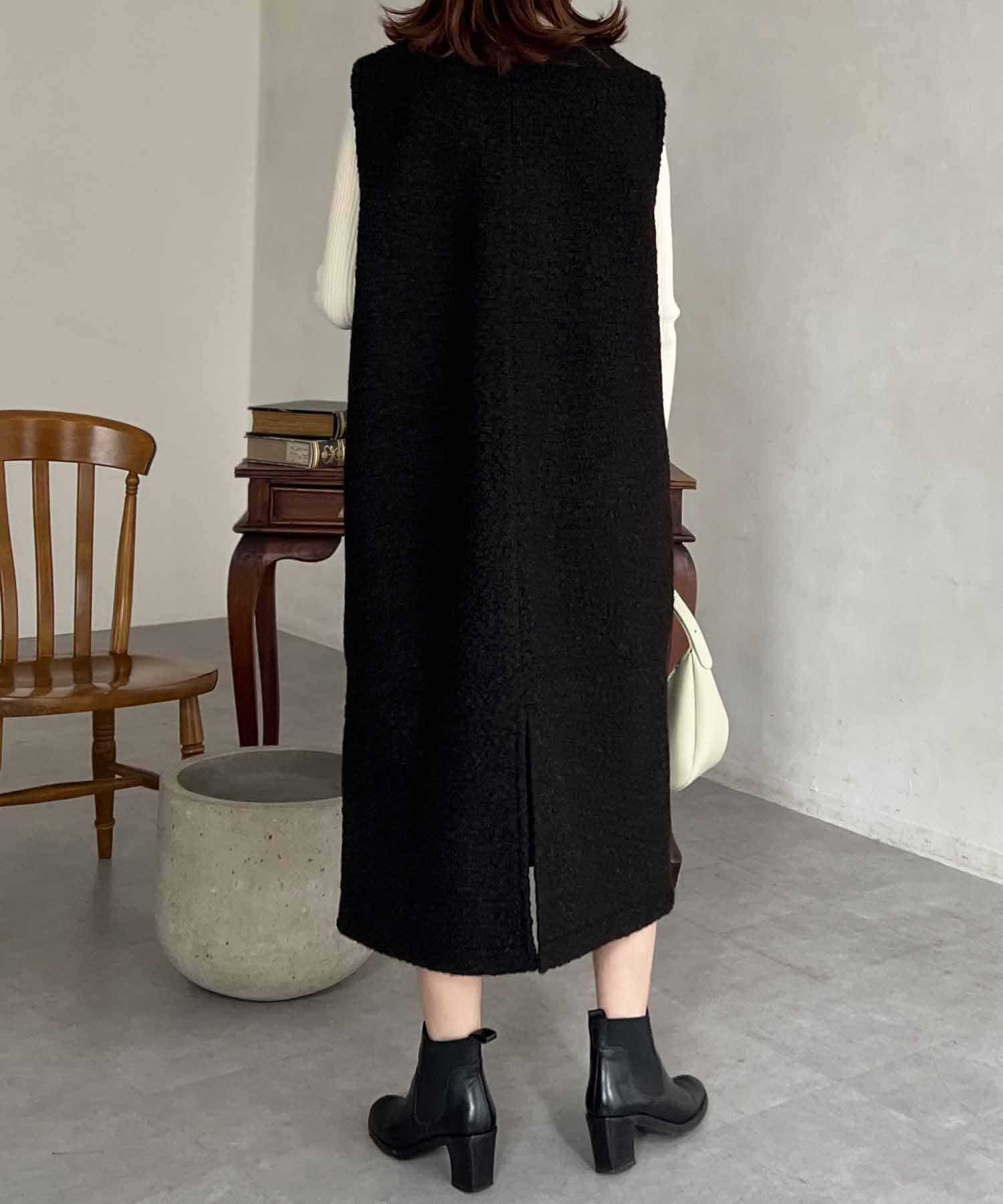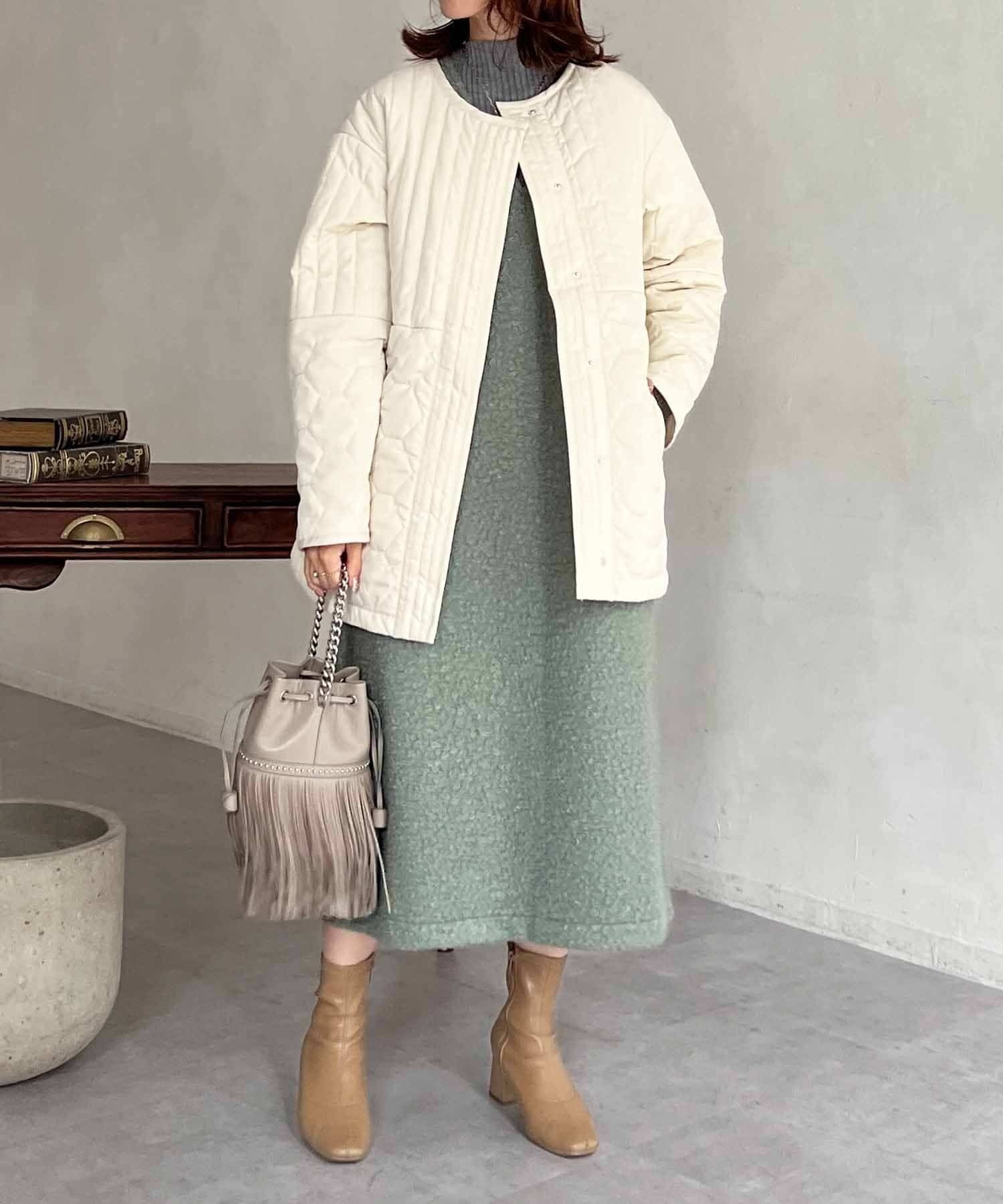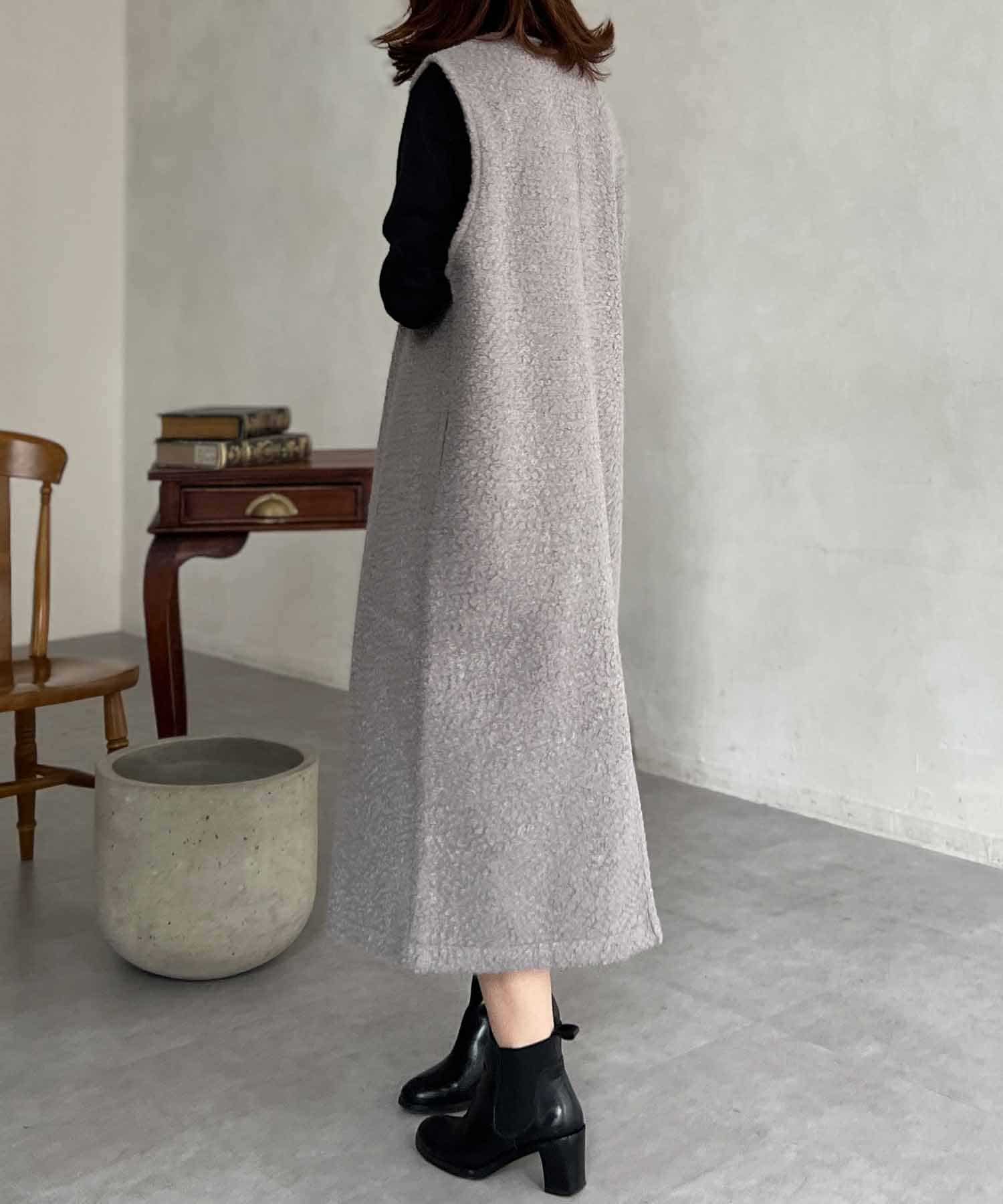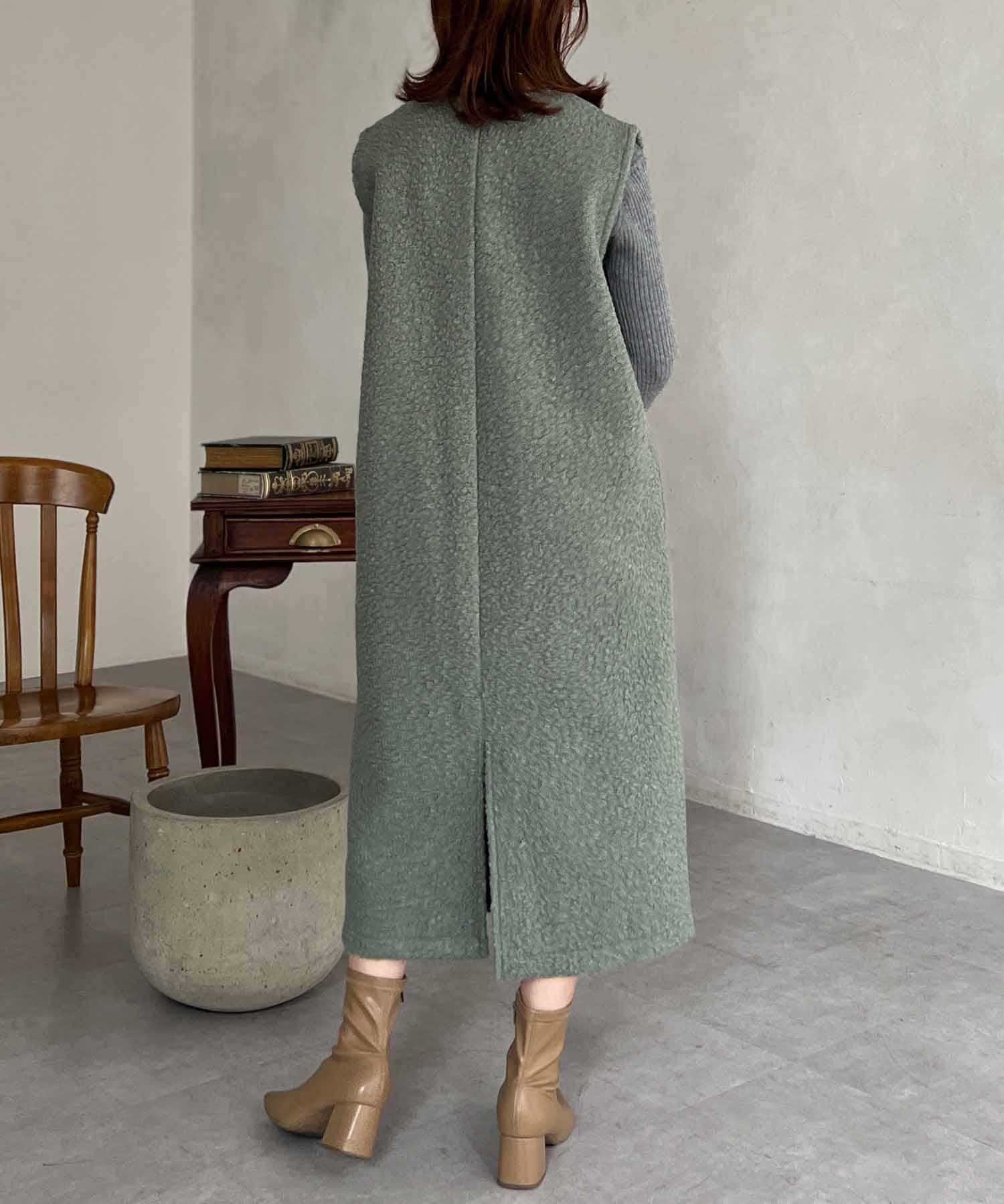 特徴的なもこもこのブークレ素材ポイントのジャンスカワンピース。