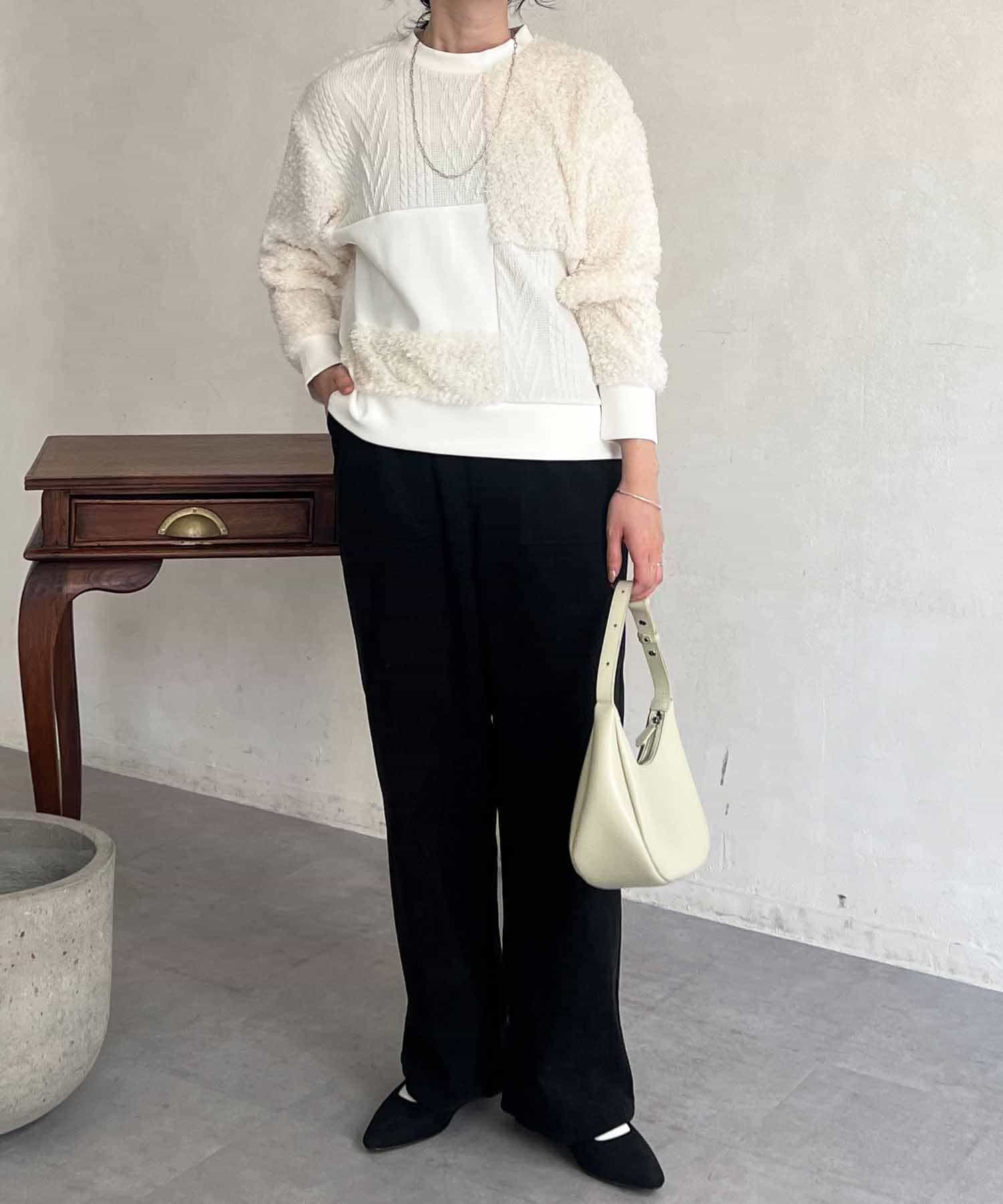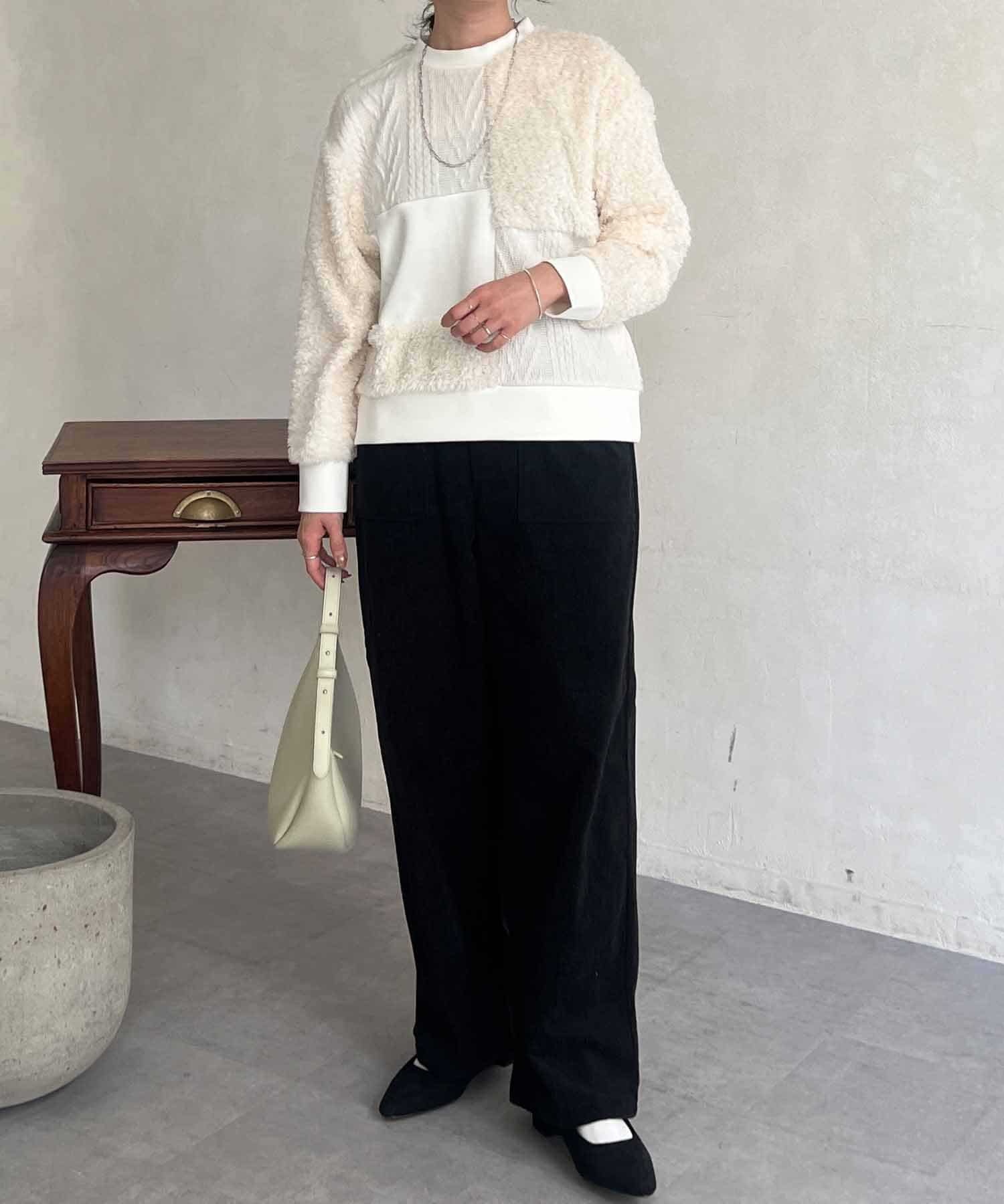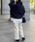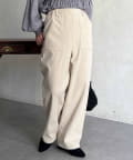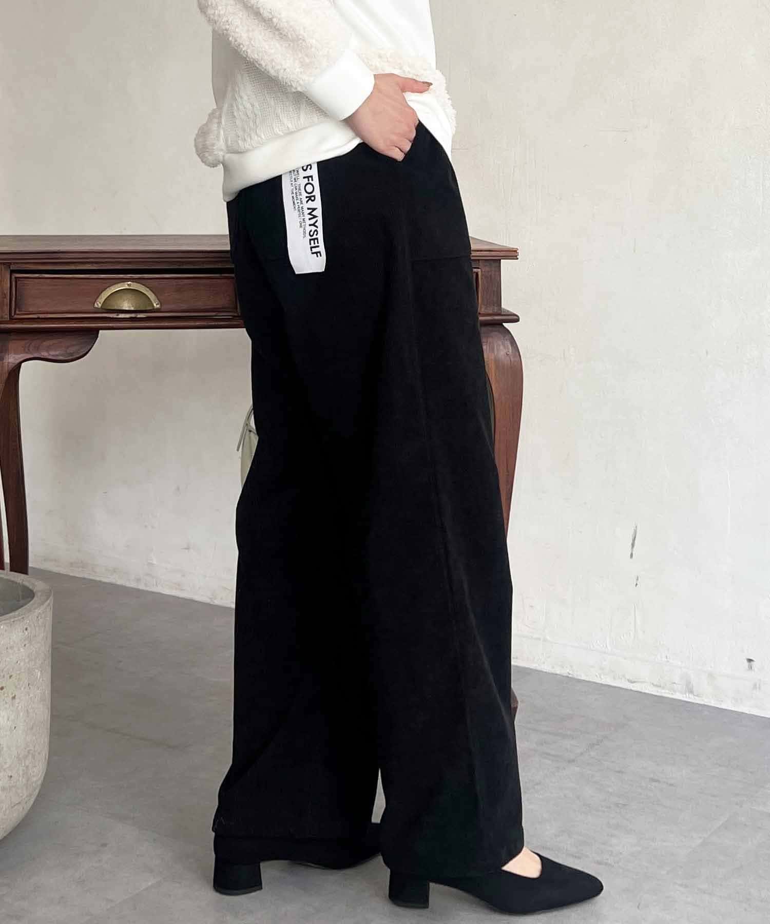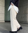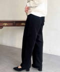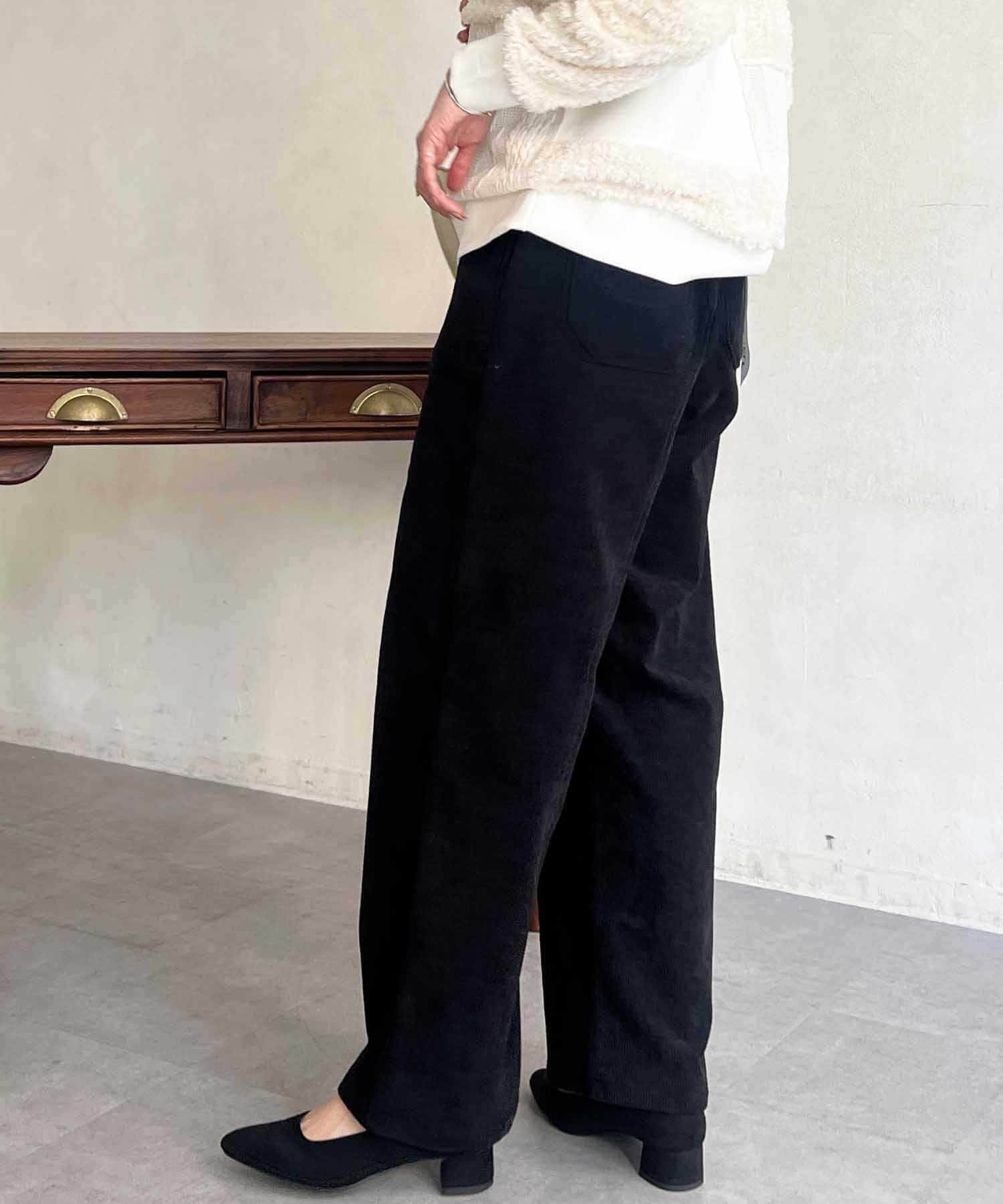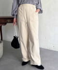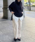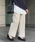やや伸縮性のある素材感が肌当たり良く、ワイドストレートでゆるめのシルエットなので履き心地もばっちり◎