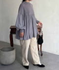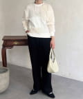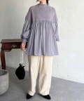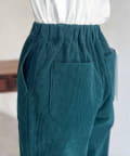 ウエストはフロント部分以外ゴム仕様なので、楽ちんなのにウエスト周りにボリュームを持たせずすっきりとした印象に。