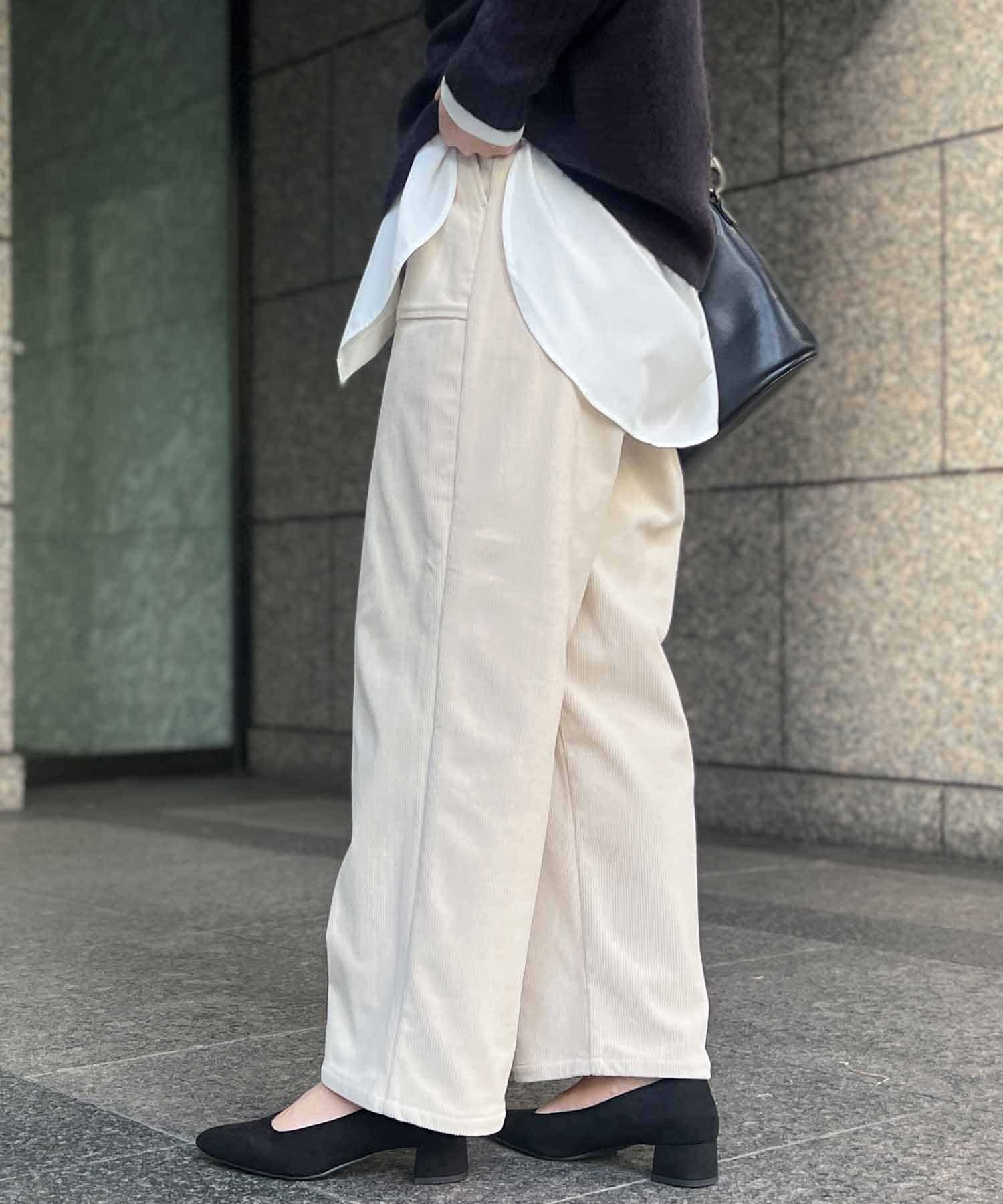 カジュアル見えするコーデュロイのベイカーパンツが裏起毛になって新登場!