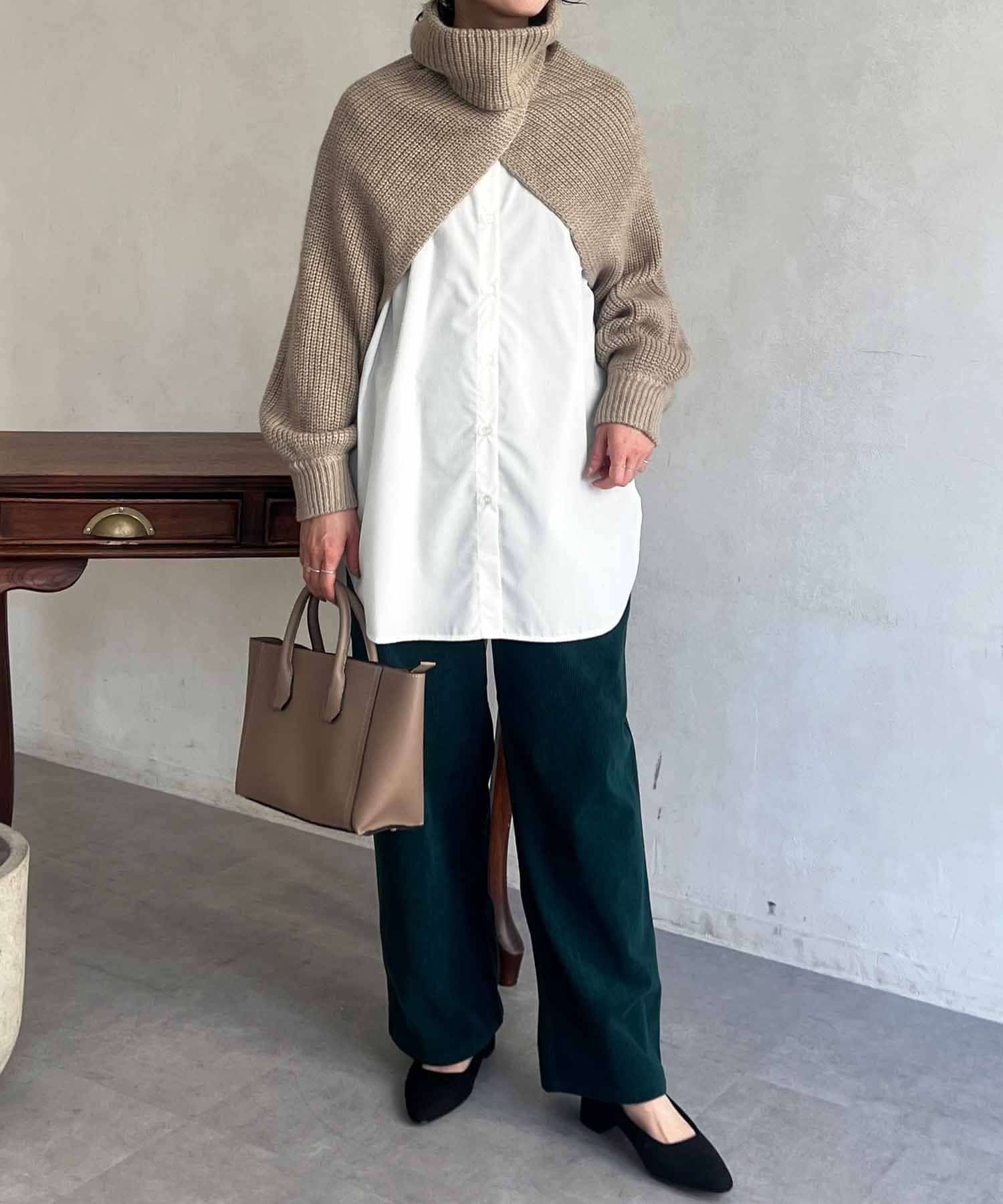 ニットでラフなコーデにも、シャツやブラウスできれいめなコーデにも合う冬コーデの強い味方です!