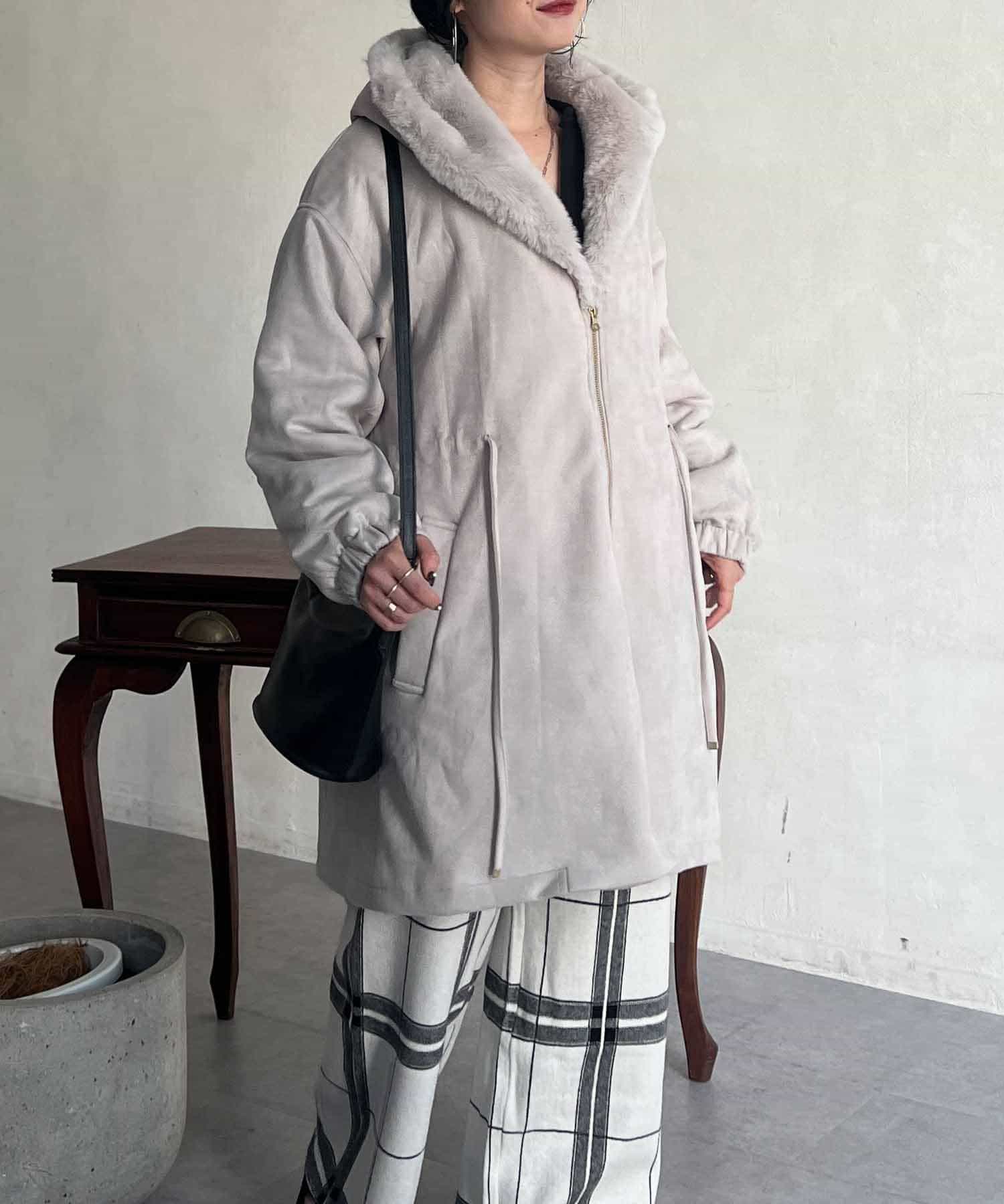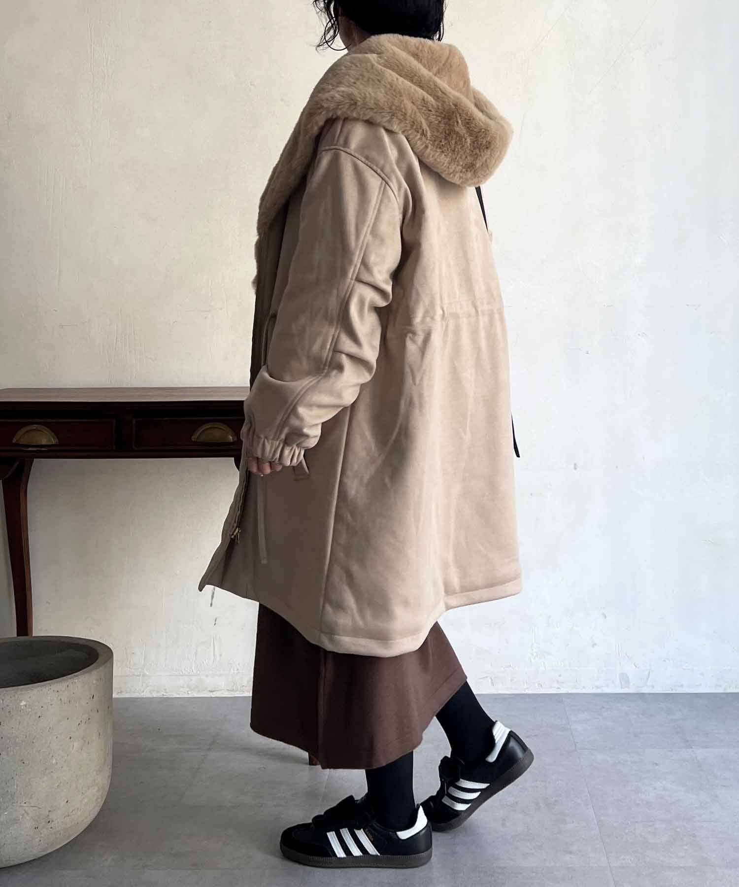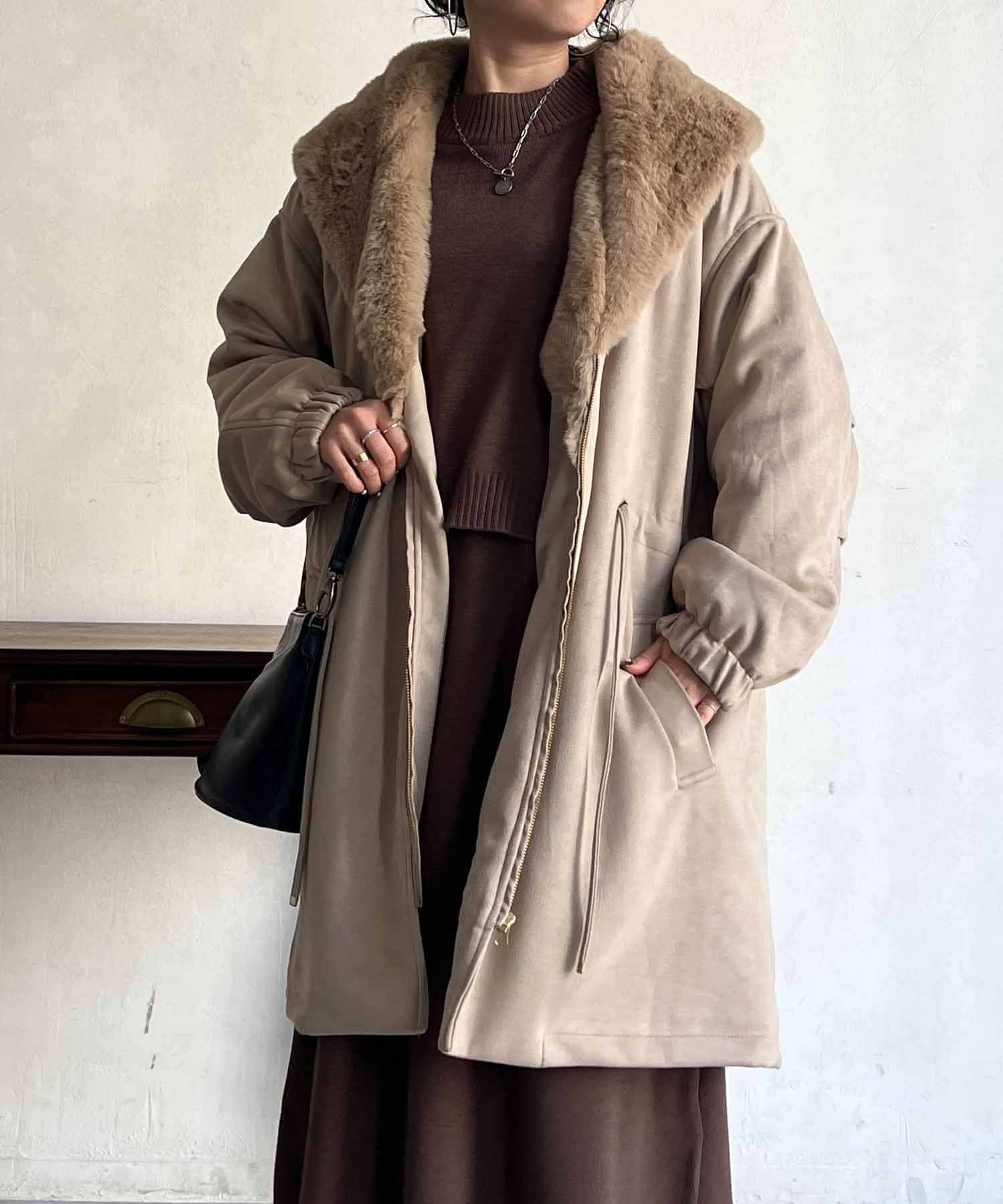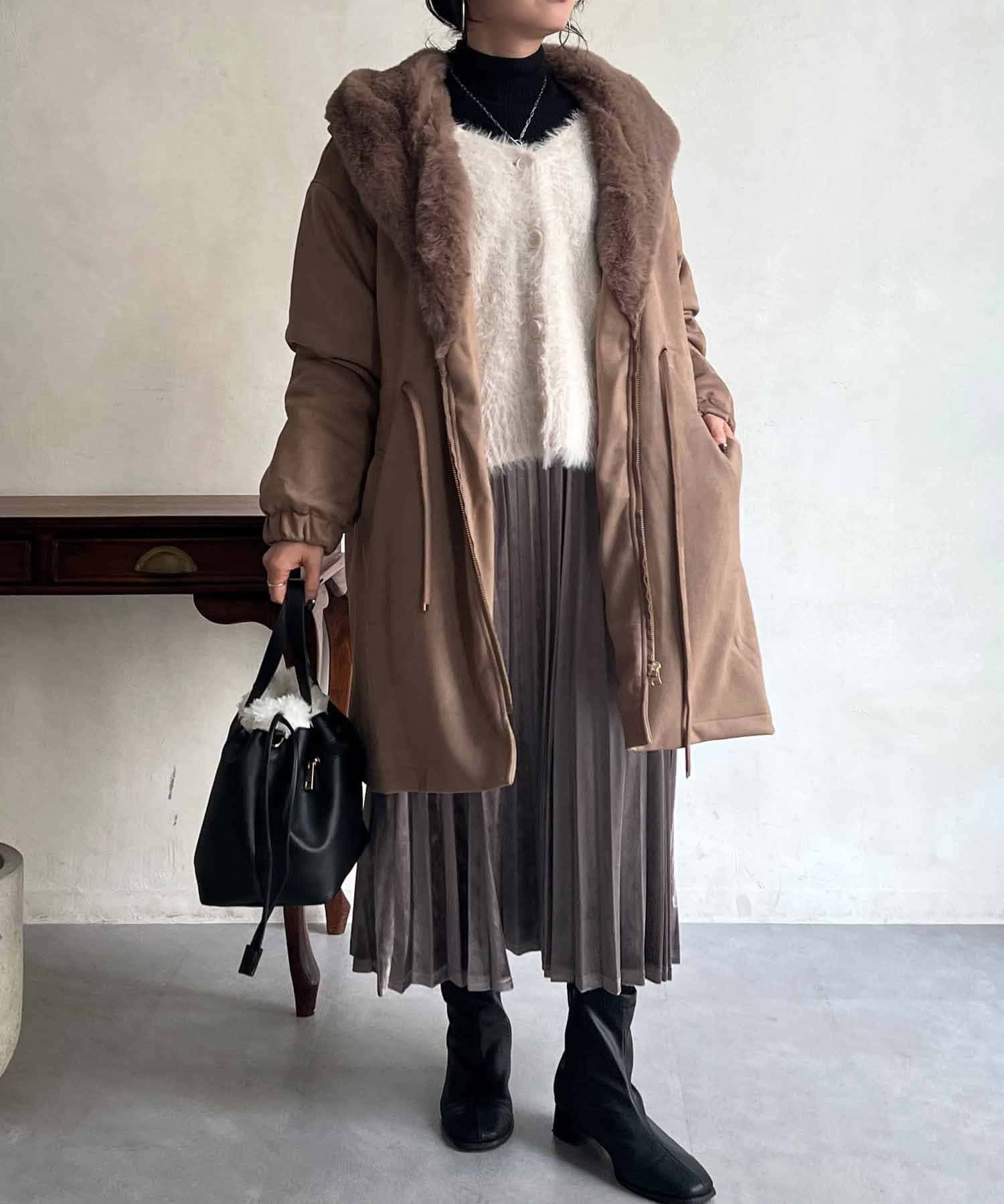 きめ細やかなスエードで上品な印象に仕上げたロングコート。