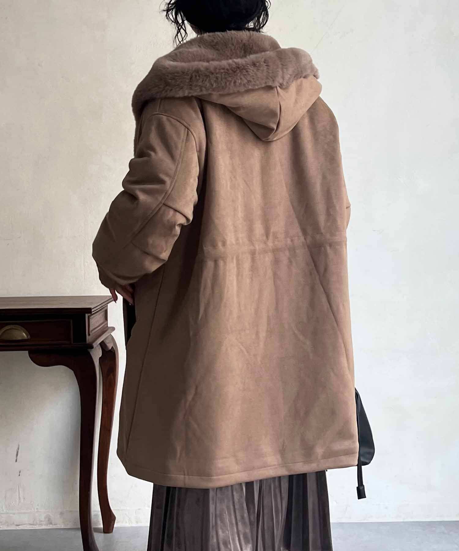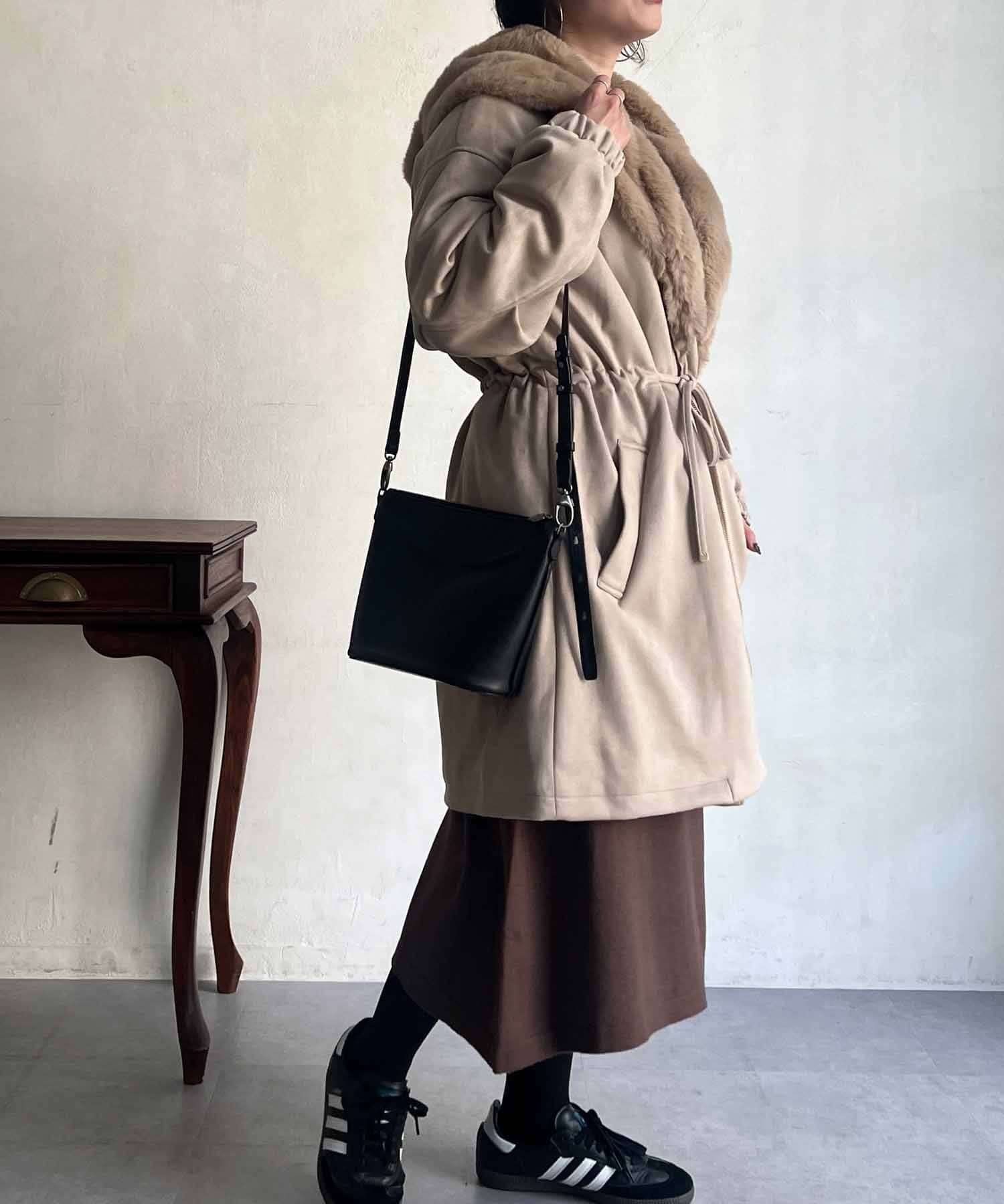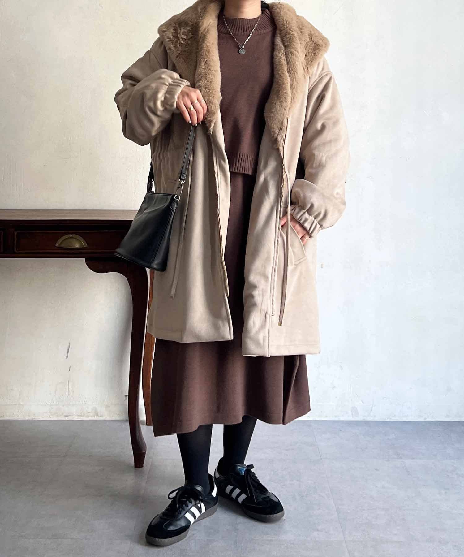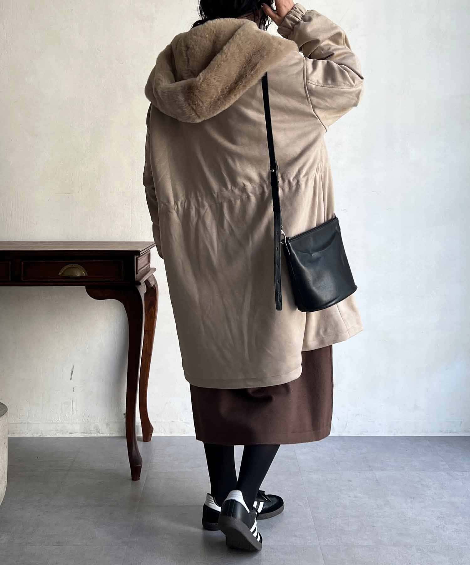 きめ細やかなスエードで上品な印象に仕上げたロングコート。