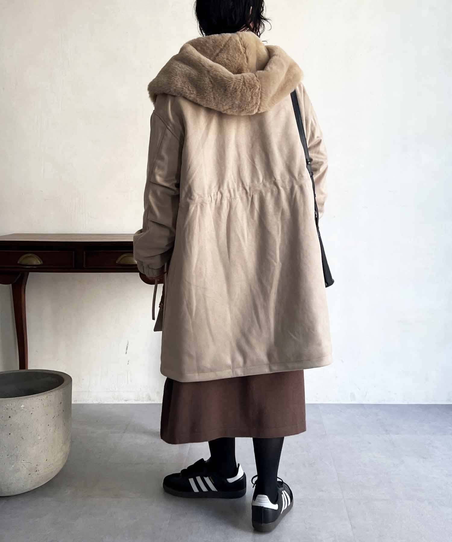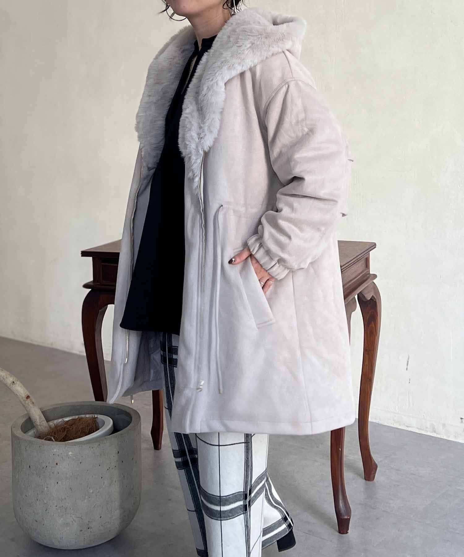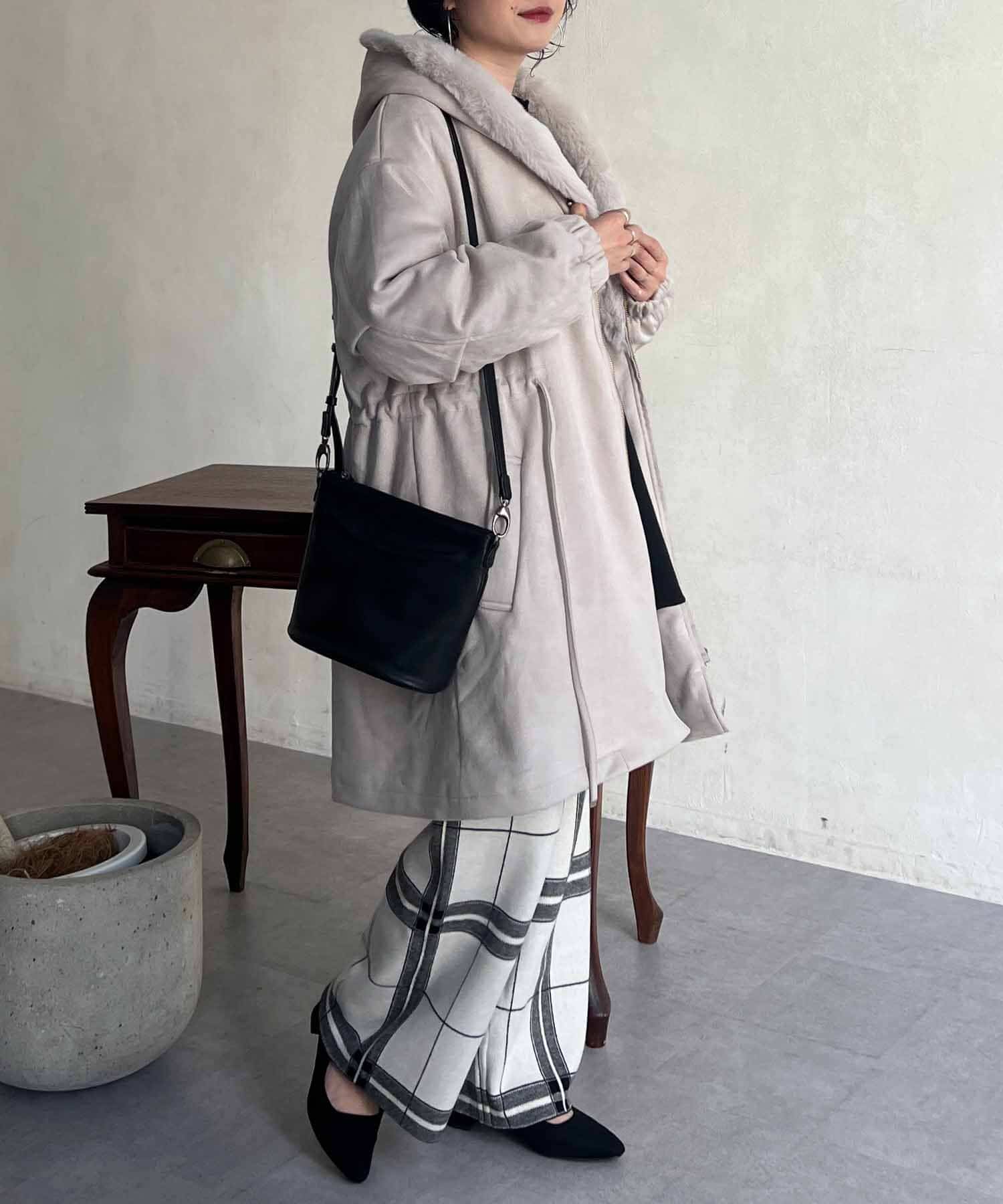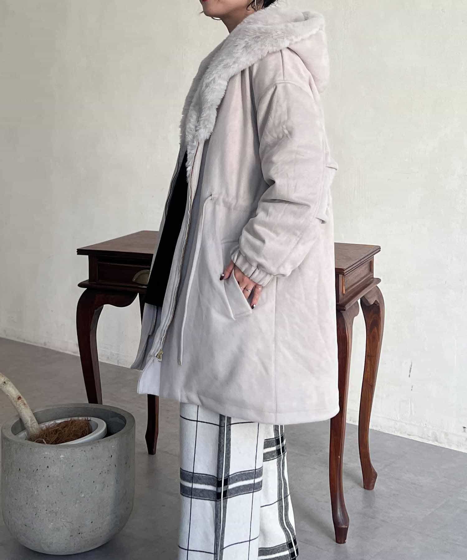 きめ細やかなスエードで上品な印象に仕上げたロングコート。