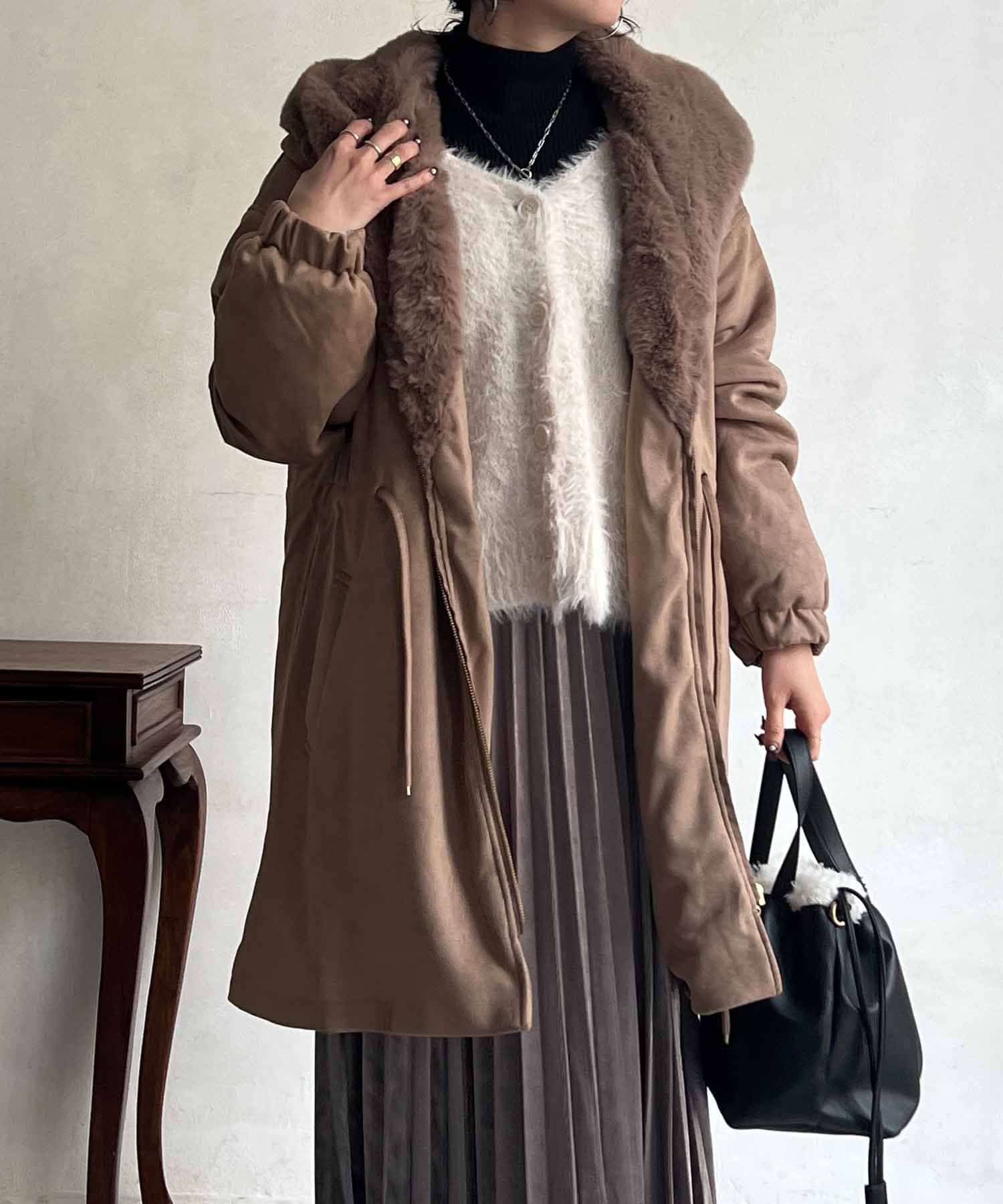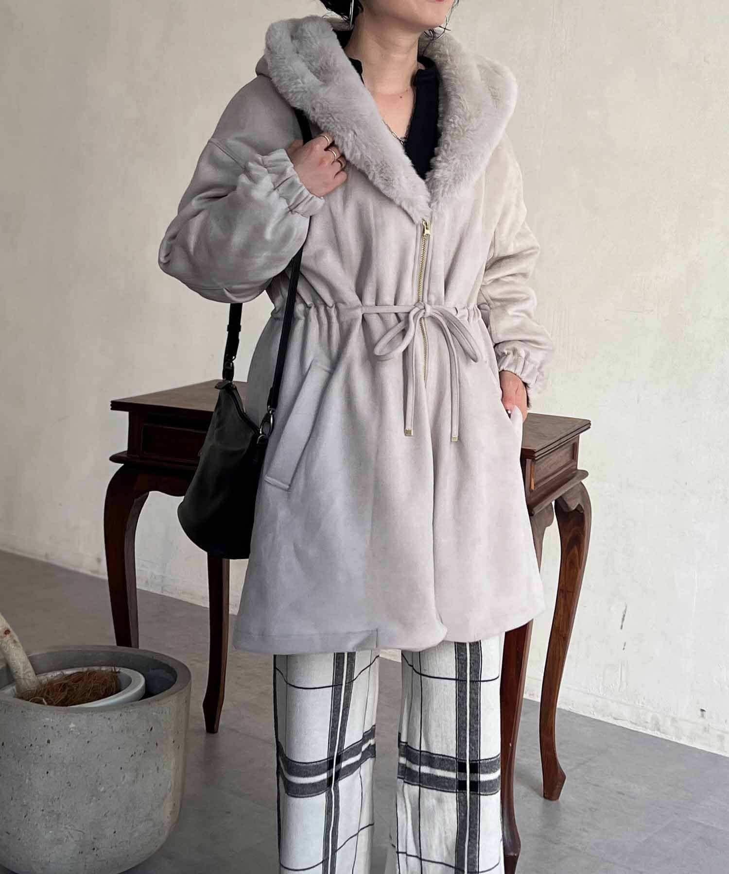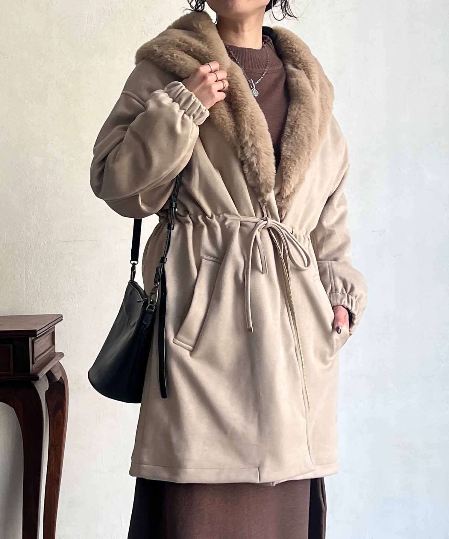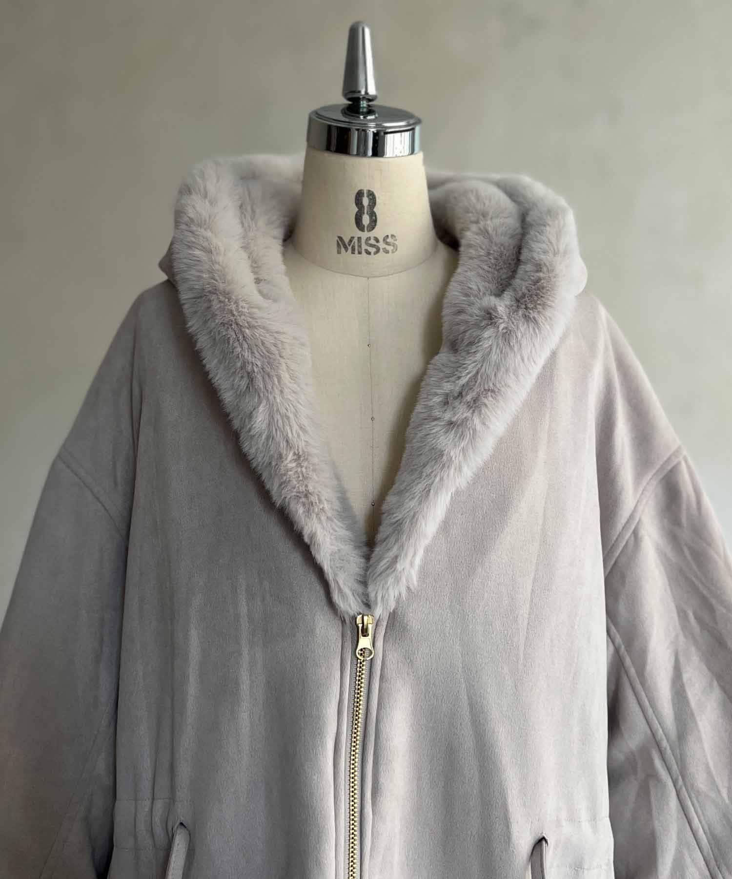 フード裏にはふわふわのファーを施し、華やかな印象をプラスしました。