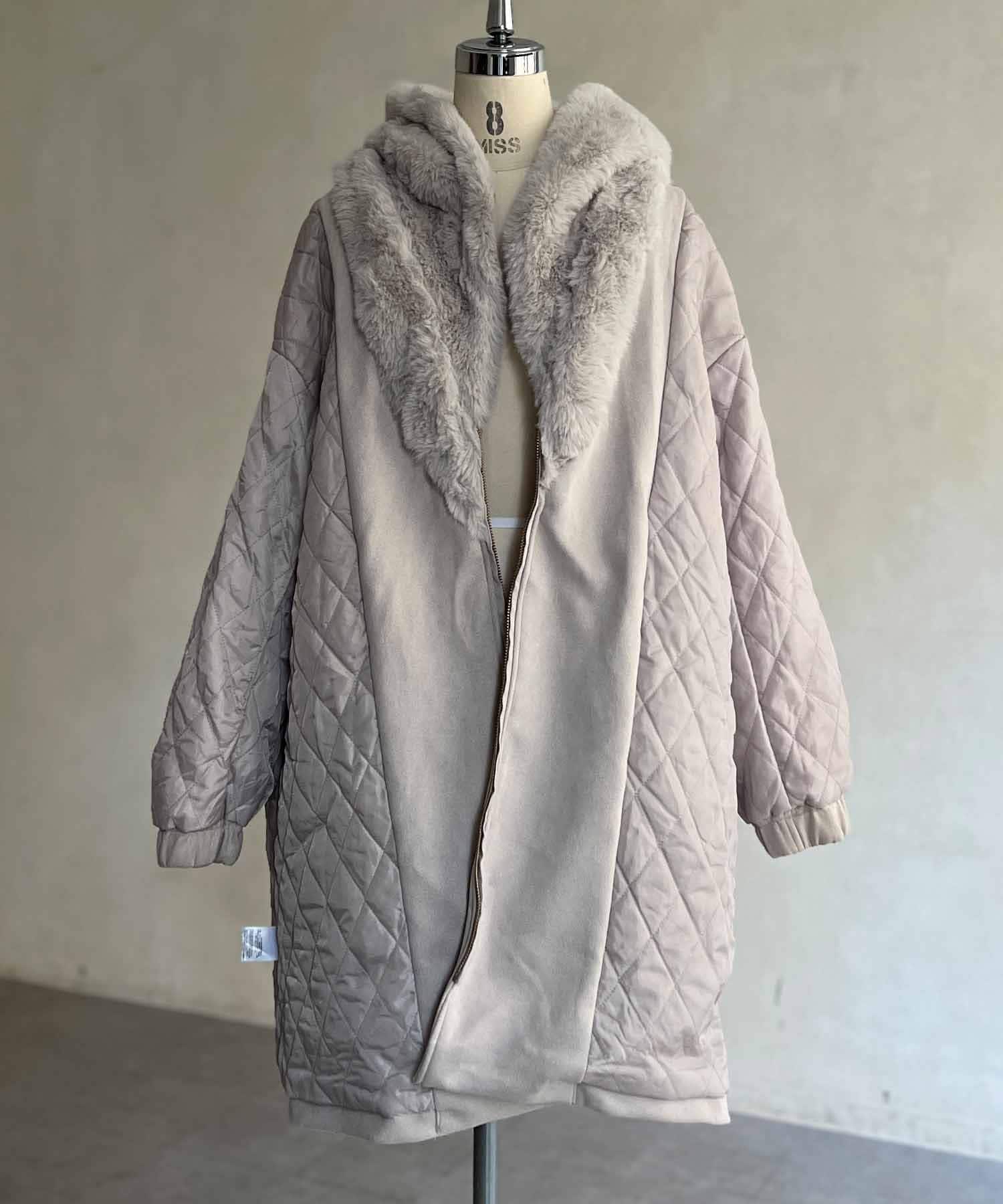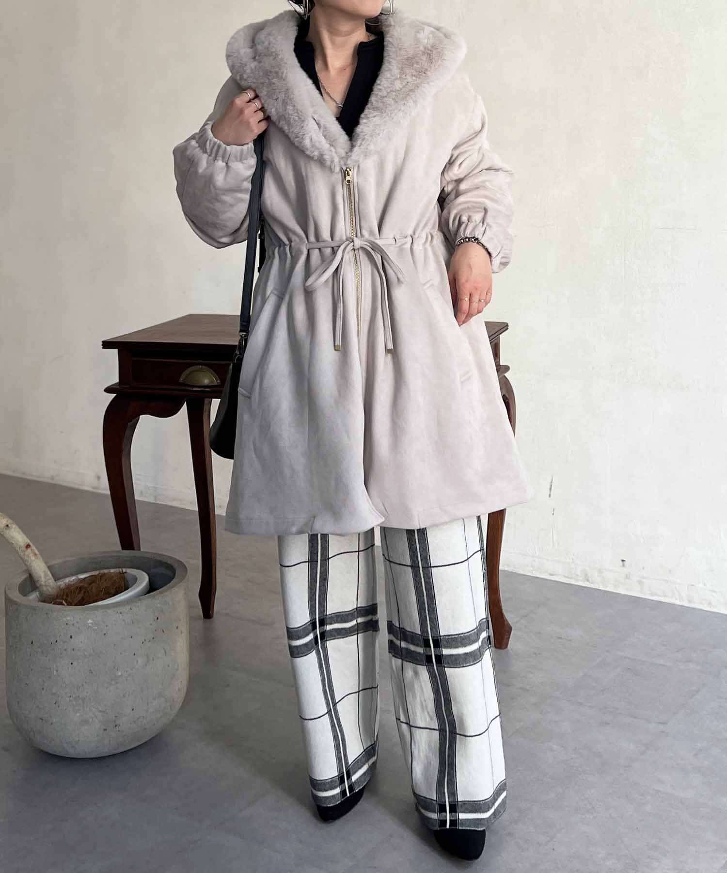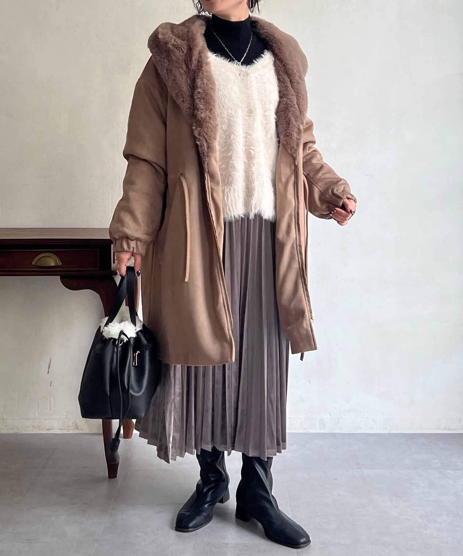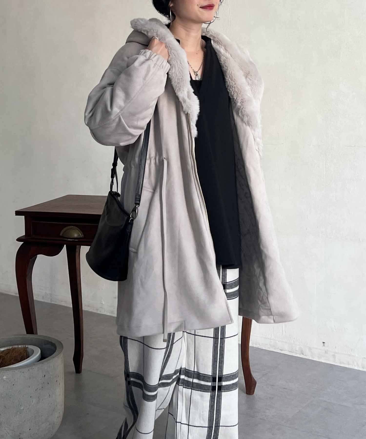 フード裏にはふわふわのファーを施し、華やかな印象をプラスしました。