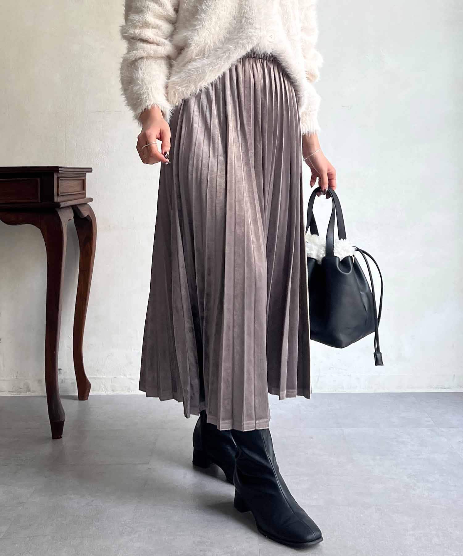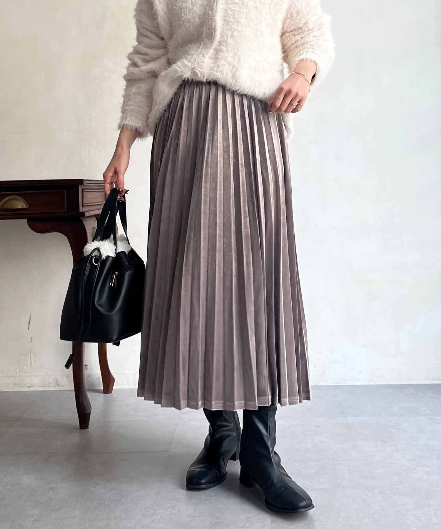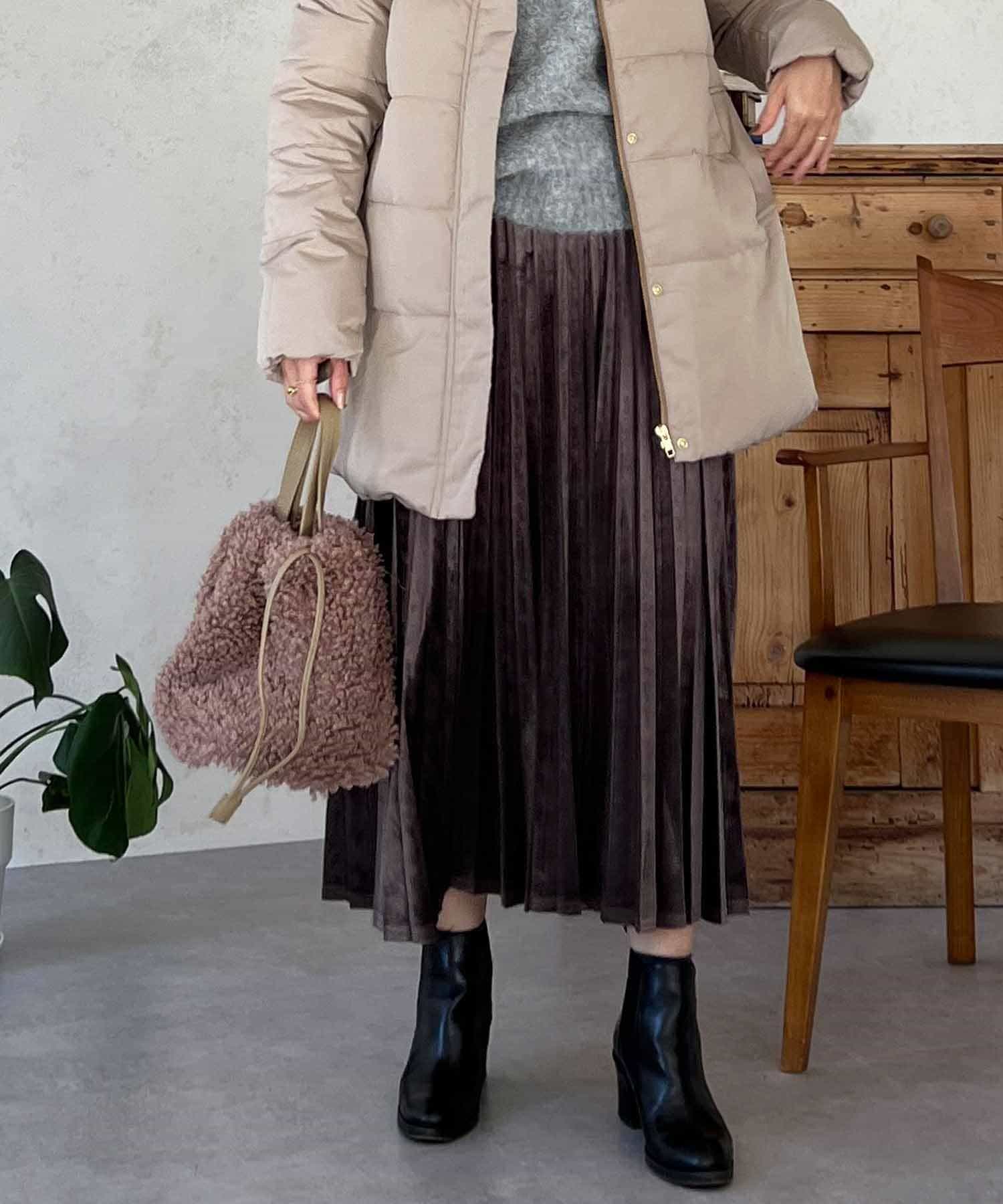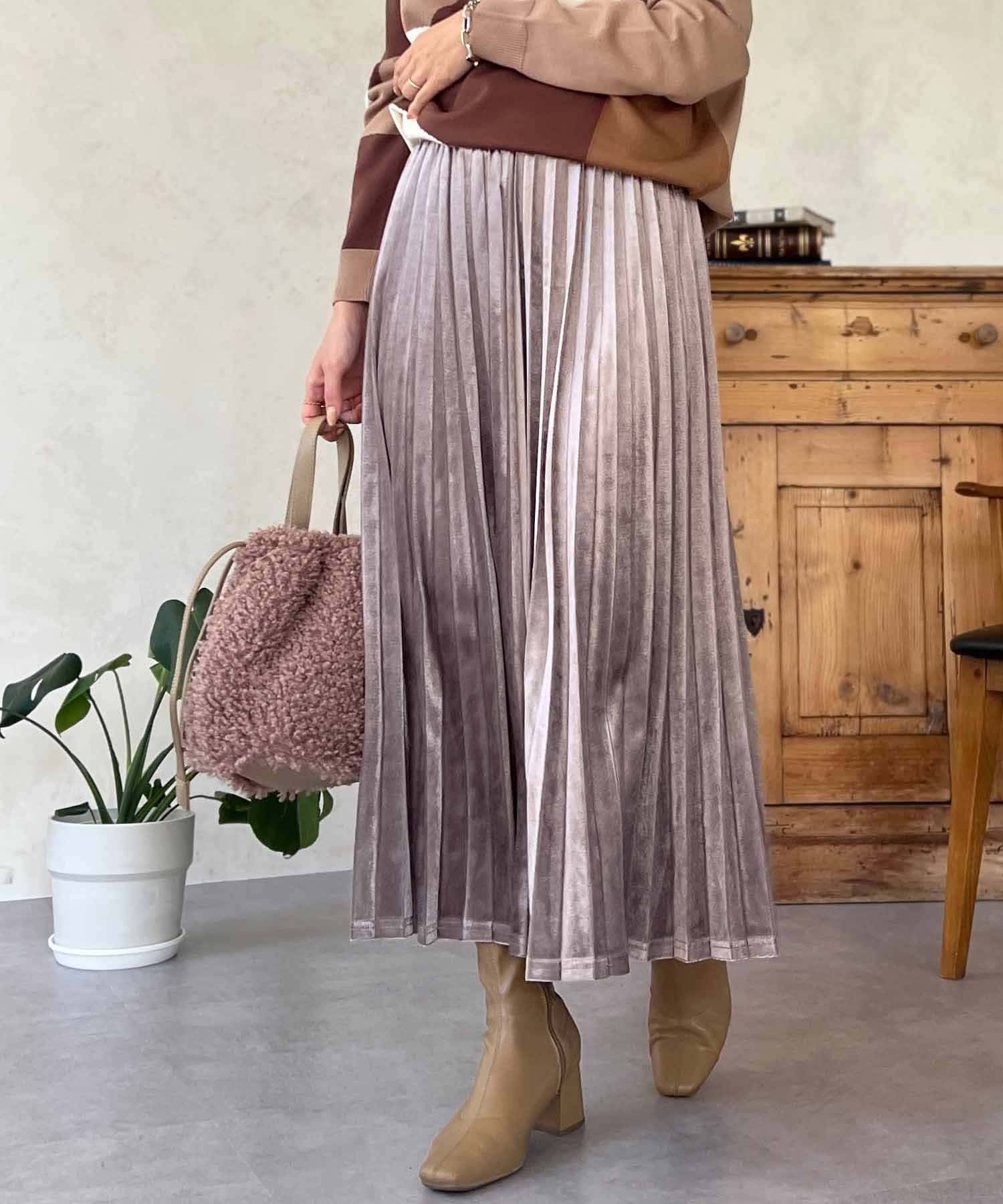 シーズンムード高まる、ベロア素材のプリーツスカート
