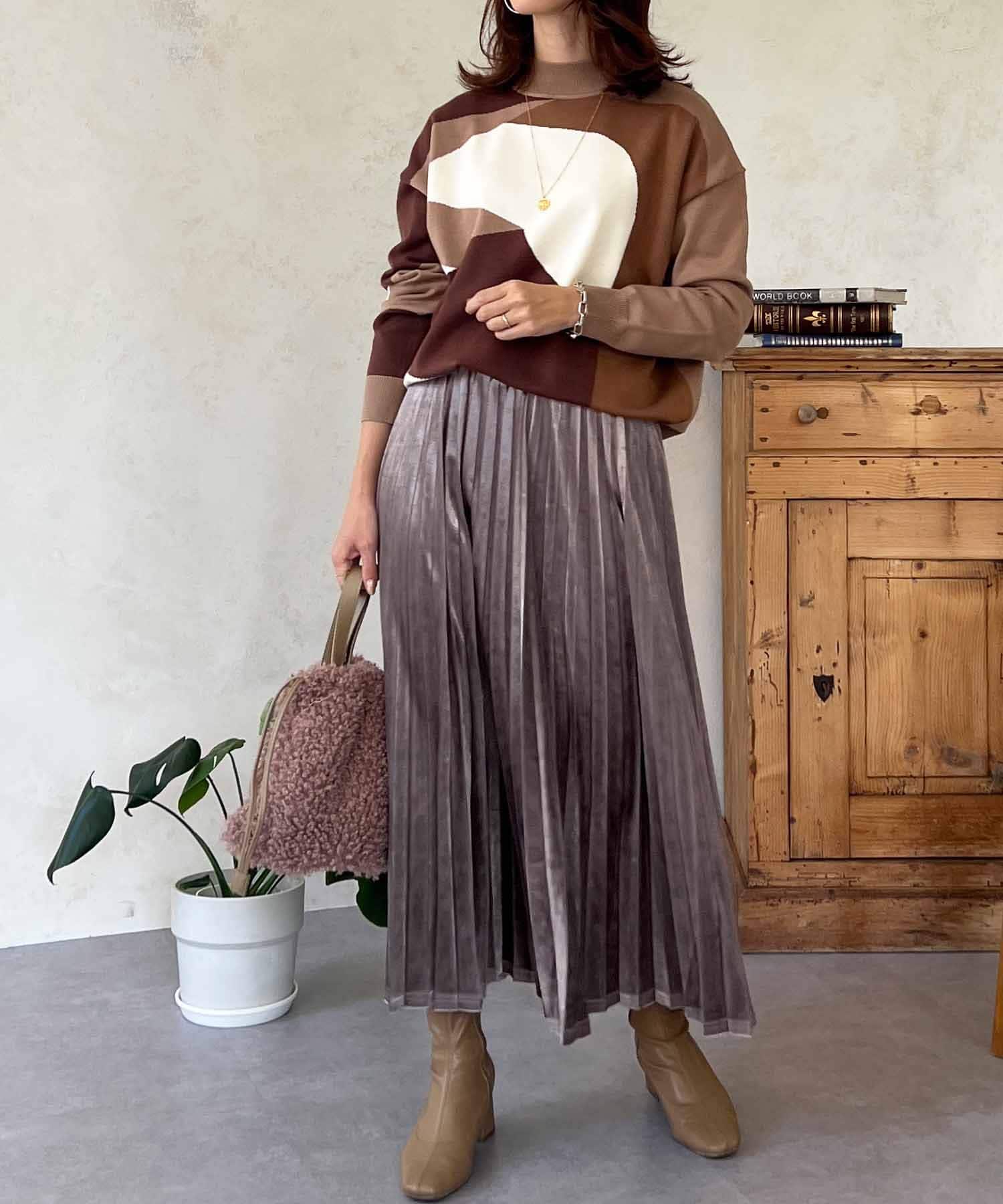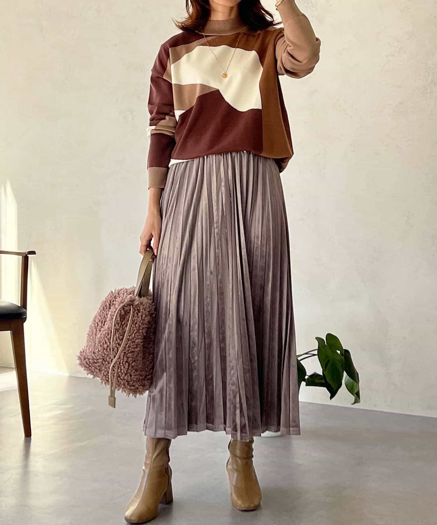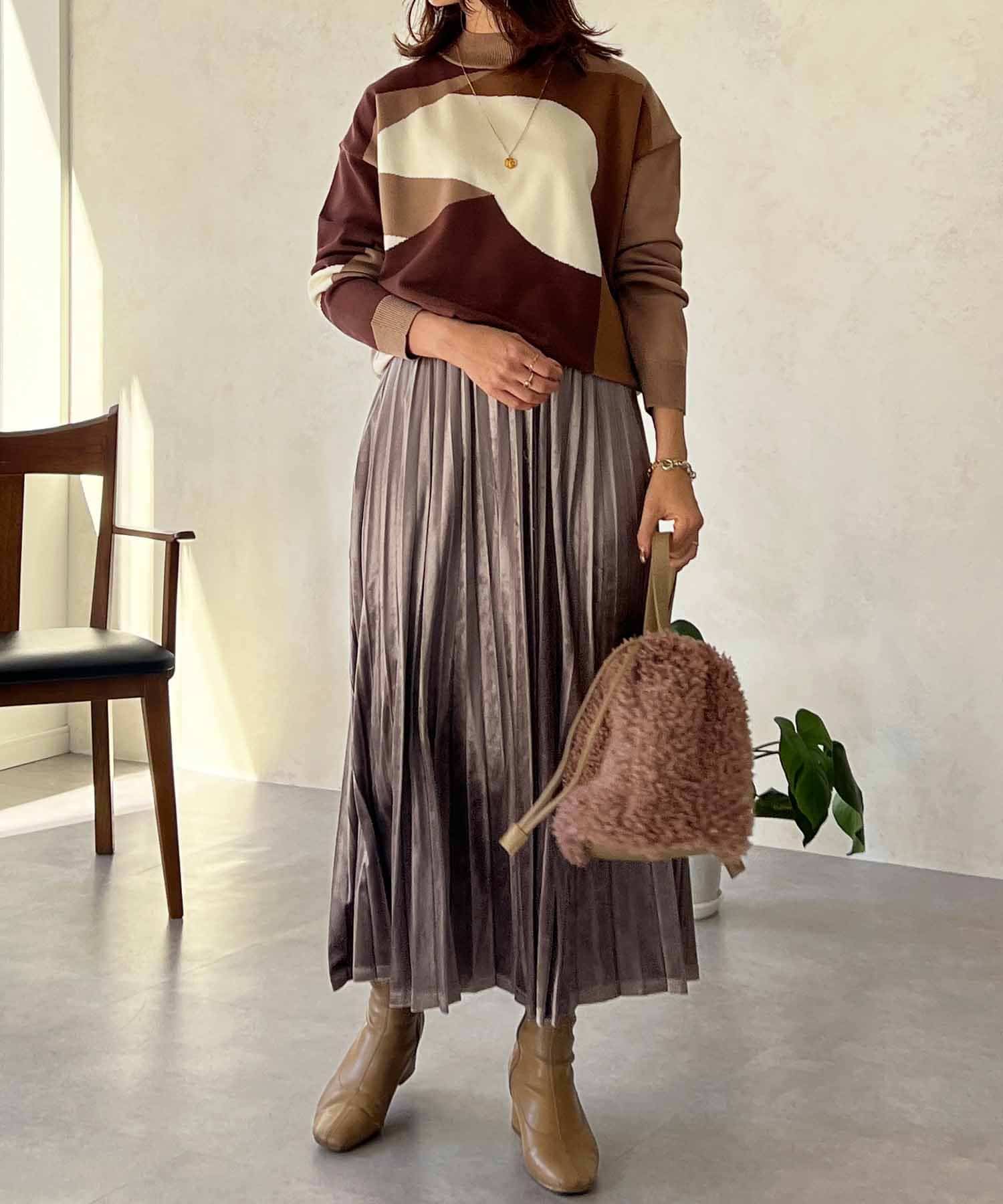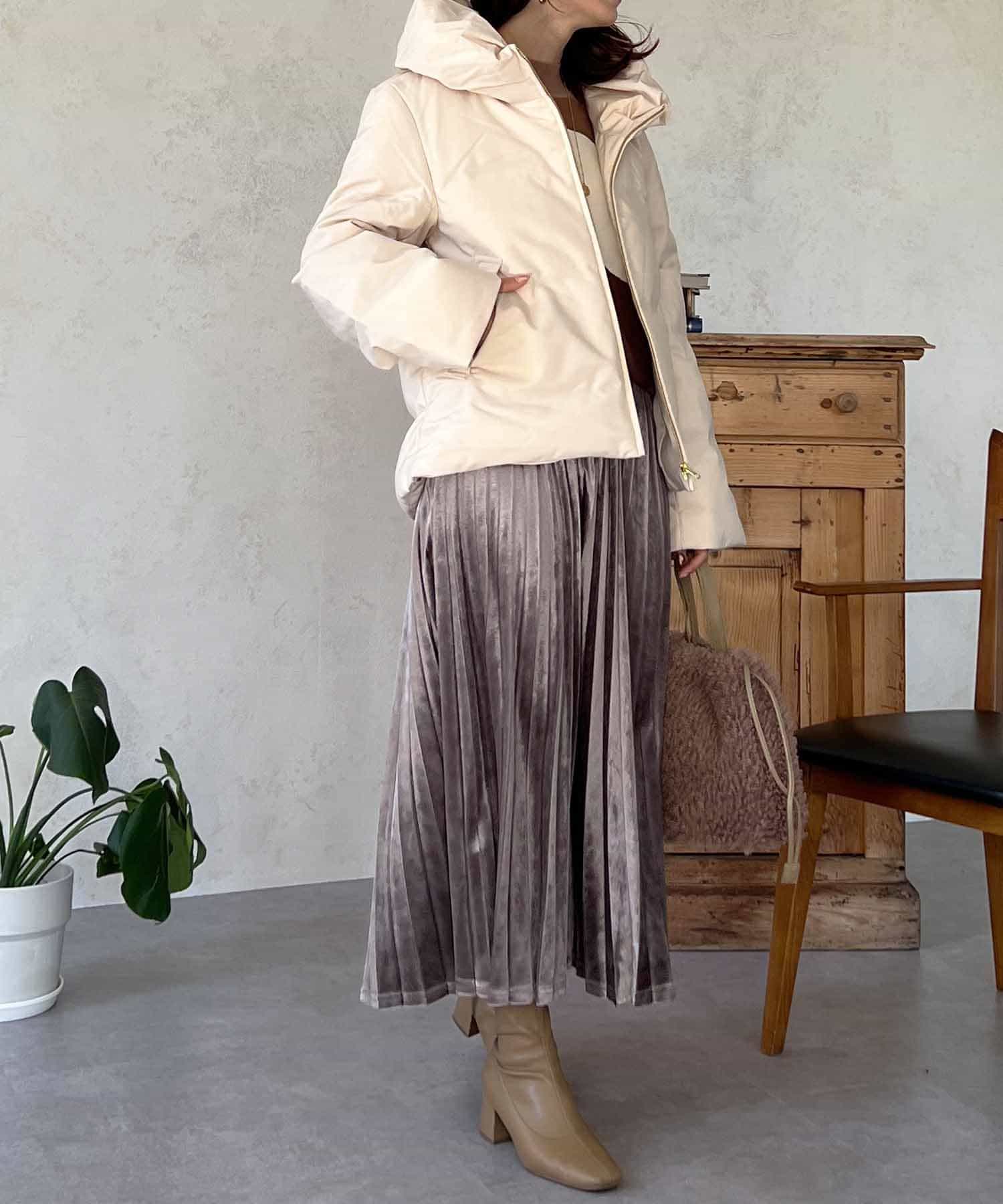 シーズンムード高まる、ベロア素材のプリーツスカート