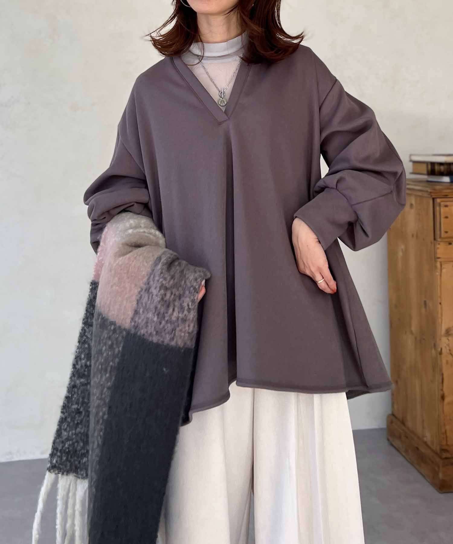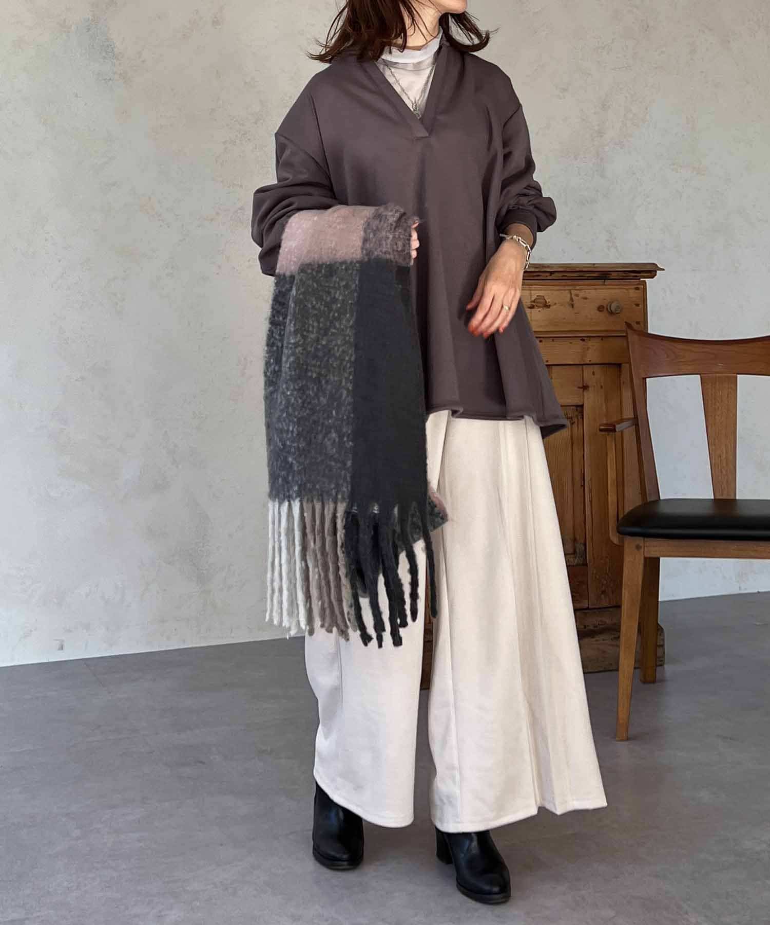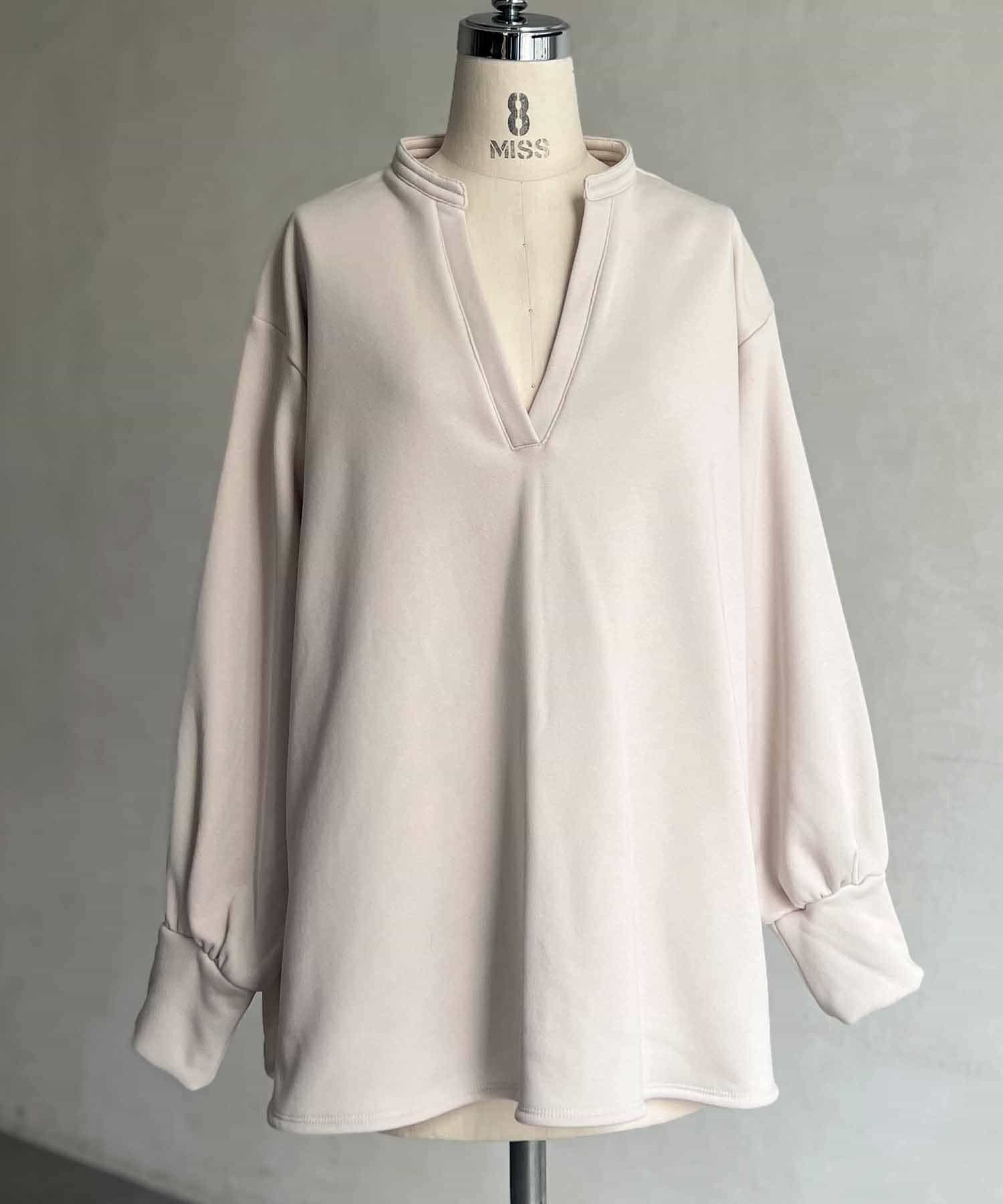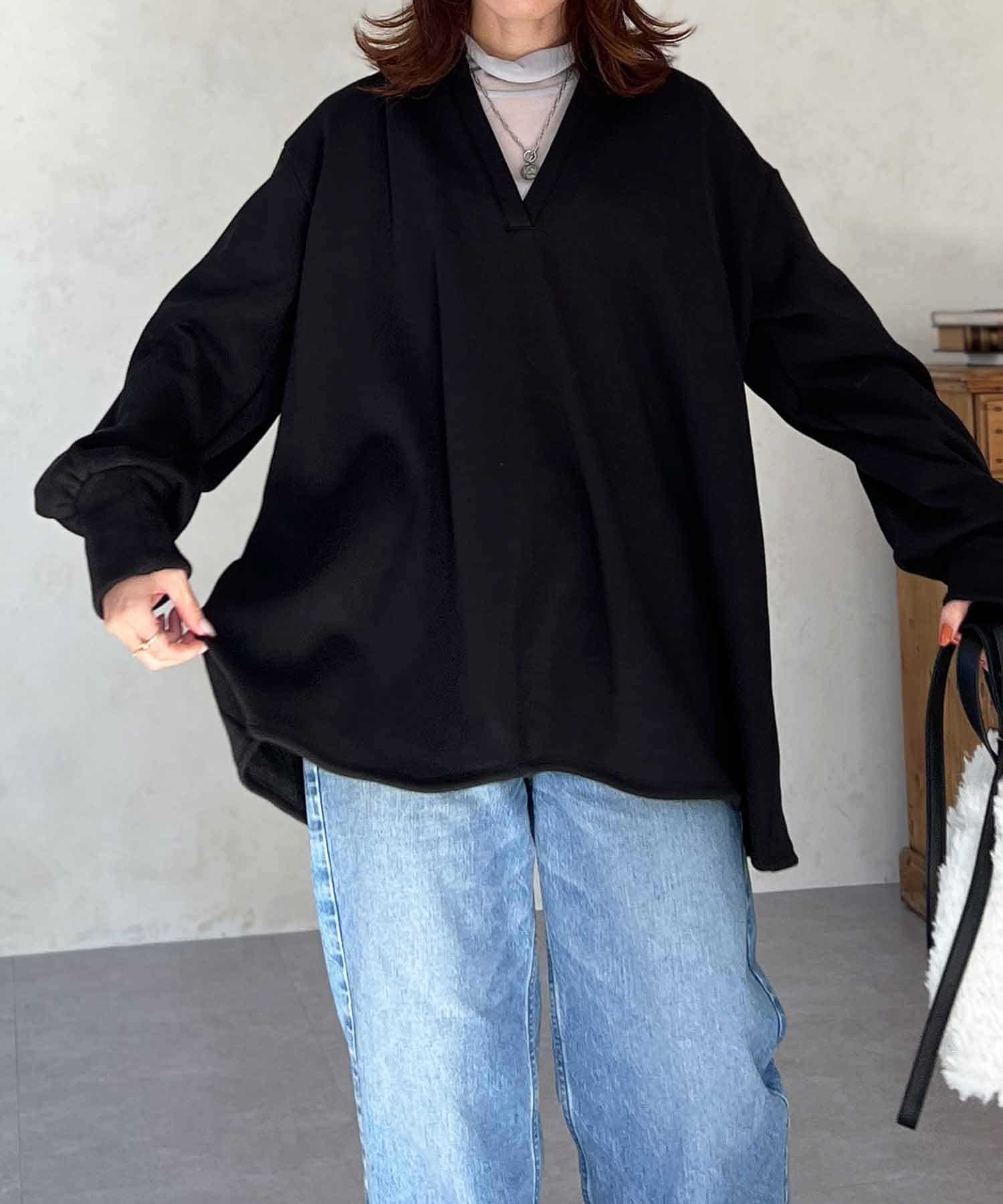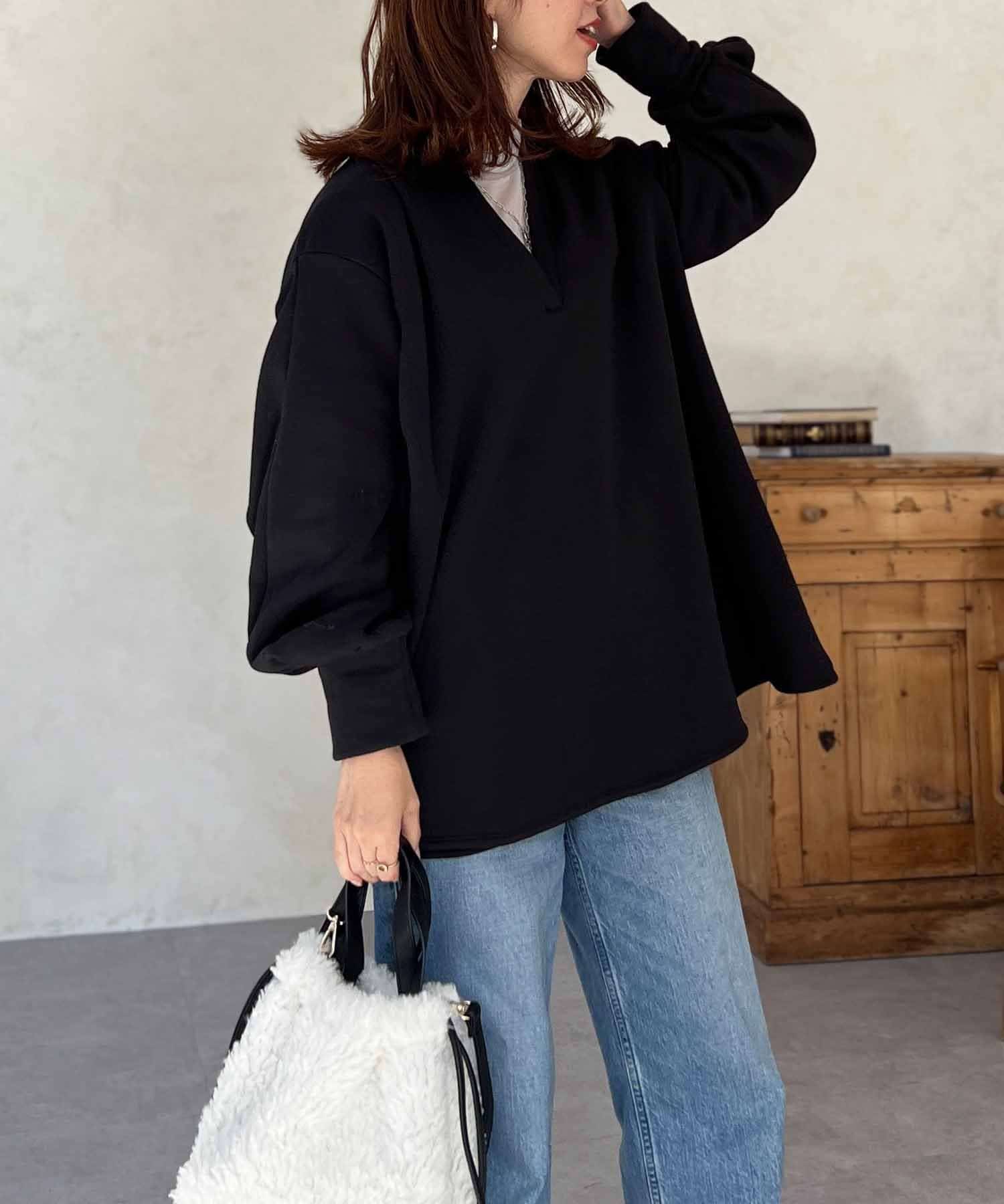 表側は毛羽立ちの少ないキレイめな印象のカットソー素材を使用しているので、スキニーパンツで合わせたすっきりコーデにもぴったり!