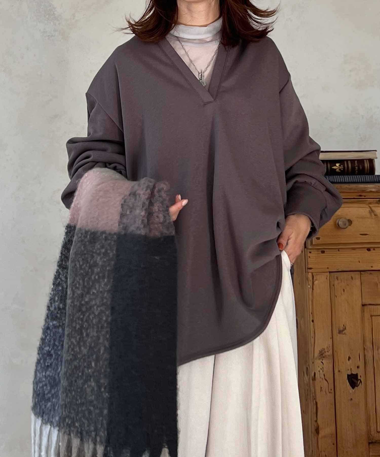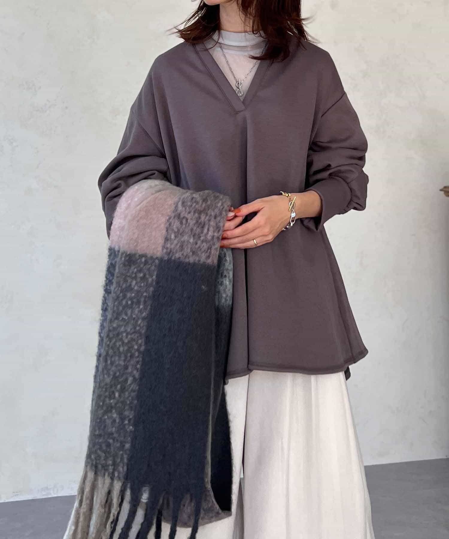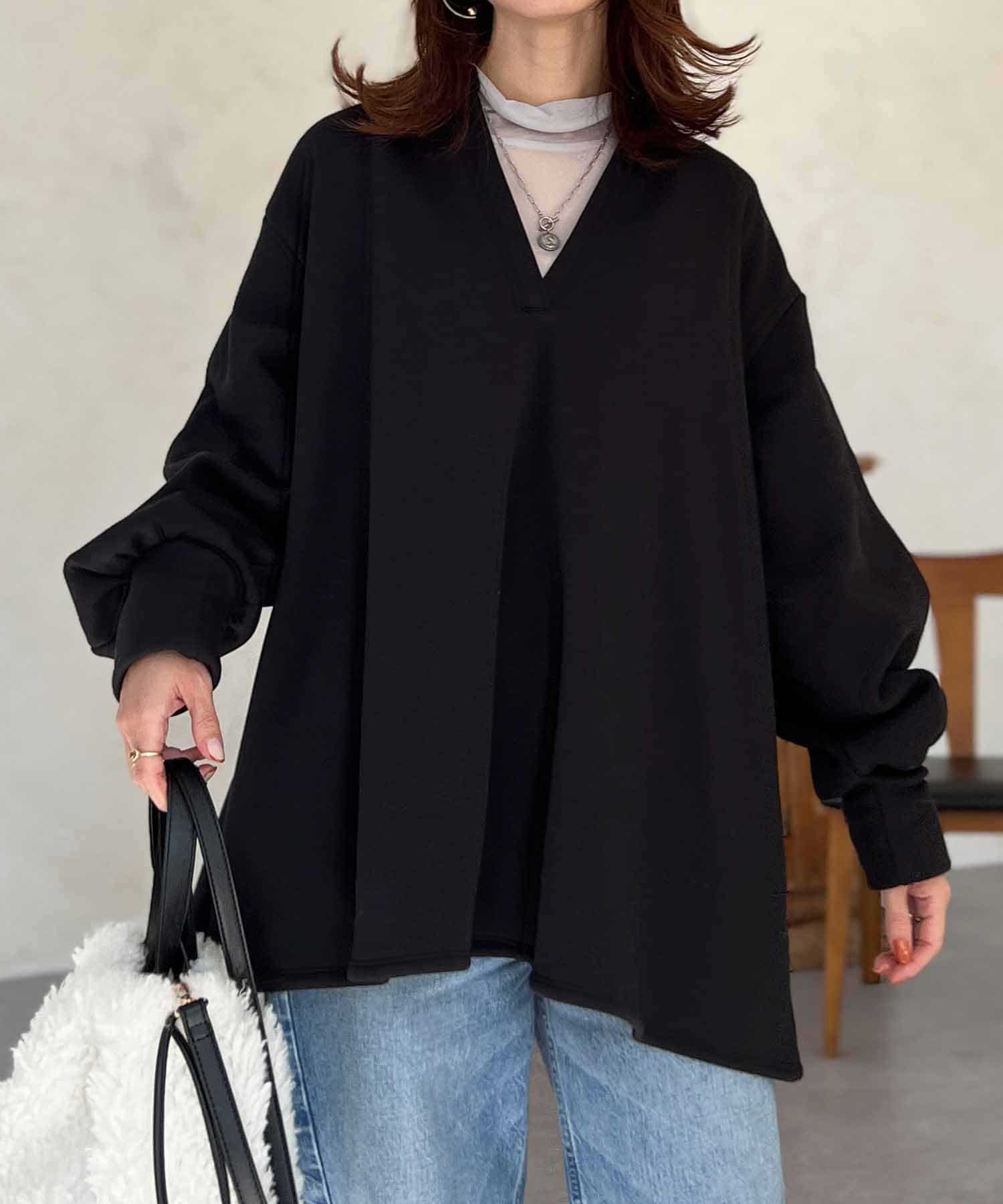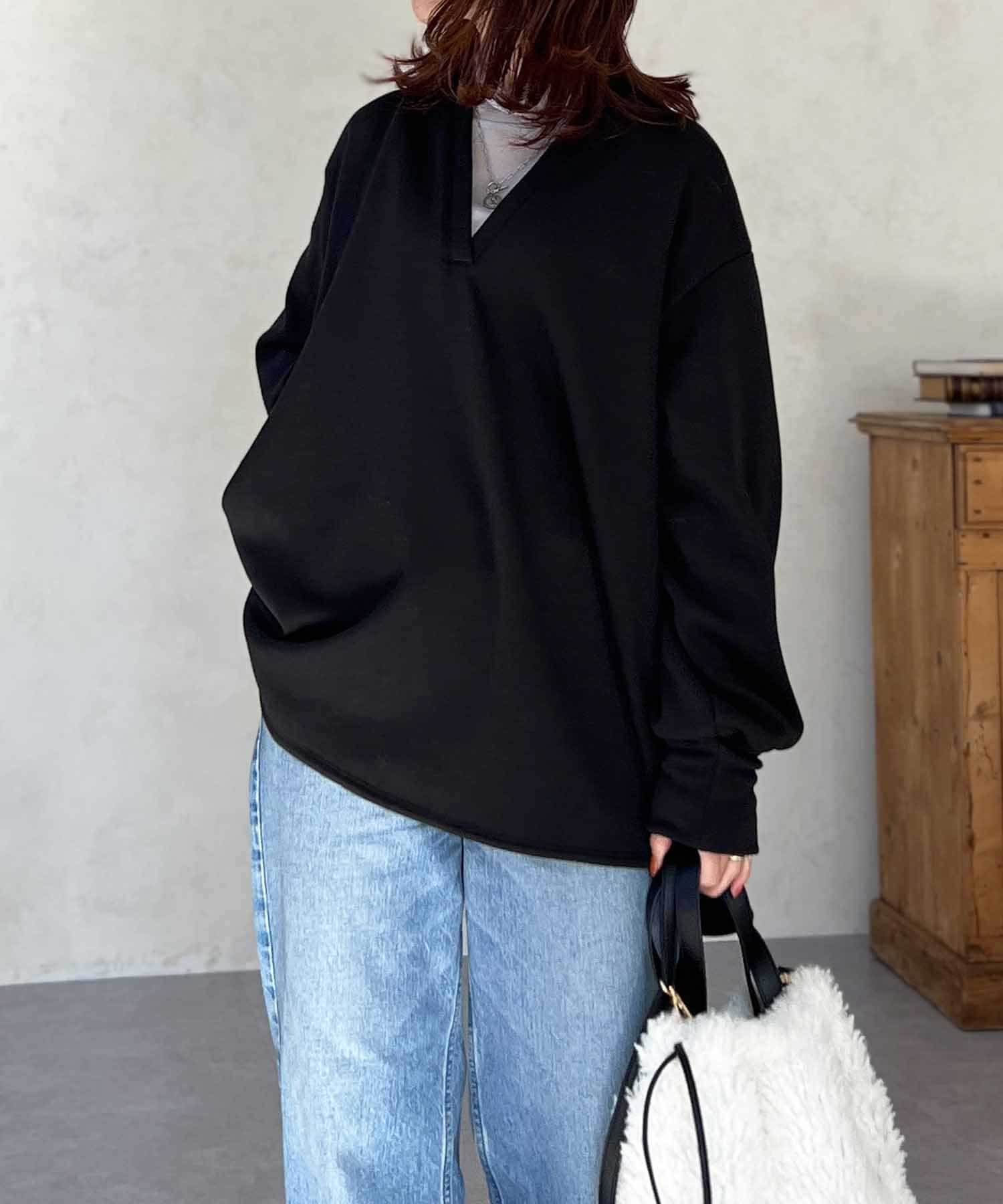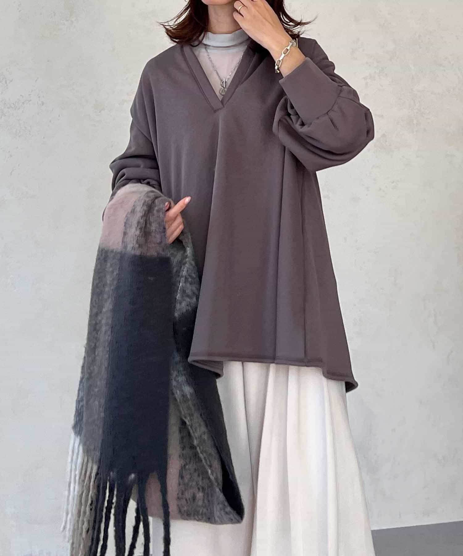 表側は毛羽立ちの少ないキレイめな印象のカットソー素材を使用しているので、スキニーパンツで合わせたすっきりコーデにもぴったり!