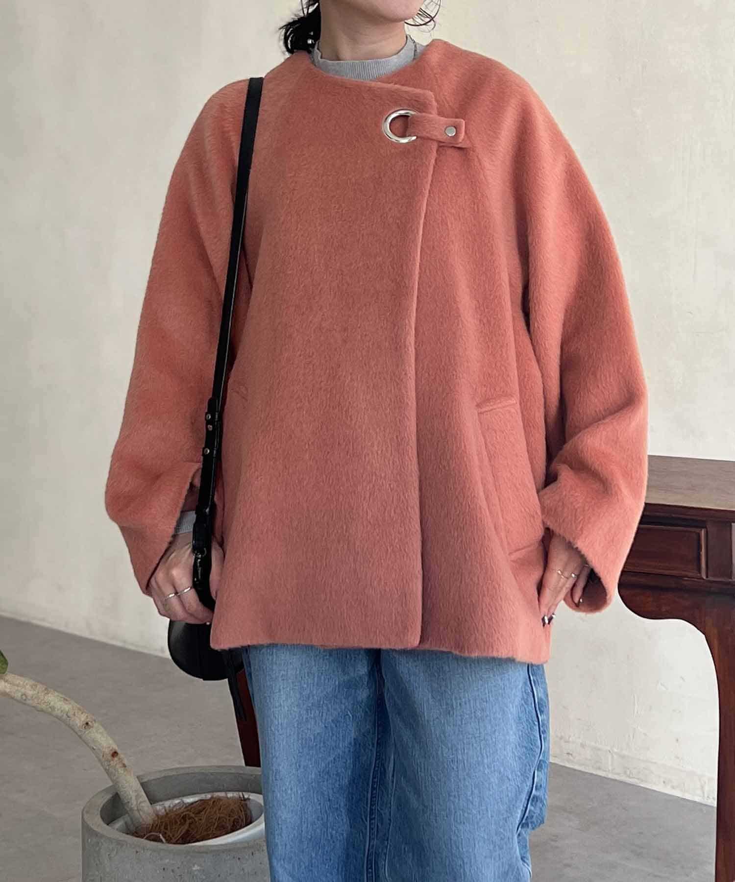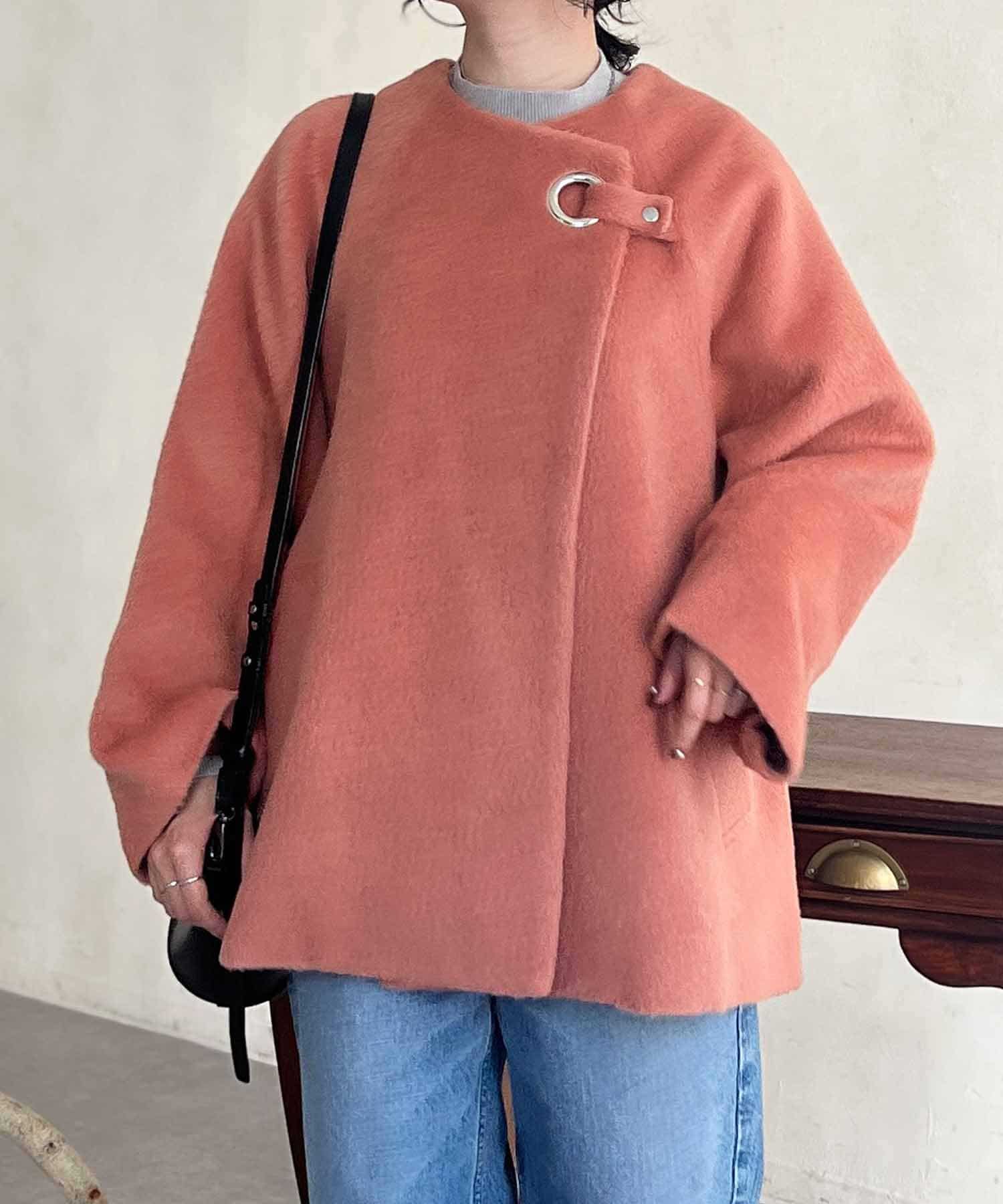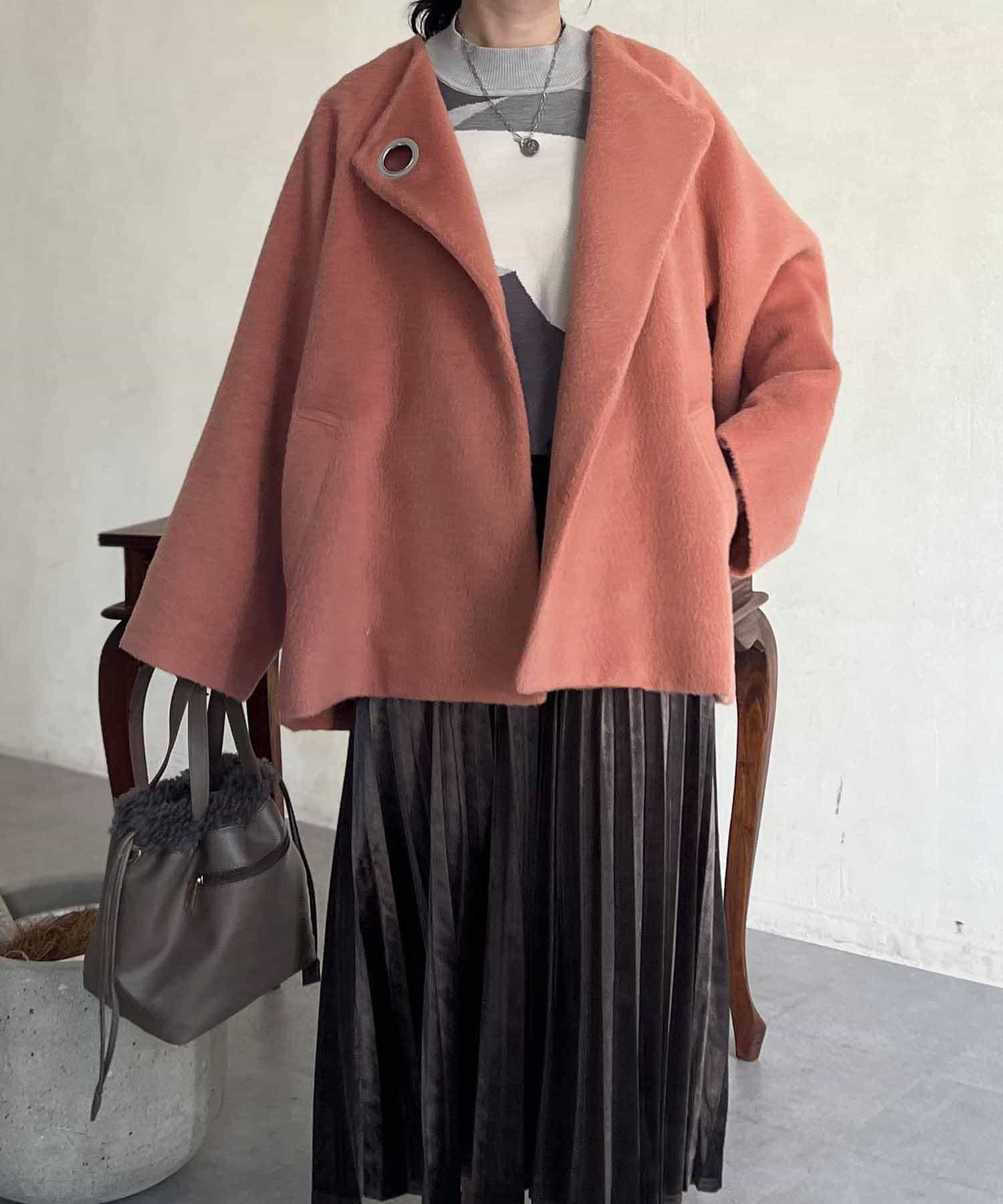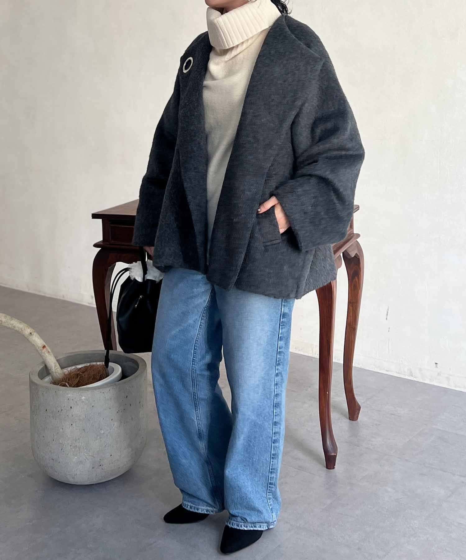 ワンポイントデザインが目を惹くシャギーノーカラージャケット