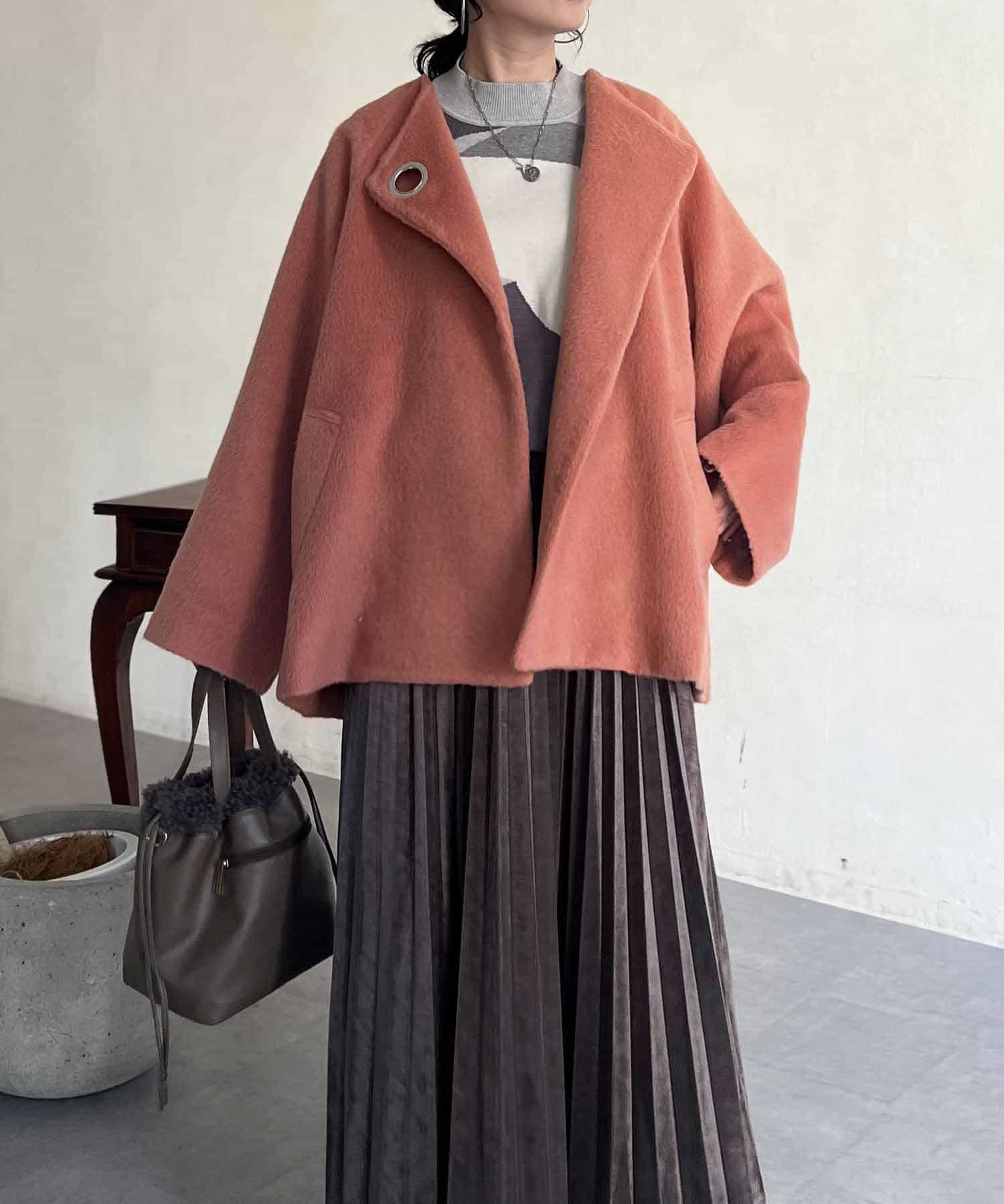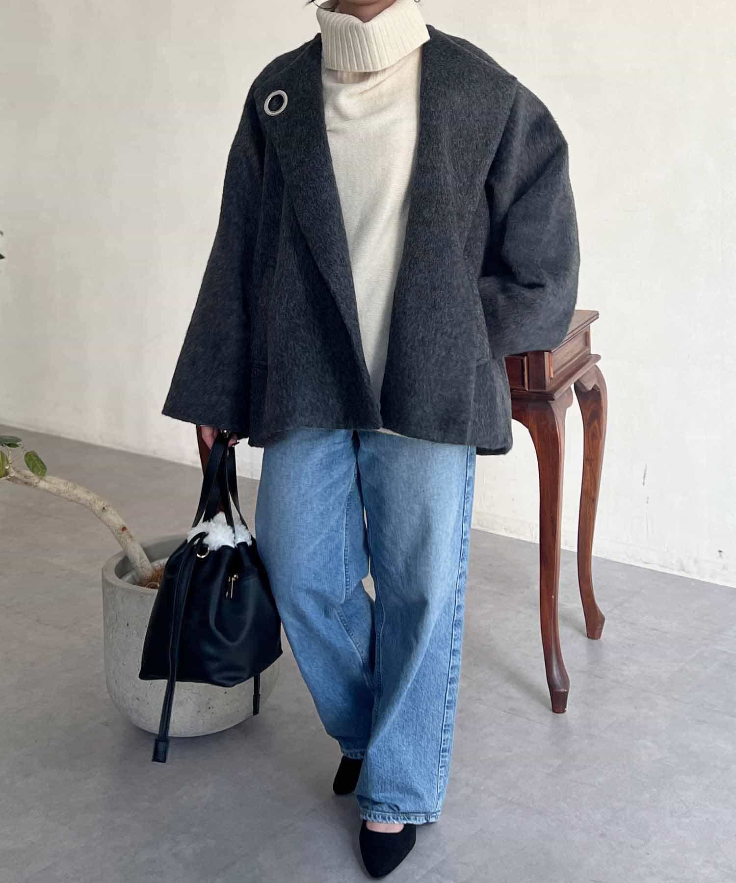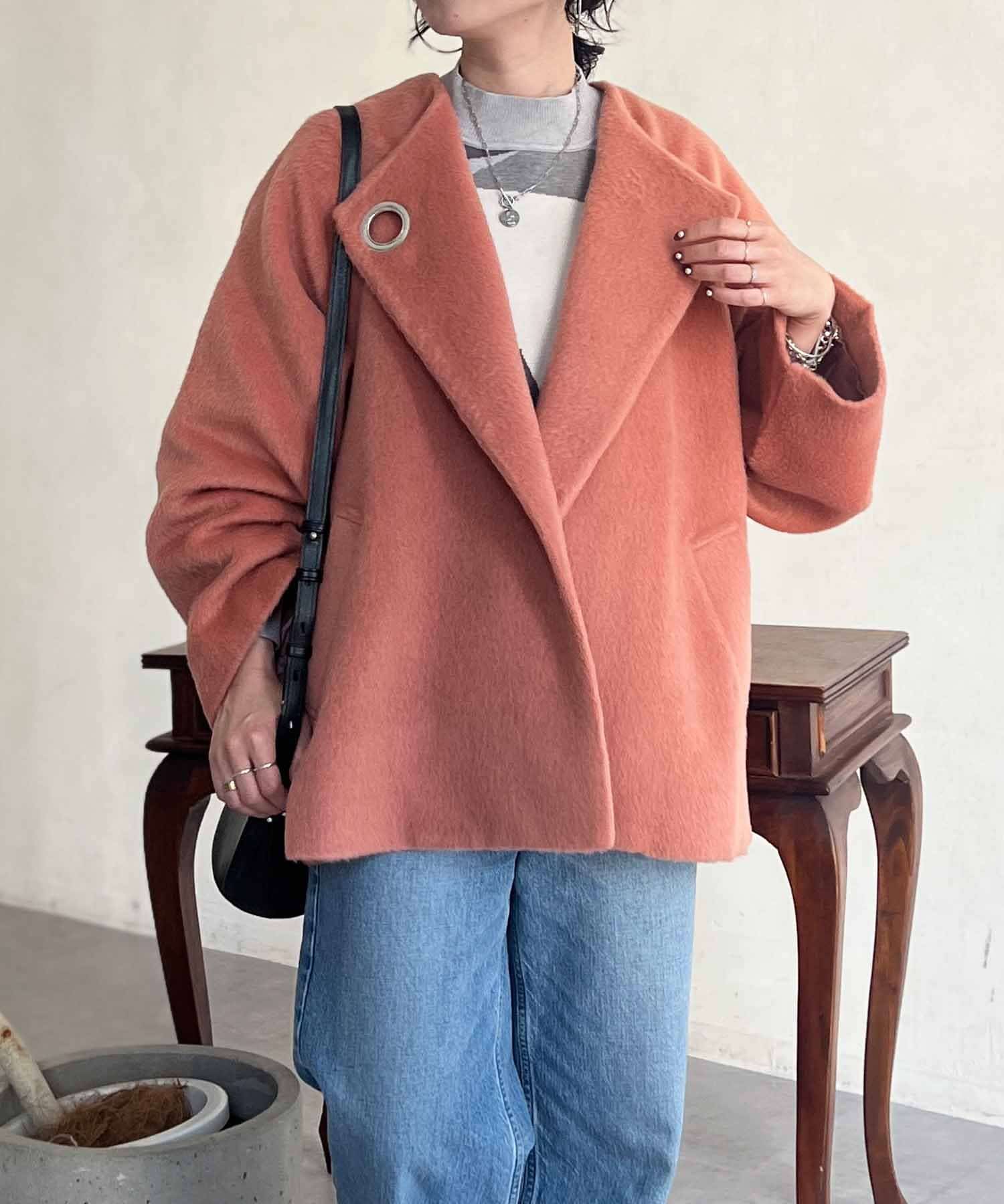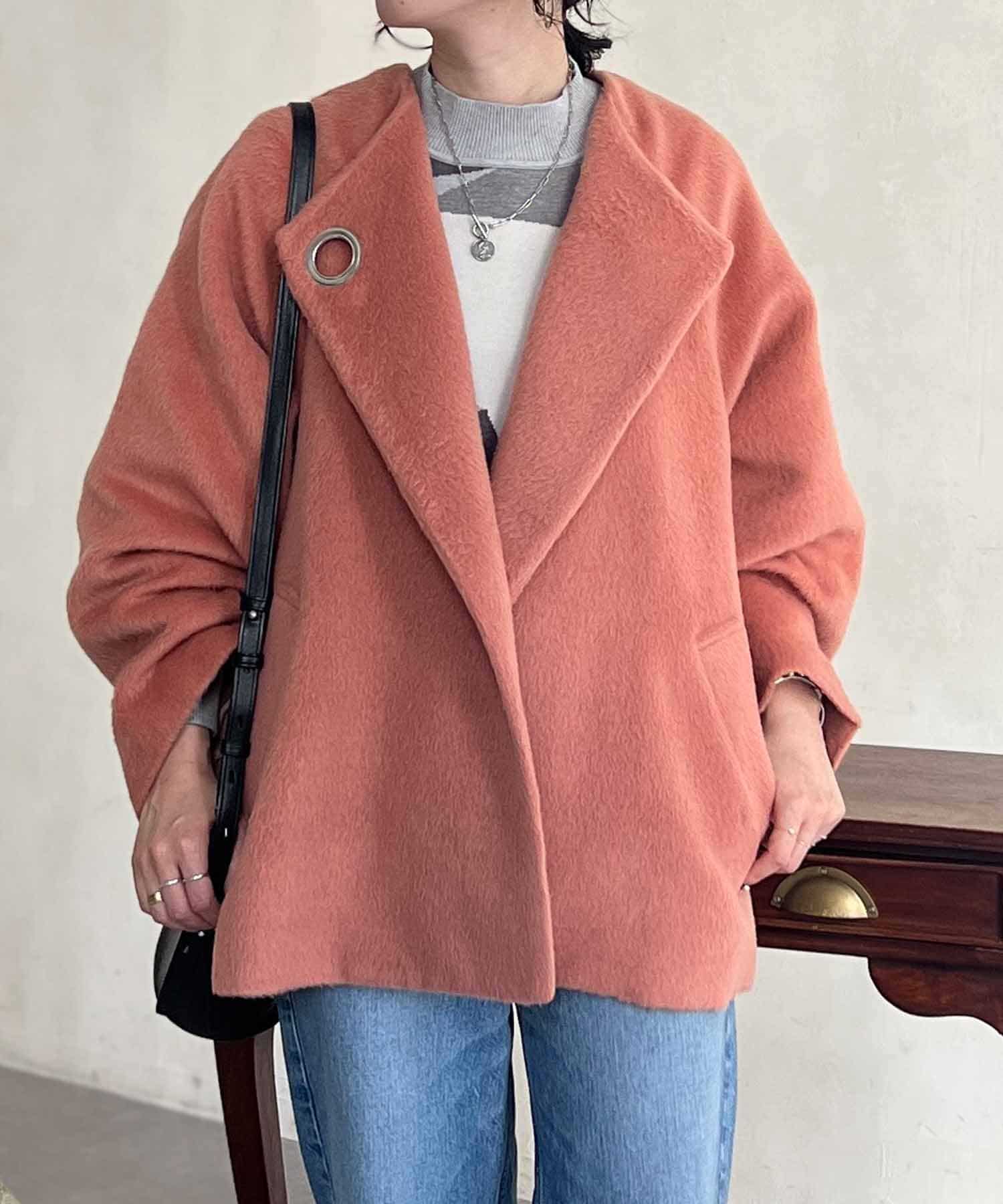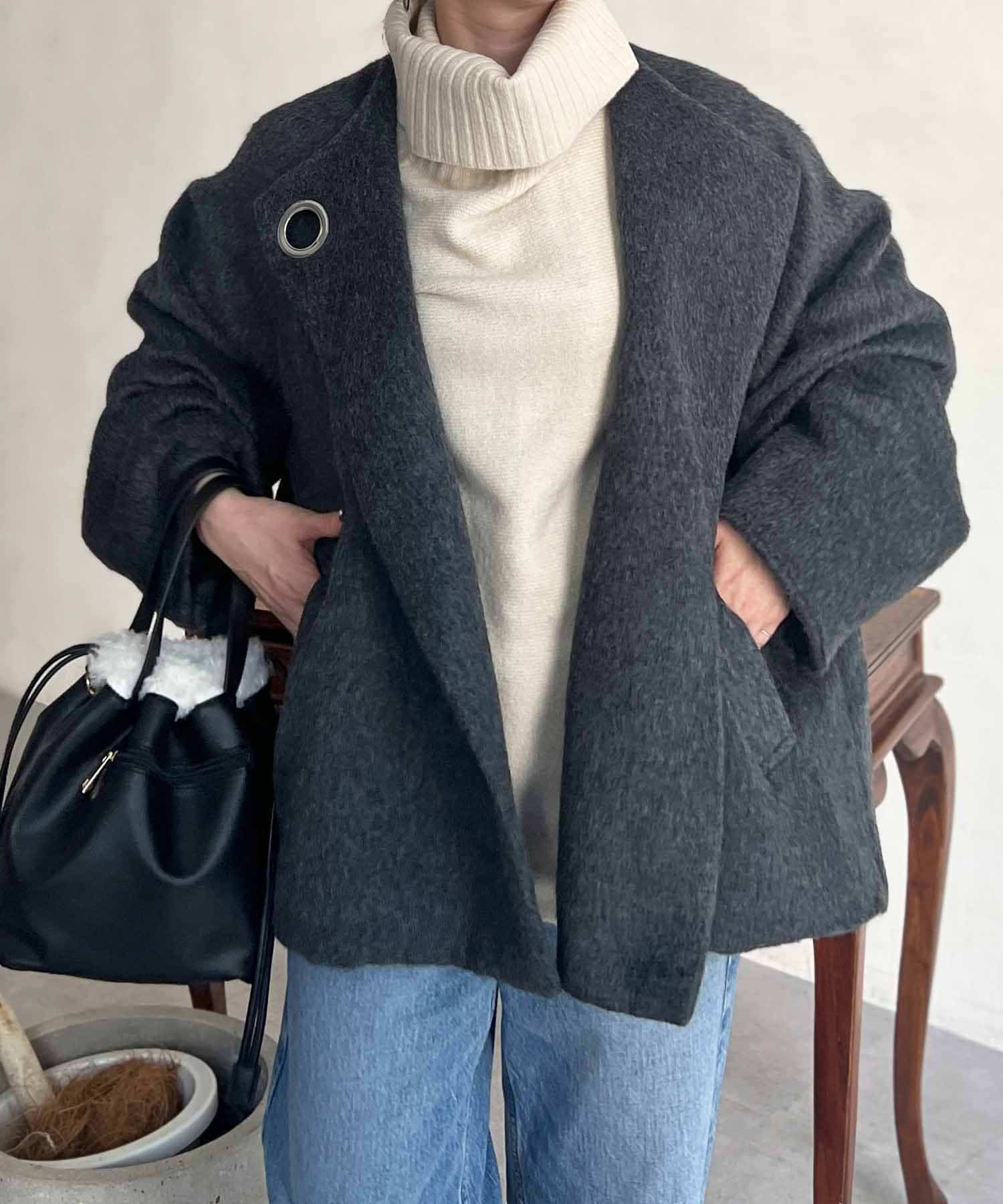 ワンポイントデザインが目を惹くシャギーノーカラージャケット