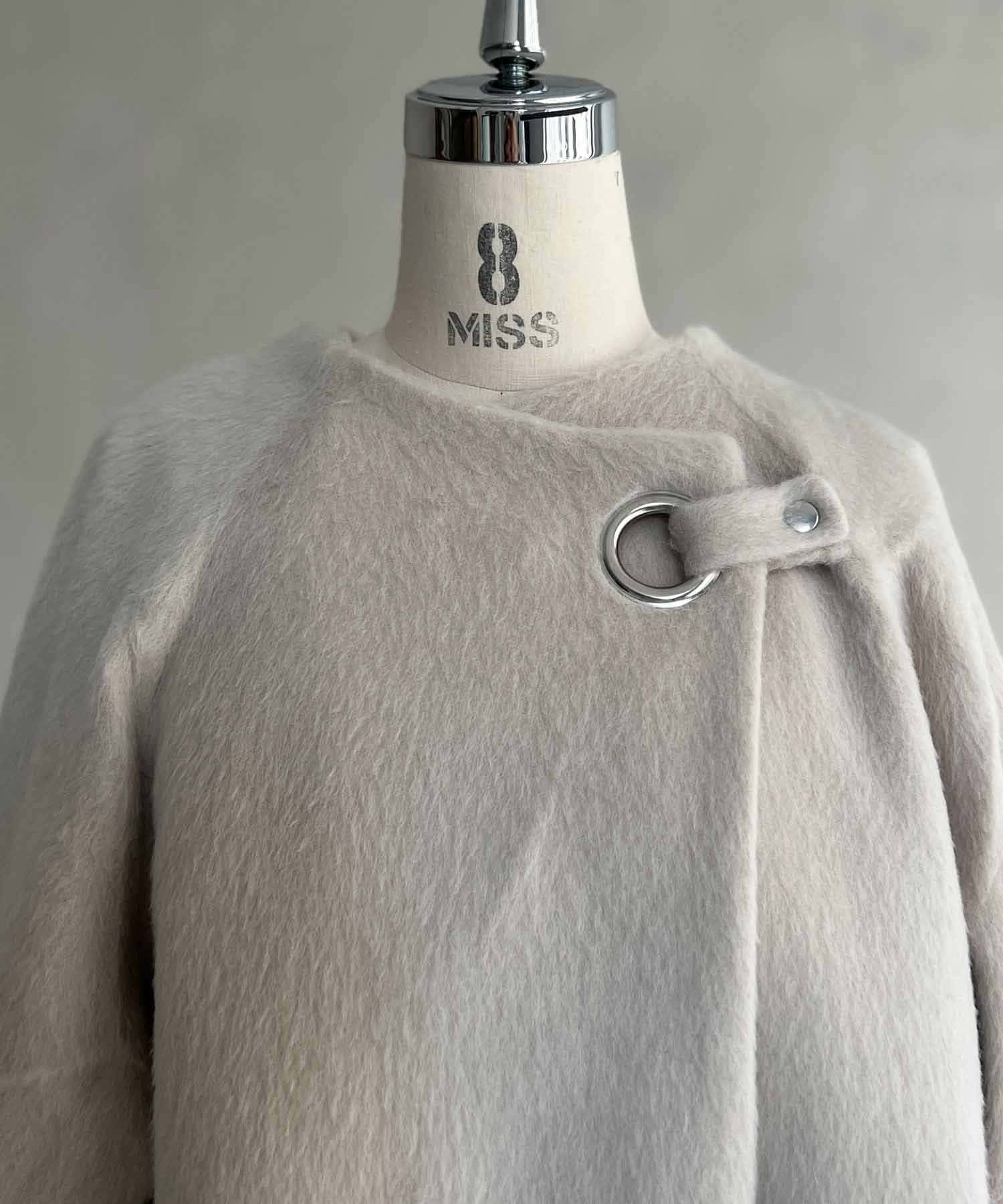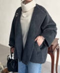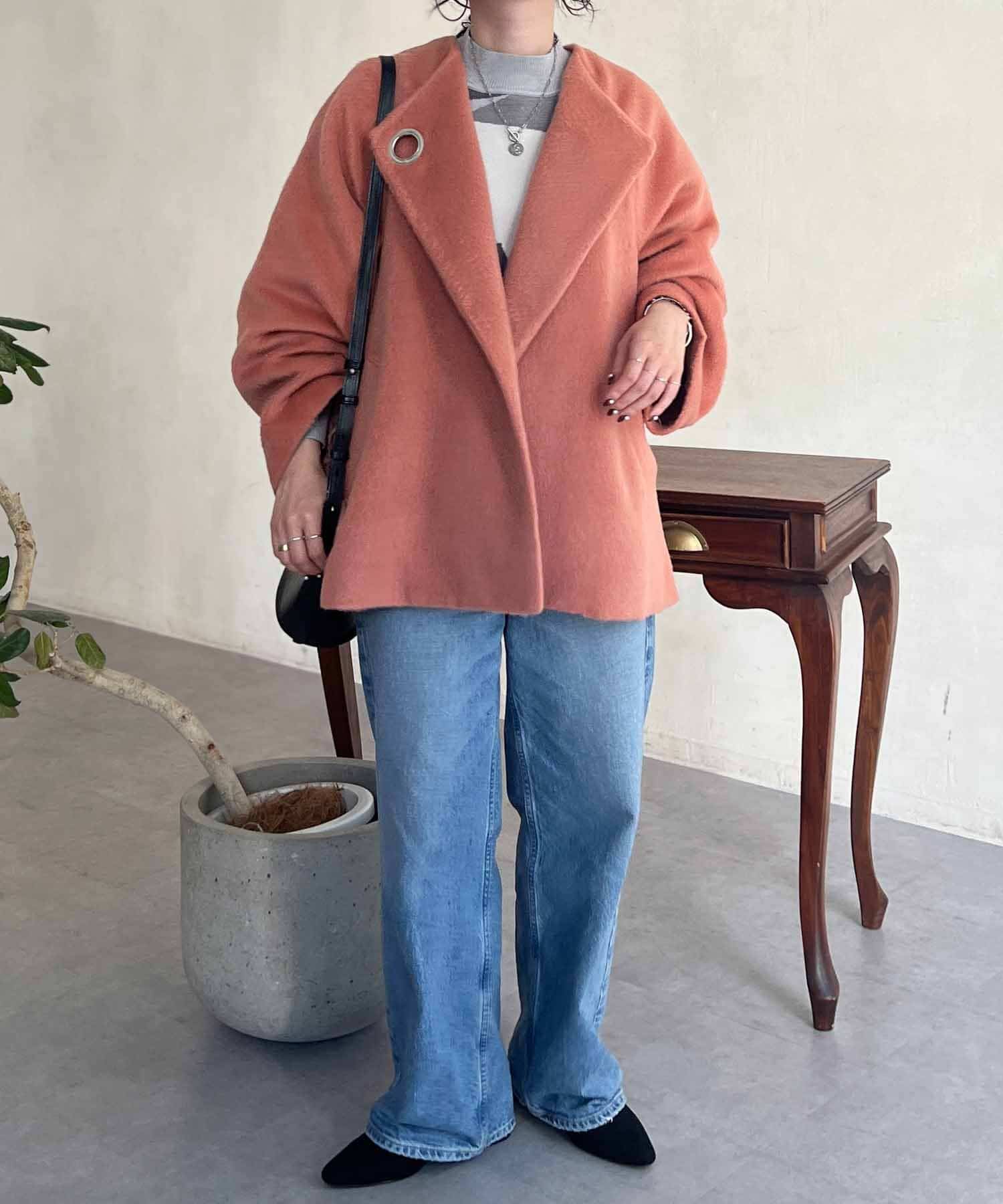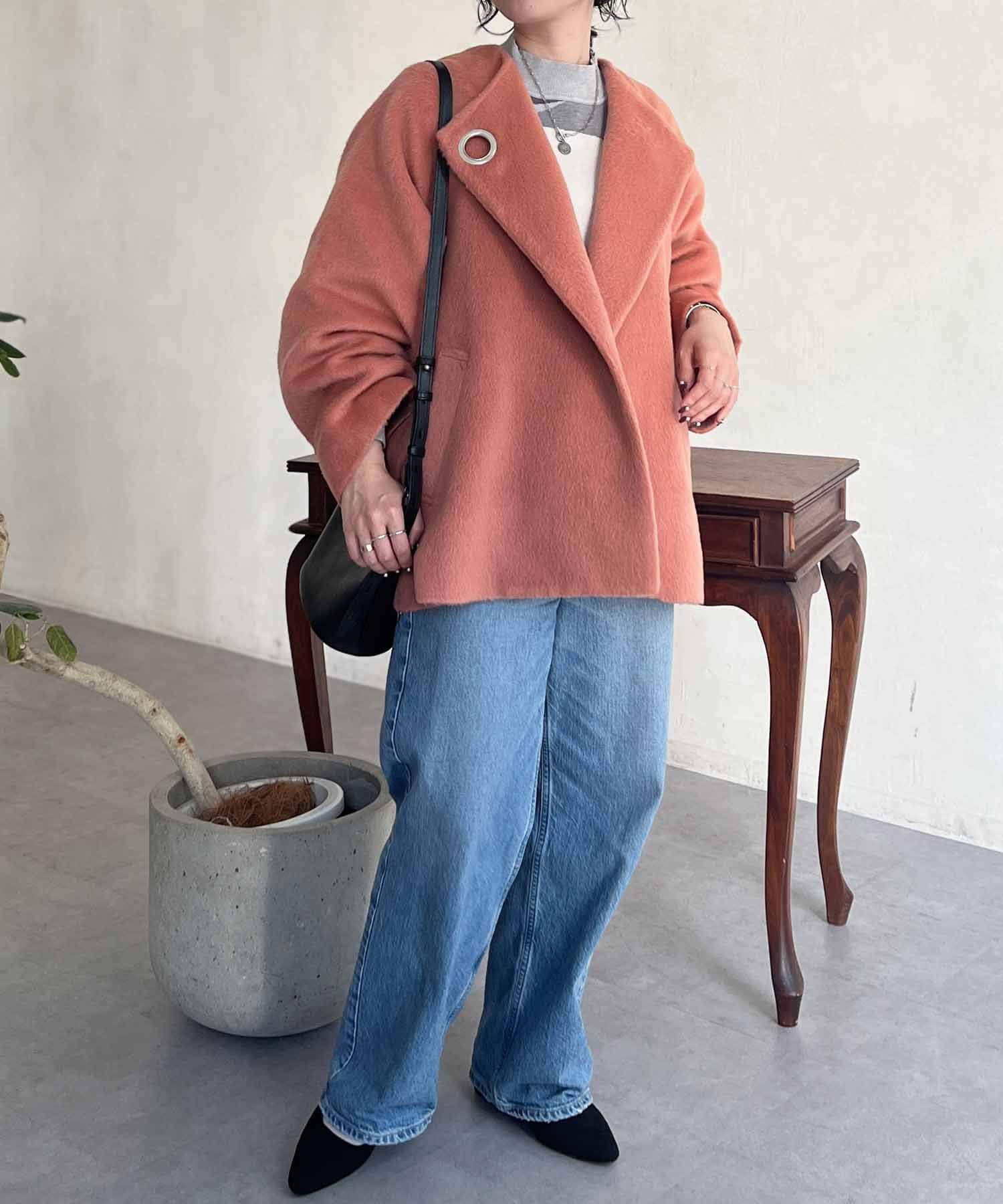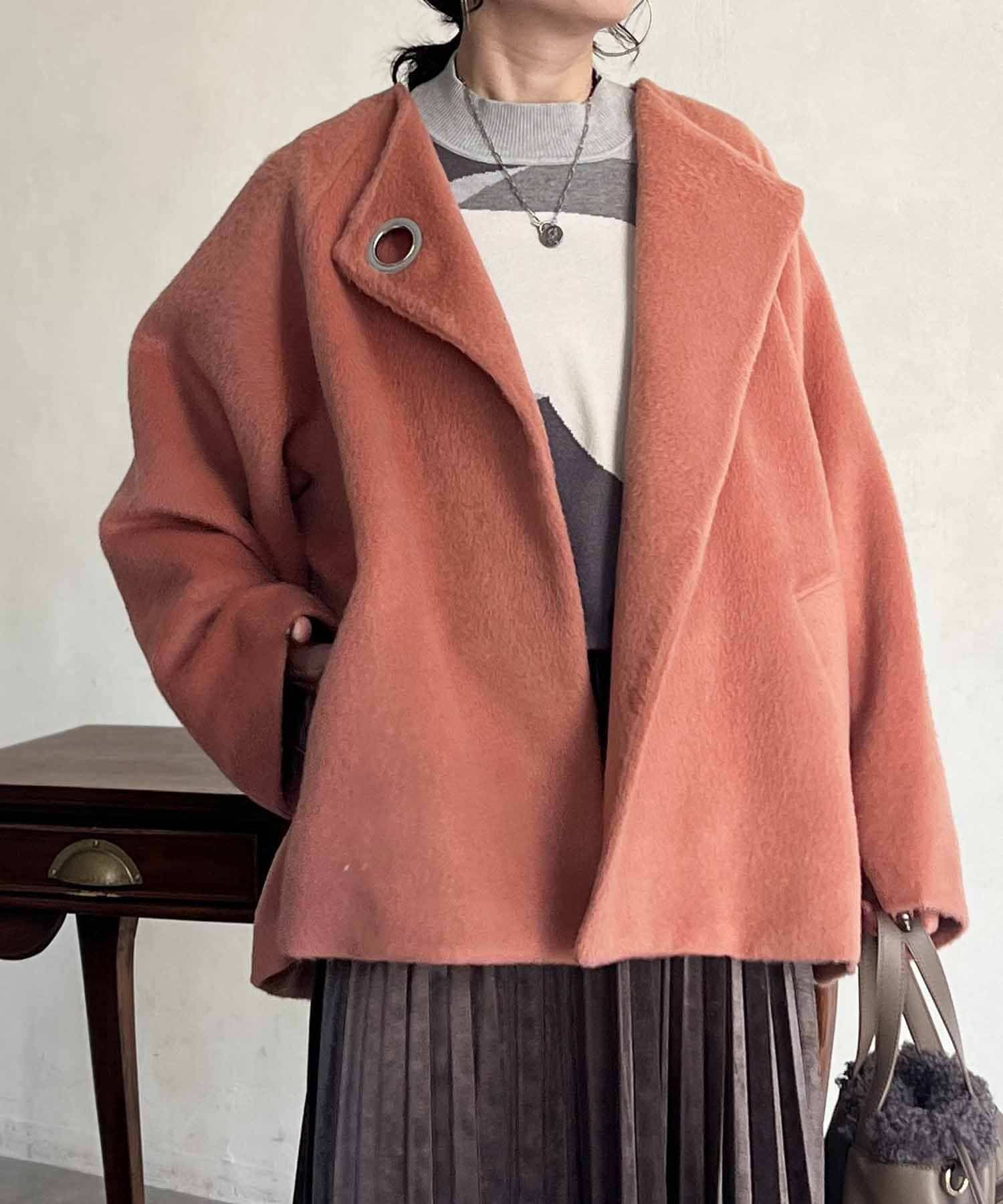 ワンポイントデザインが目を惹くシャギーノーカラージャケット