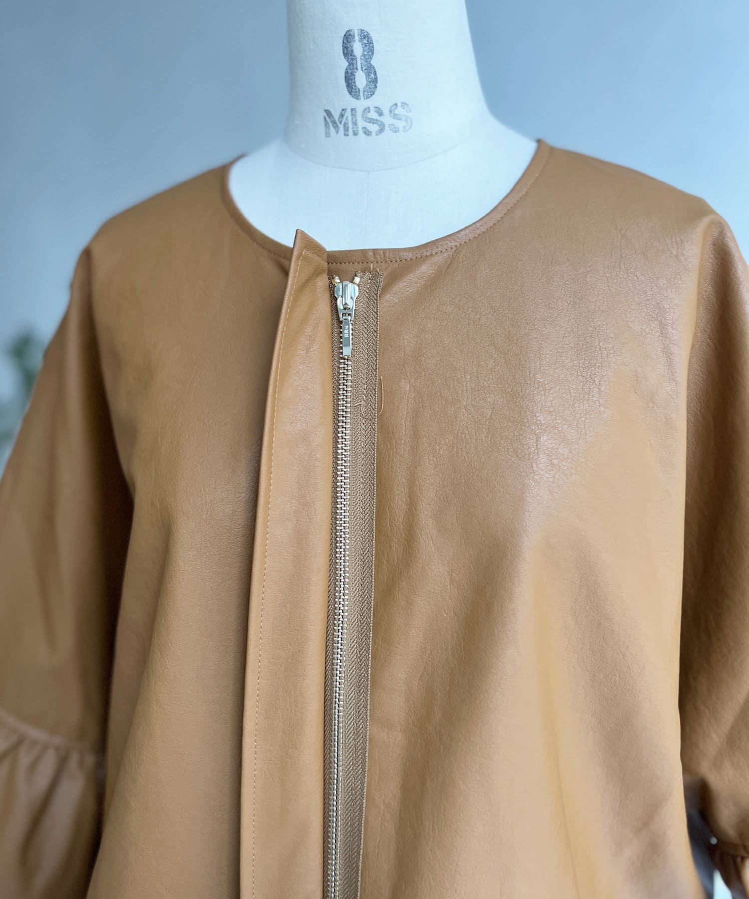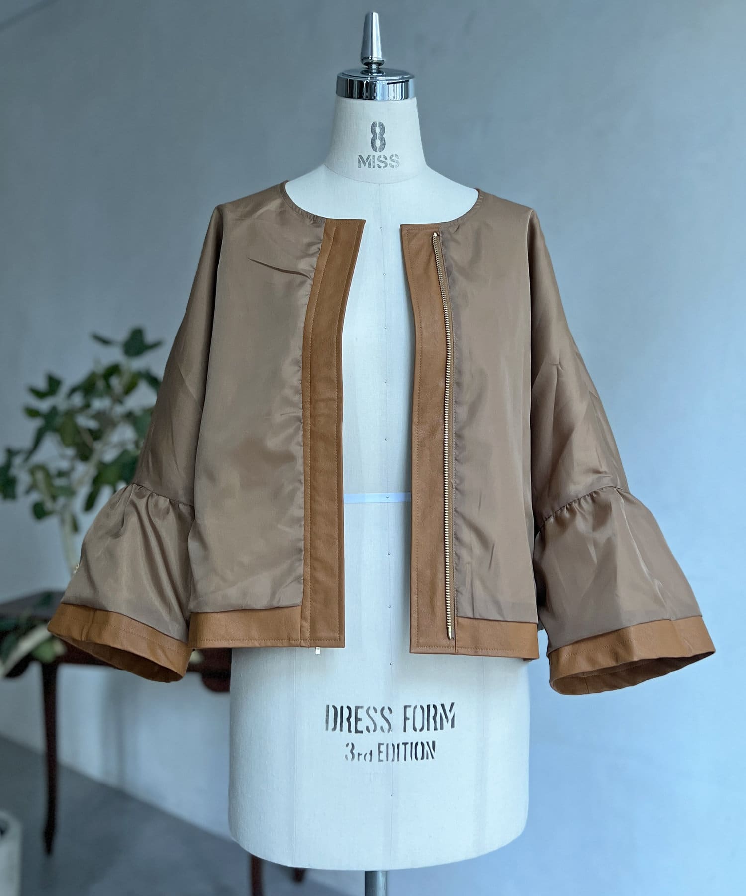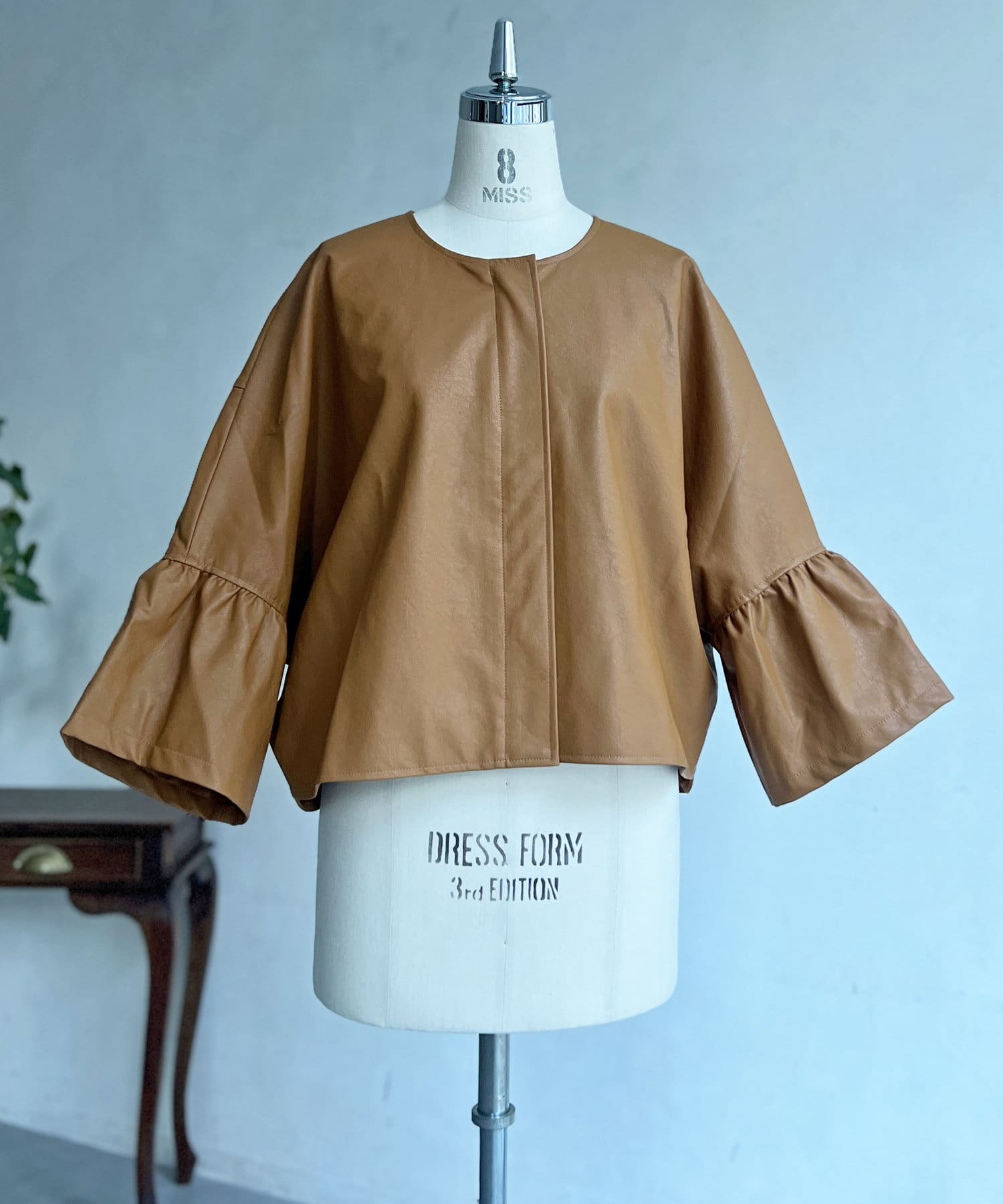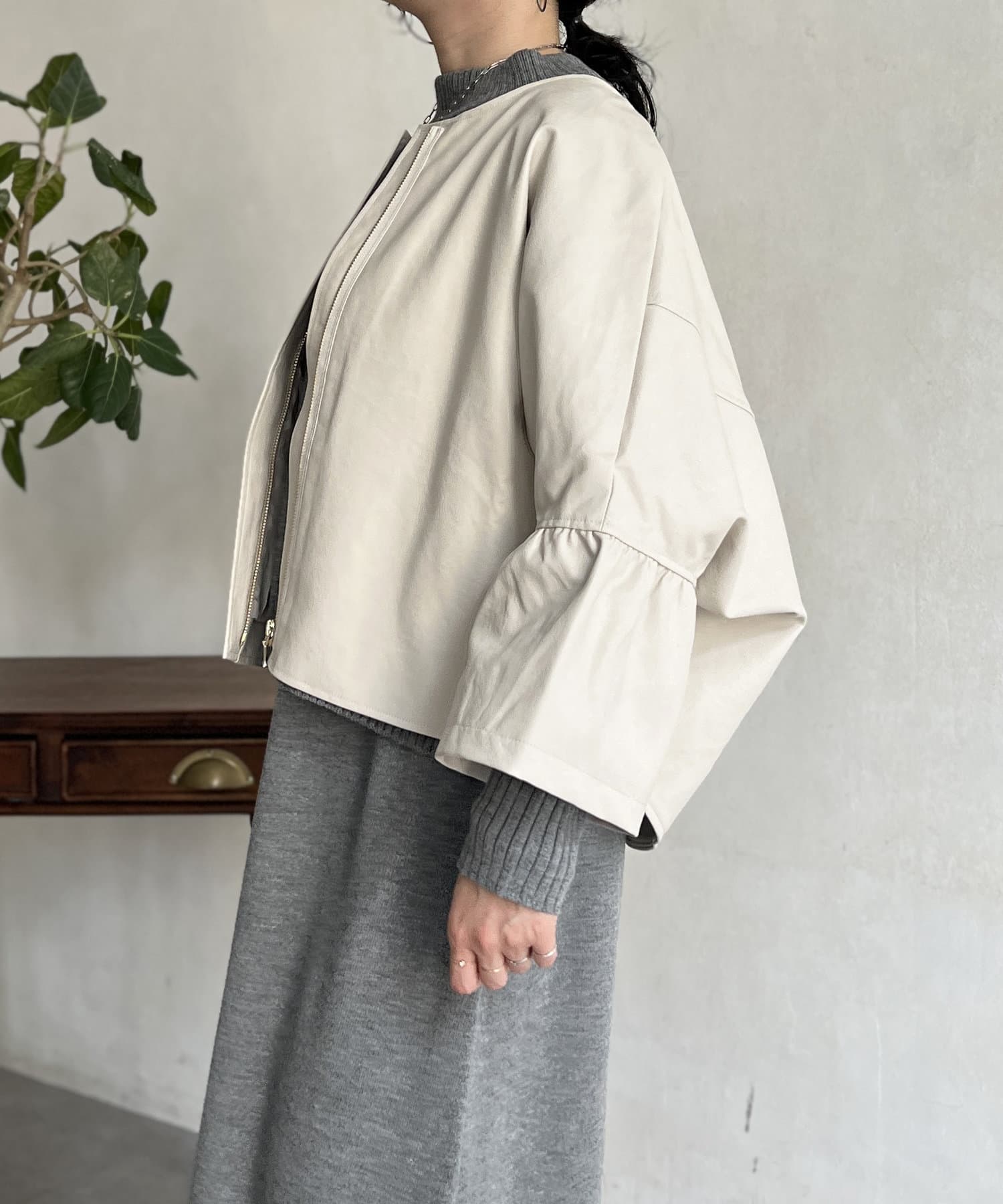 レザーフリルスリーブブルゾン