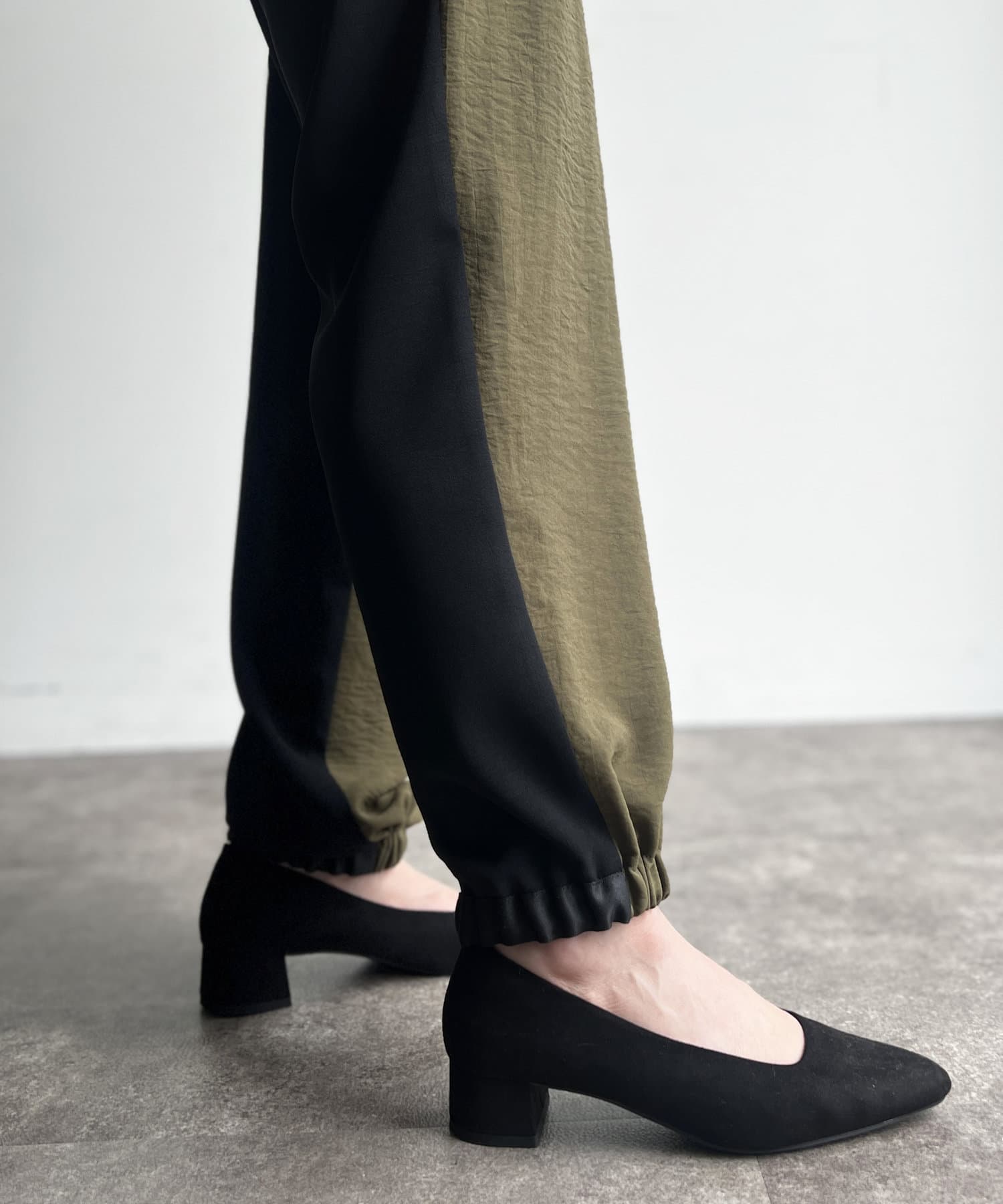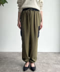 ウエストと裾にはサテンテープを使用し、さり気ないポイントに。