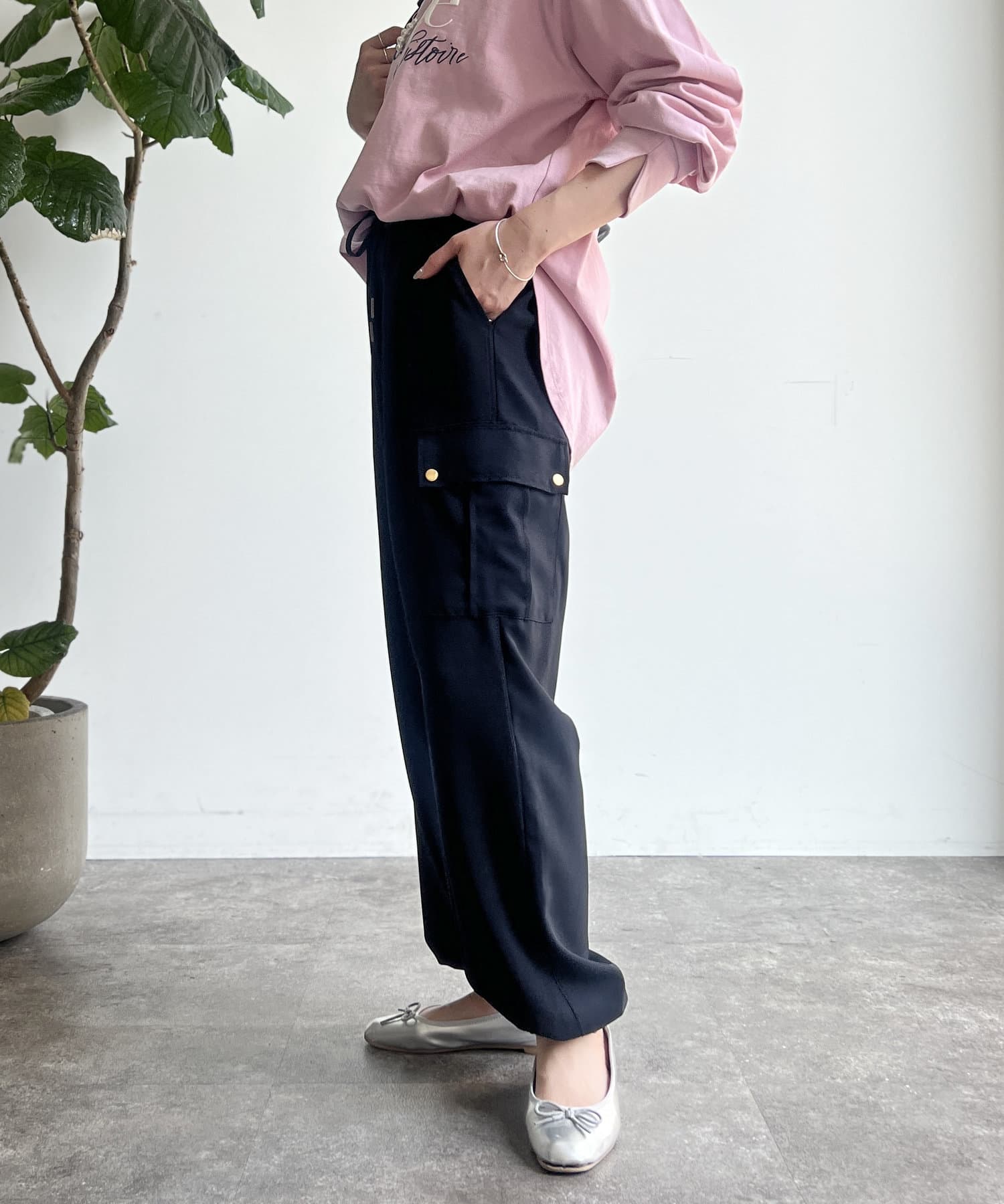 トレンドのカーゴパンツを女性らしくブラッシュアップ!