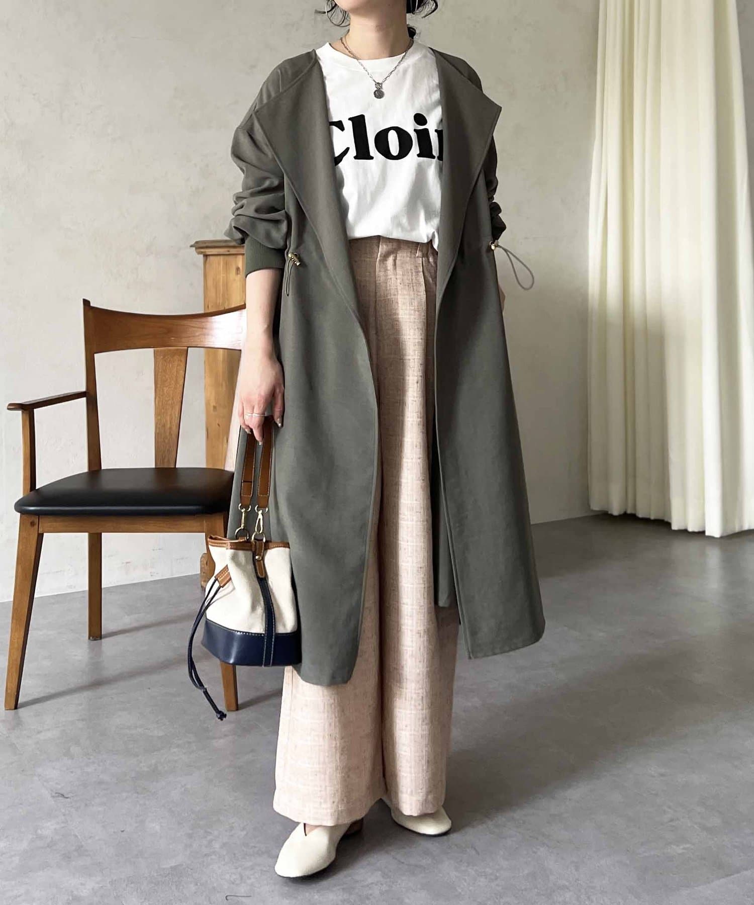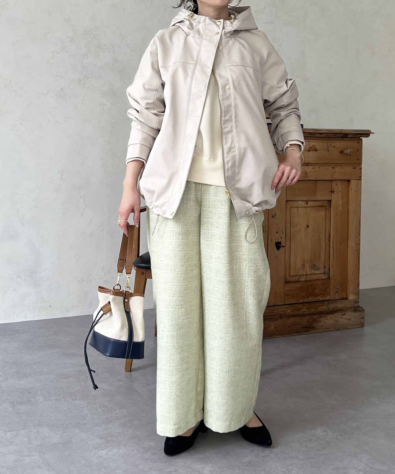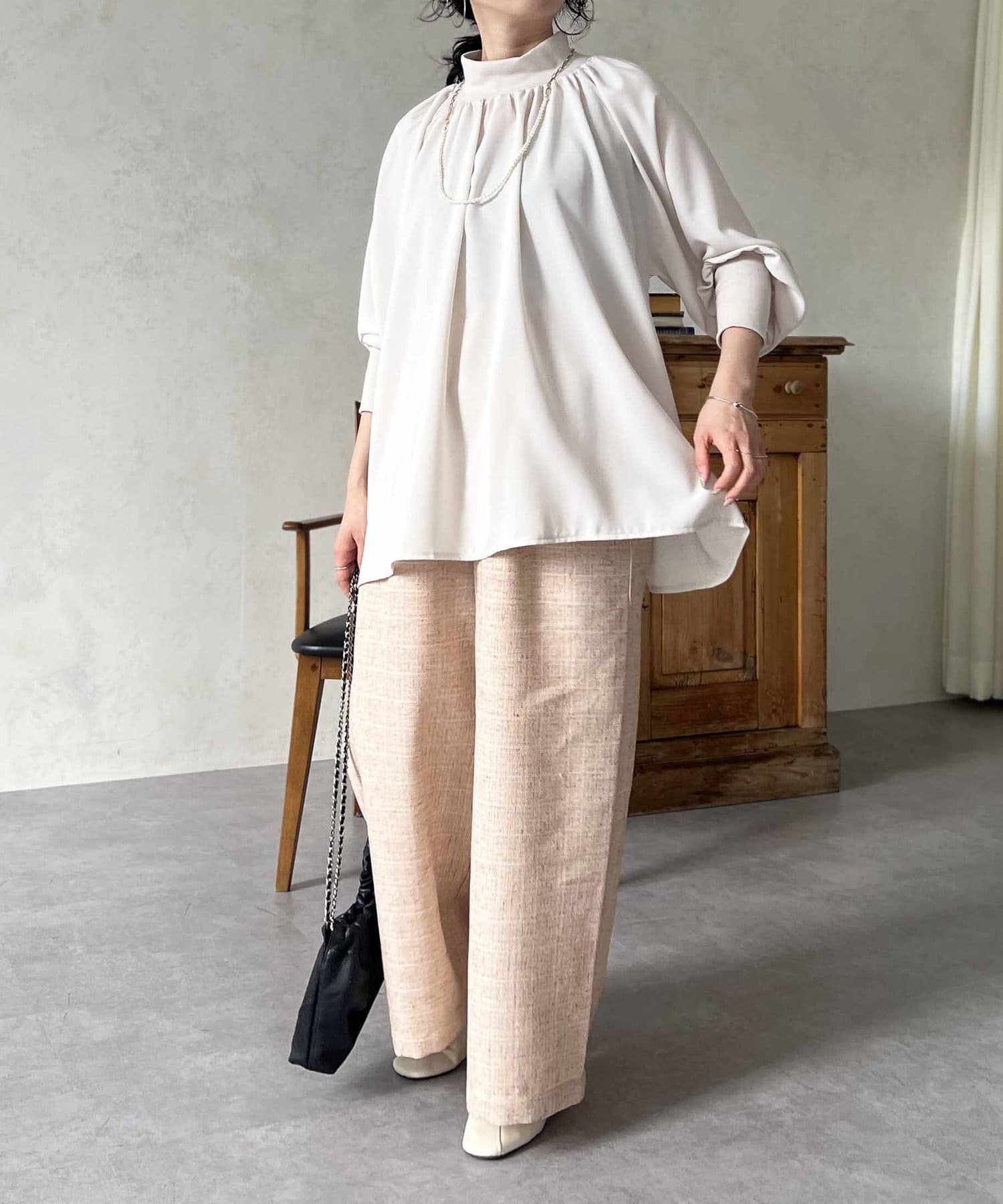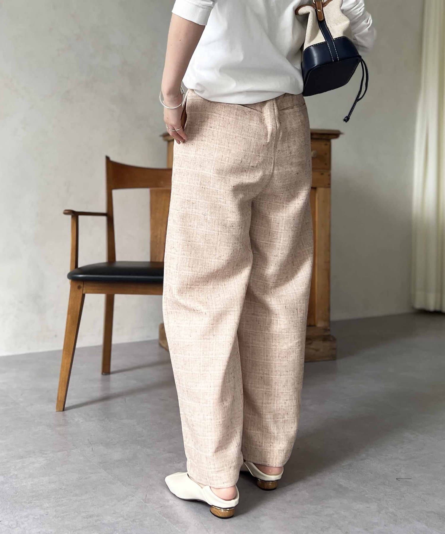 ウエストゴム仕様で楽な履き心地と、程よいワイドシルエットできちんと感もプラス。